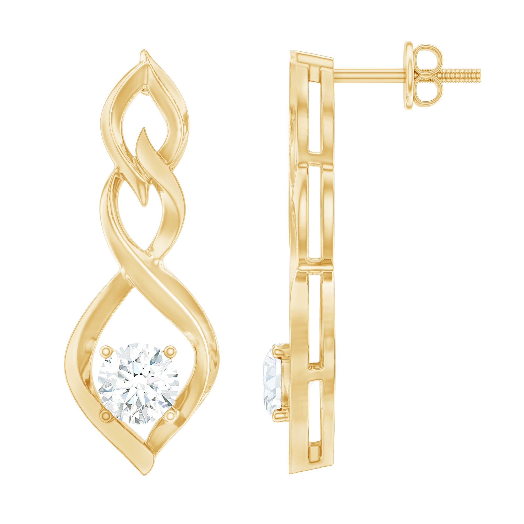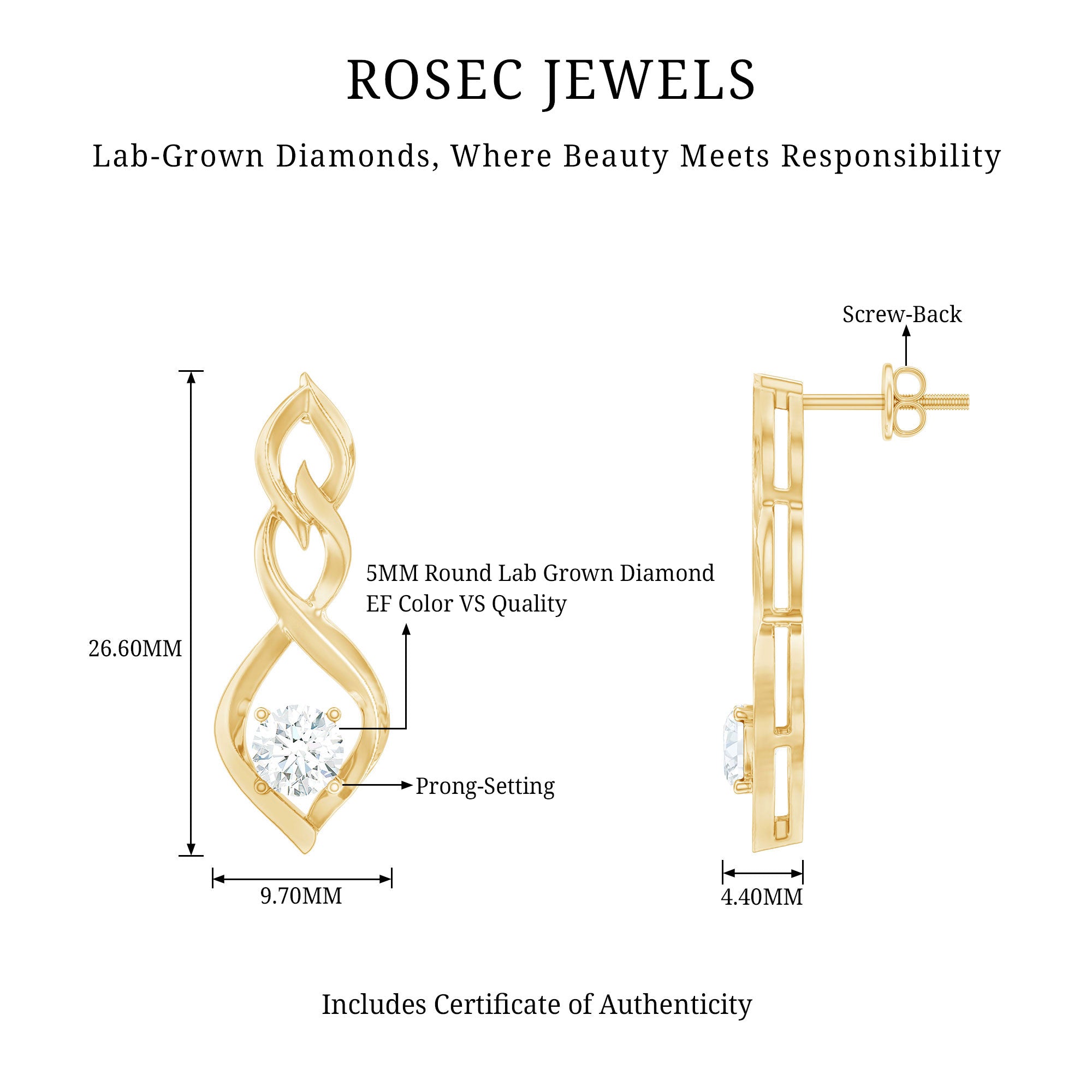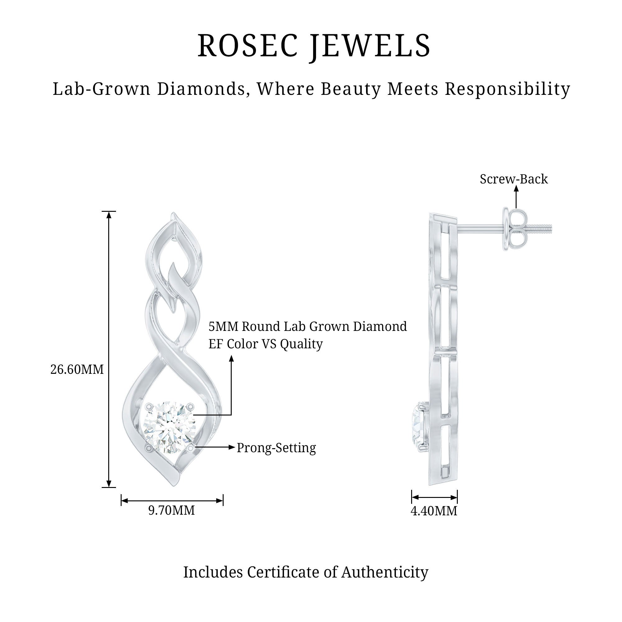 Elevate your expression of infinite love with our Beautiful Lab Grown Diamond Infinity Earrings. At the heart of this exquisite design lies a brilliant 5x5 mm Round Shaped Lab Grown Round Diamond, capturing the essence of your enduring affection. The shimmering metal setting enhances the Ef-Vs Quality Diamond, symbolizing the brilliance of your love. A Single Diamond Earrings for your Solitaire love; these Diamond Earrings are a testament to simplicity and sophistication, ensuring to impress her on any occasion. Crafted by Rosec Jewels, specialists in Certified Gemstone pieces, these Diamond Drop Earrings are not just a fashion statement but a timeless reflection of your commitment and admiration. Gift her the elegance that mirrors your infinite love story.