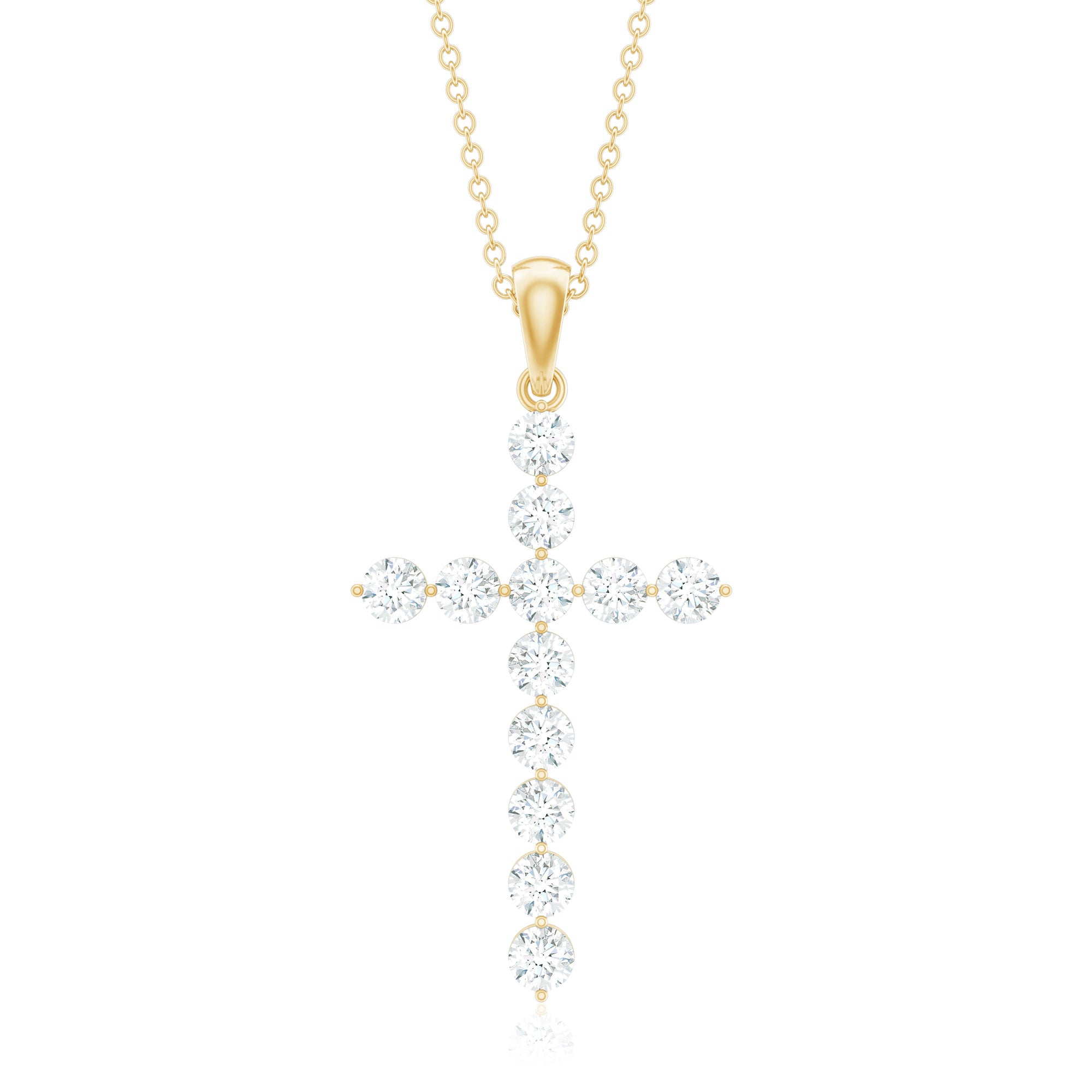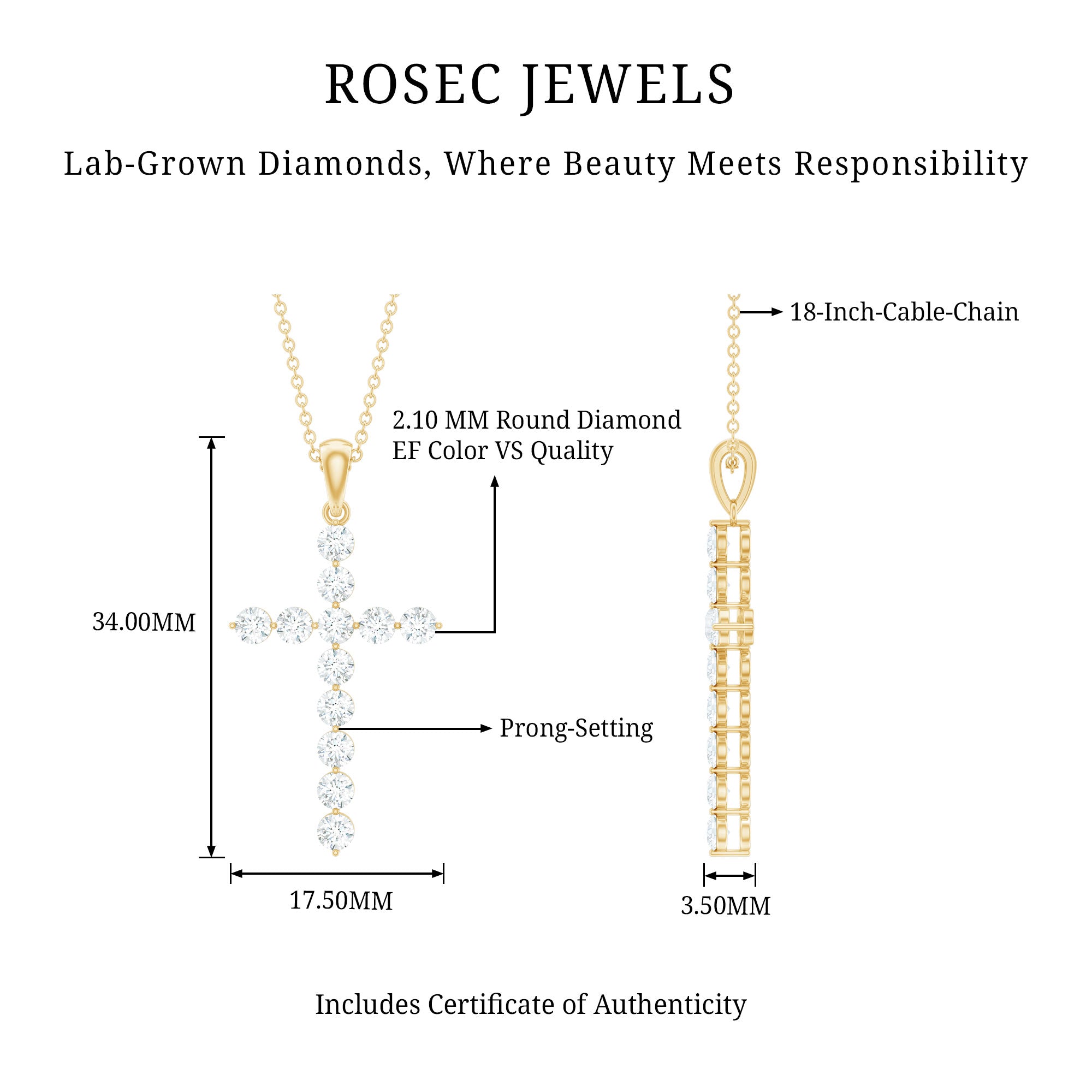 Express your faith with this Cross Diamond Necklace. The EF-VS Quality Round Cut Diamonds in Prong Setting make your belief shine and make you feel grateful after wearing this Cross Pendant. The Diamond Pendant Necklace combines timeless grace and spiritual significance making it a beautiful option to be gifted on the occasion of Christmas to your special one. Rosec Jewels Ensures that your emotions attached to our pendant are secured hence we send this pendant in a premium quality gift box.