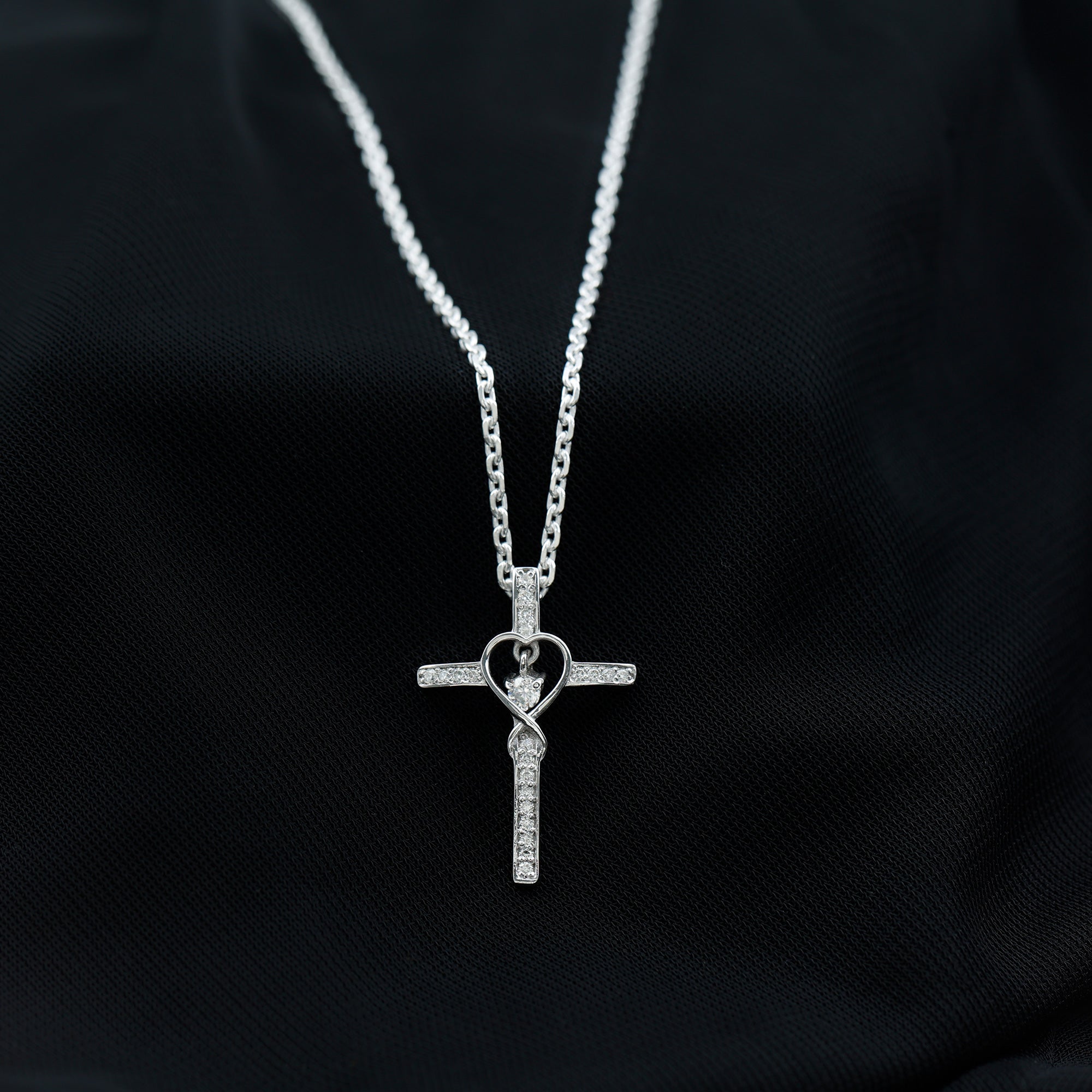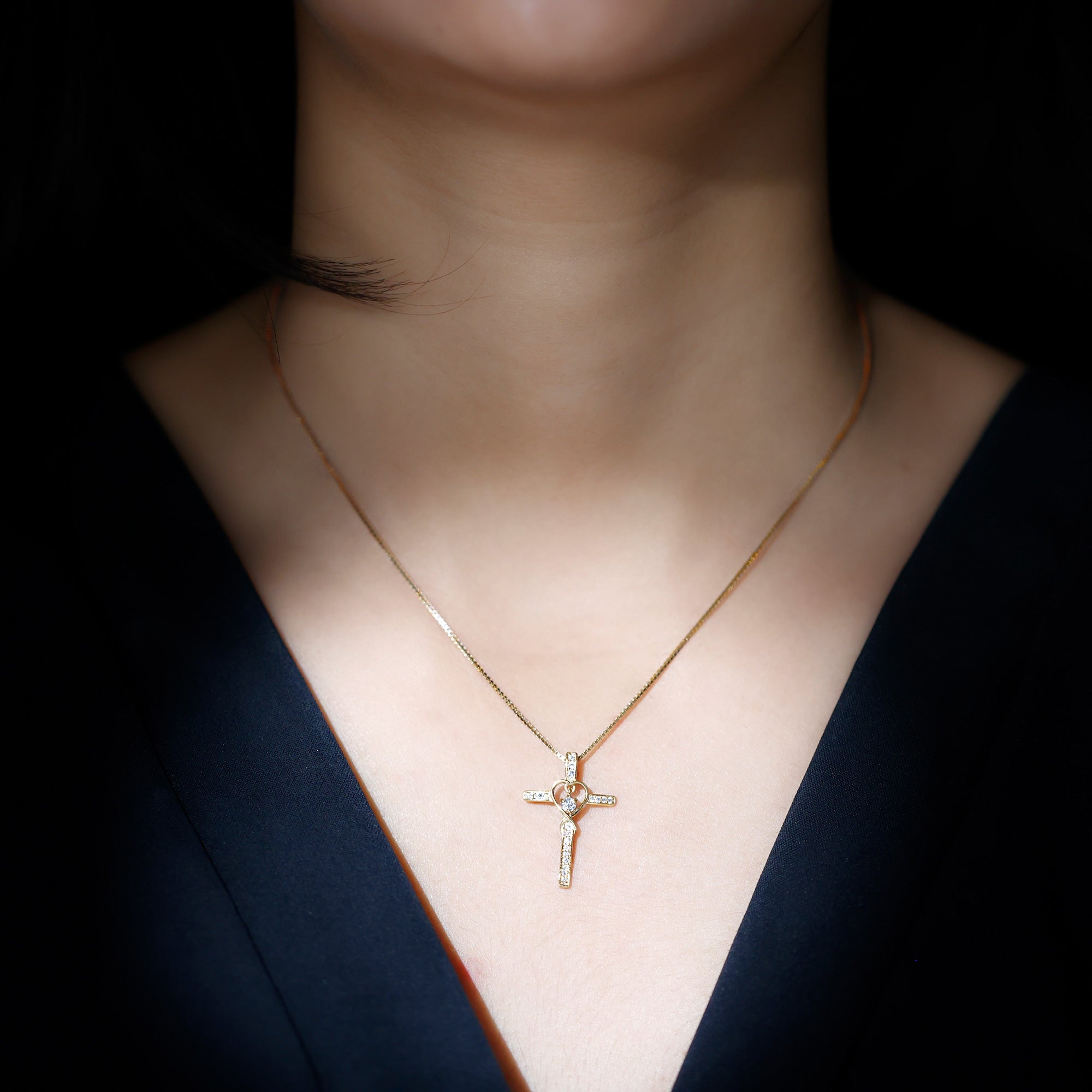 Rosec Jewels Diamond Cross Necklace is a beautifully crafted piece that blends faith, love, and eternity into one elegant design. It features a powerful cross design adorned with horizontal and vertical bars of sparkling round cut diamonds of EF-VS Quality. At the center of the Lab Grown Diamond Pendant Necklace lies an elegant infinity heart shape, artistically intertwined to represent eternal love and devotion. A single dangling diamond is suspended at the center of the heart, creating a mesmerizing movement that catches the light with every turn. Give your blessings and show your never-ending love to your special one in the form of this Cross Infinity Necklace, it expresses every emotion when words are not enough.