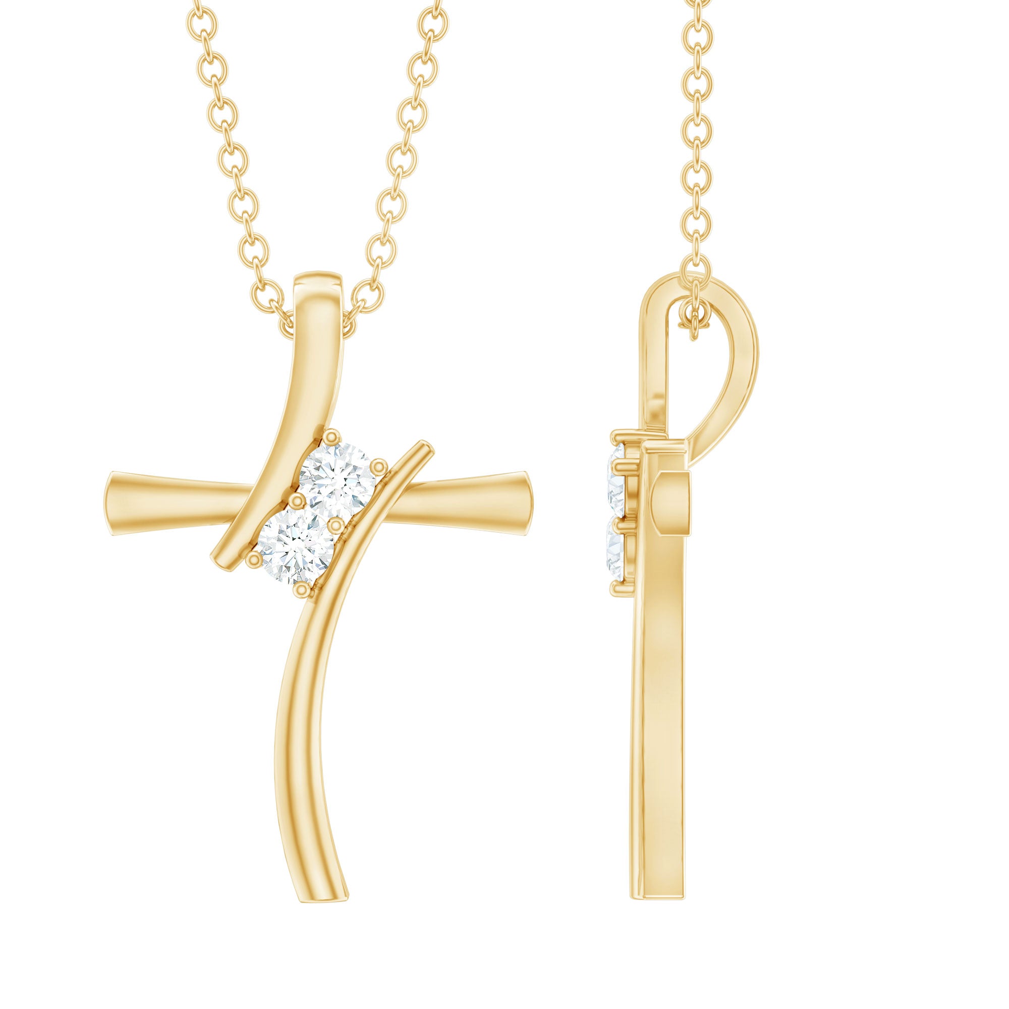 Searching for a unique pendant for her, Rosec Jewels got you with this Diamond Cross Pendant. This minimal pendant is handcrafted with two Round Shape EF-VS Quality Lab Grown Diamonds. The best feature of this Cross Necklace is the Hidden Bail which gives it a seamless look. This 2 Stone Pendant perfectly represents your faith and spiritual belief. This faith necklace will be delivered in the Premium Quality Jewelry Box along with the certificate of Certified gemstones.