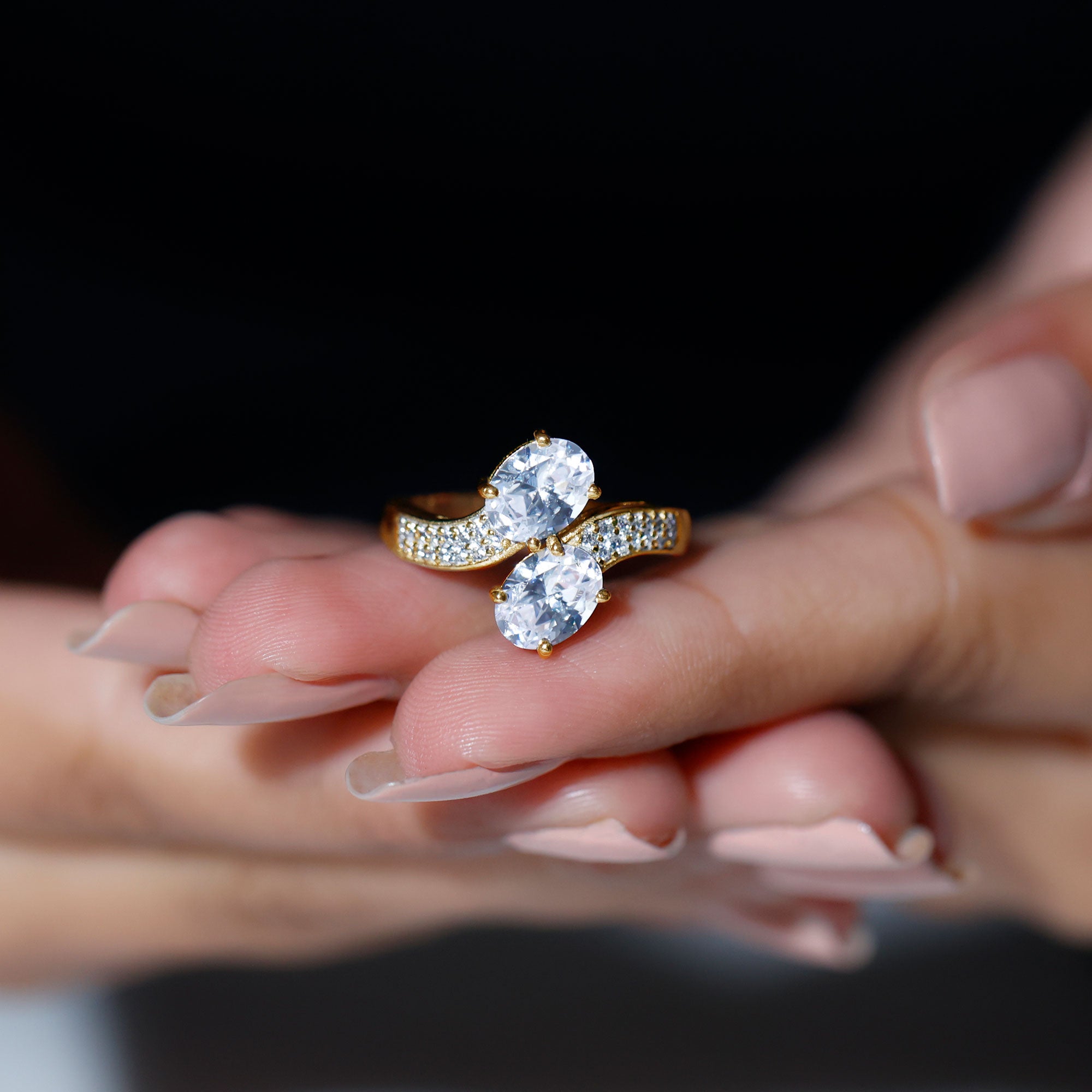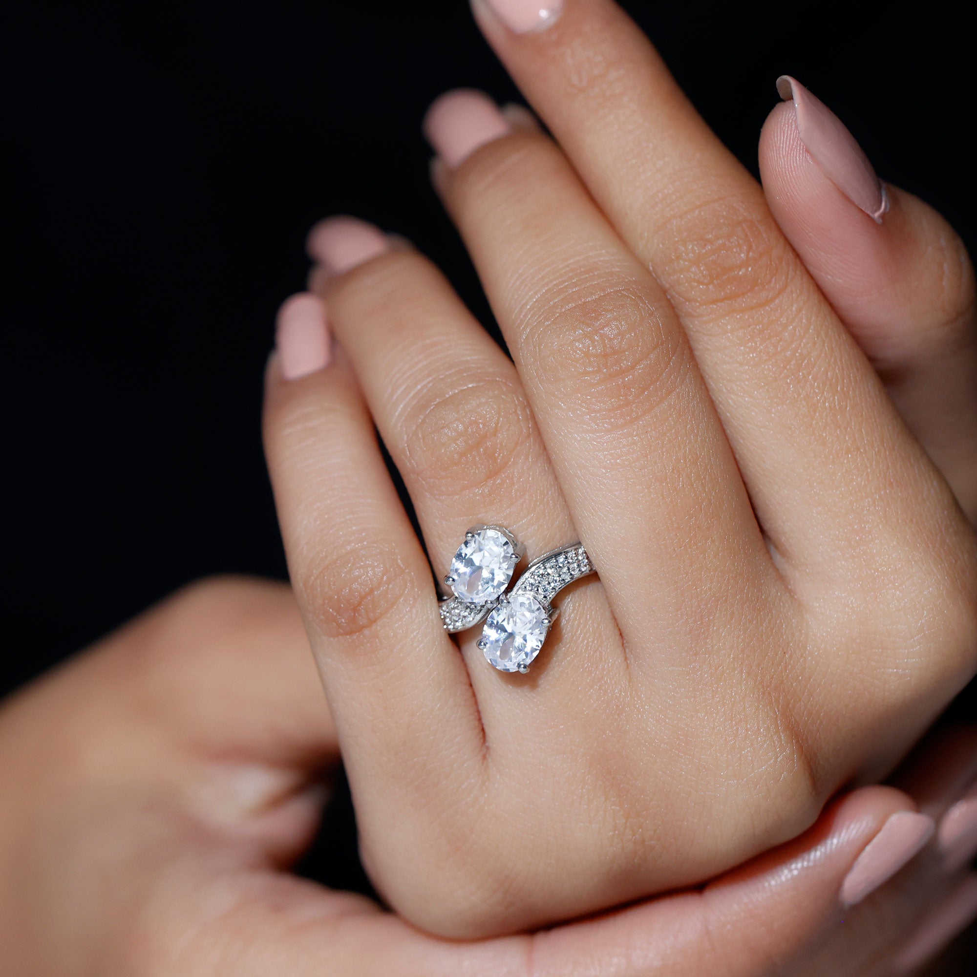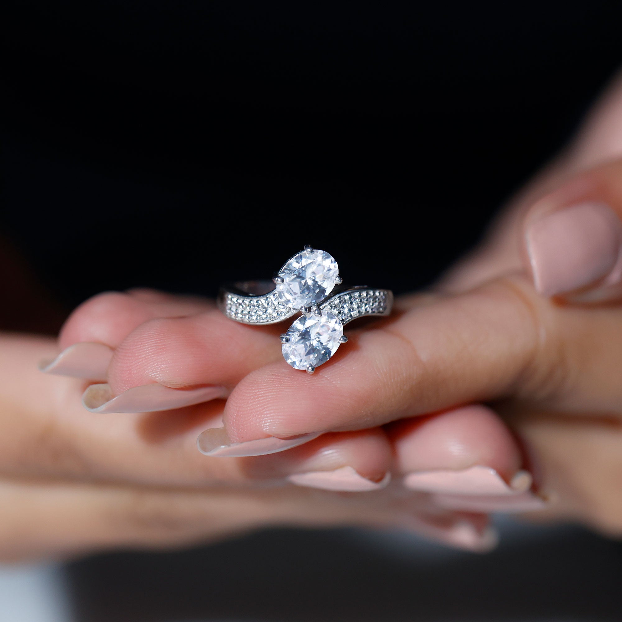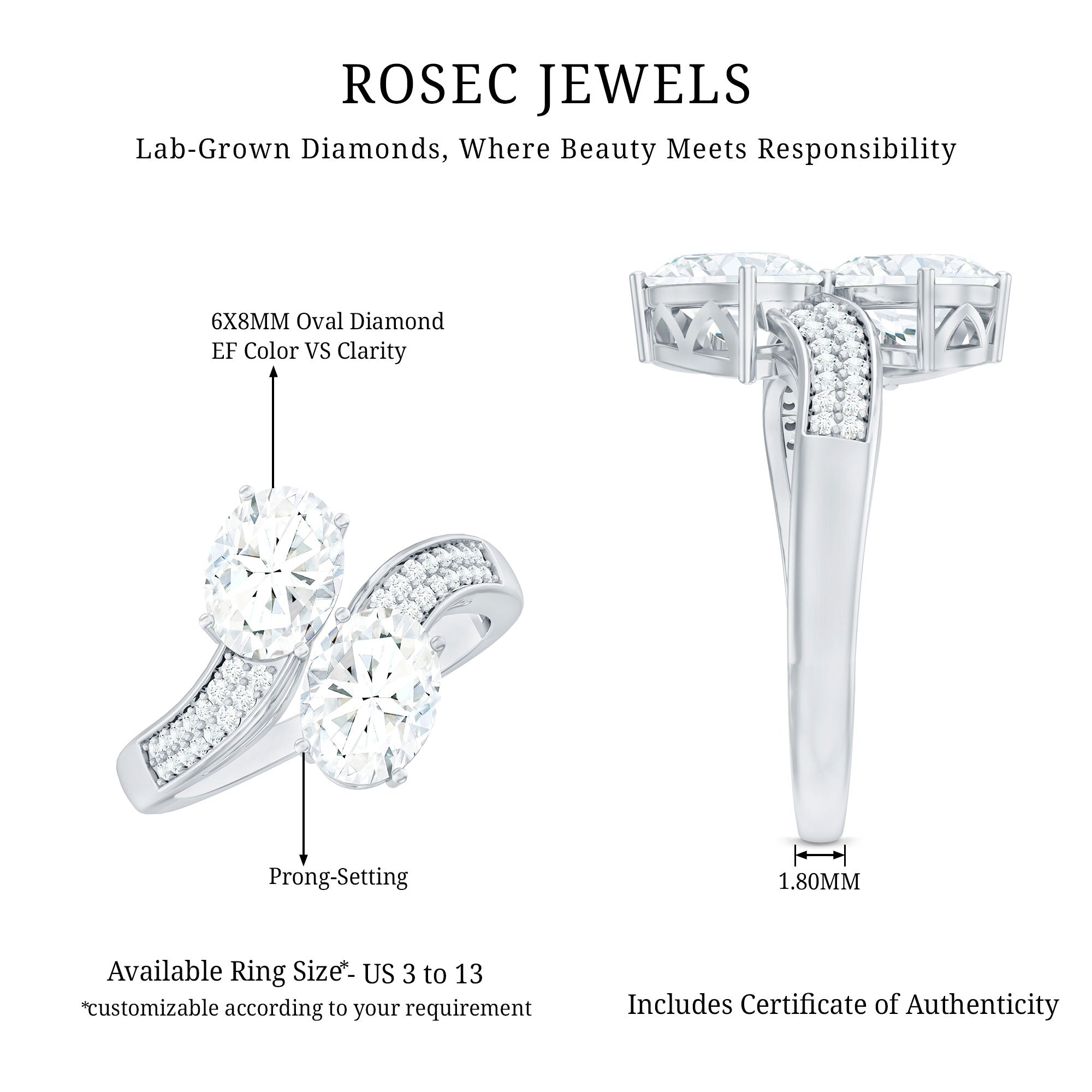 Celebrate every moment of your love story with this Diamond Toi Et Moi Ring. It features 2 oval shaped 6X8 MM EF-VS quality Diamonds set in a secure prong setting, representing two different personalities coming together. The bypass shank of this Designer Ring is decorated with smaller round shaped diamonds. Each gemstone is ethically sourced and lab-grown, offering an eco-friendly and sustainable choice without compromising on quality. This beautiful Diamond Engagement Ring will be shipped to you in a premium-quality jewelry box with Gemstone Authenticity Certificate to give a trustworthy experience when you shop with us.