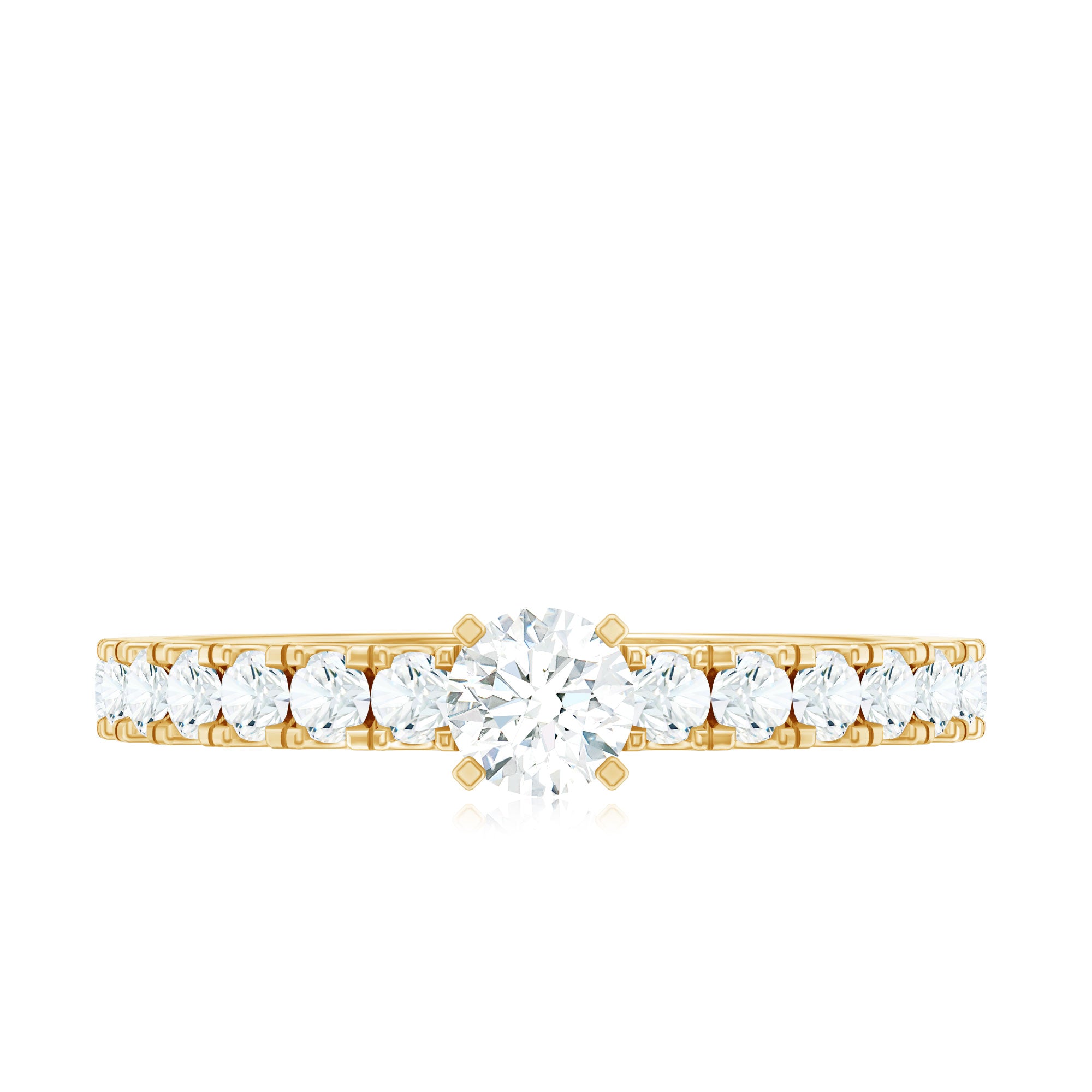 If perfection had a form, it would look exactly like this Rosec Jewels Round Diamond Ring. This stunning Side Stone Engagement Ring features a 4 mm round-cut EF-VS quality diamond (lab grown) at its heart, securely held in a peg head setting, ensuring its beauty takes center stage. On either side of the center stone, round cut diamond side stones add a touch of sophistication and sparkle. Perfect for celebrating milestones or expressing timeless love, this Solitaire Diamond Engagement Ring is an extraordinary symbol of beauty, making it an unforgettable piece of jewelry that she will cherish forever.