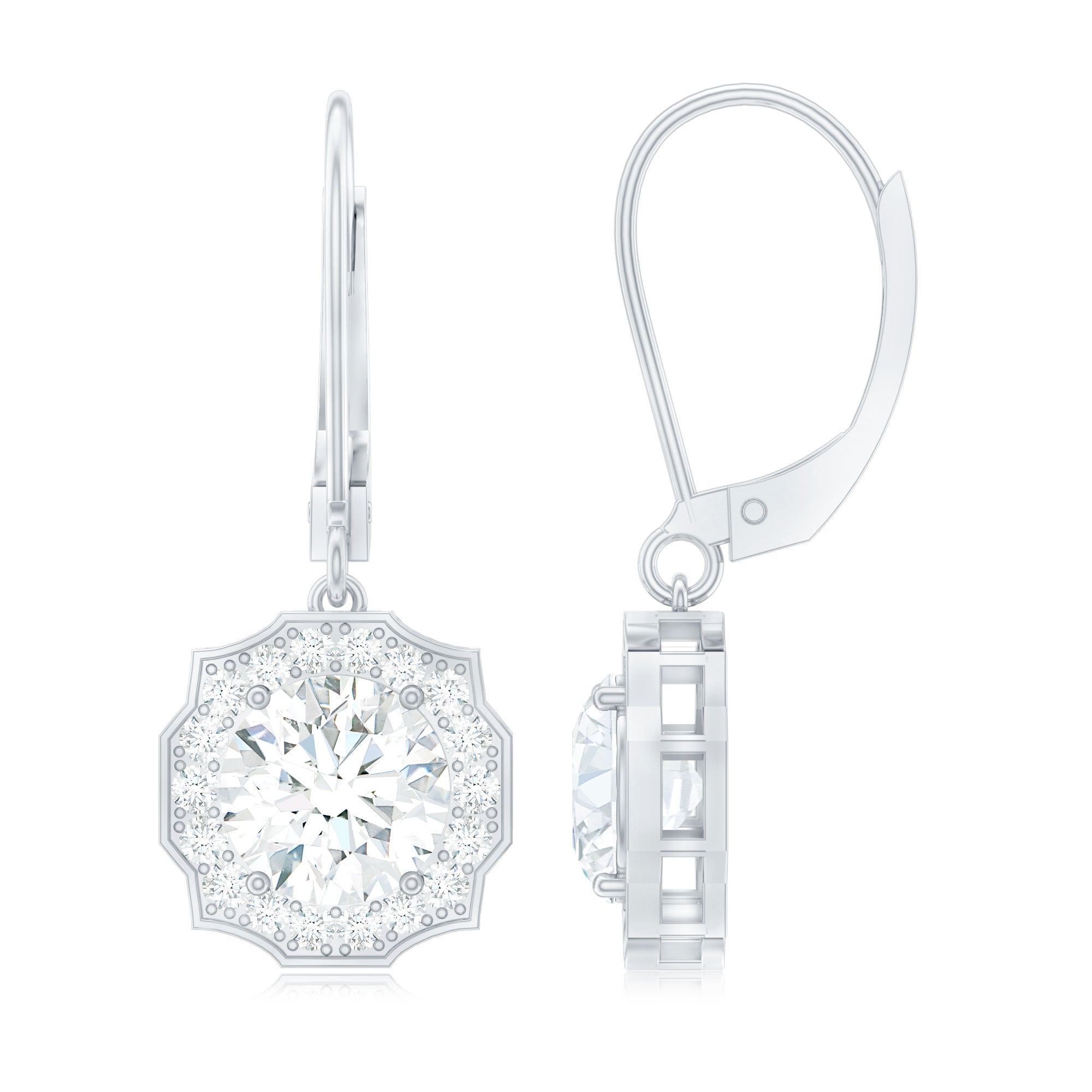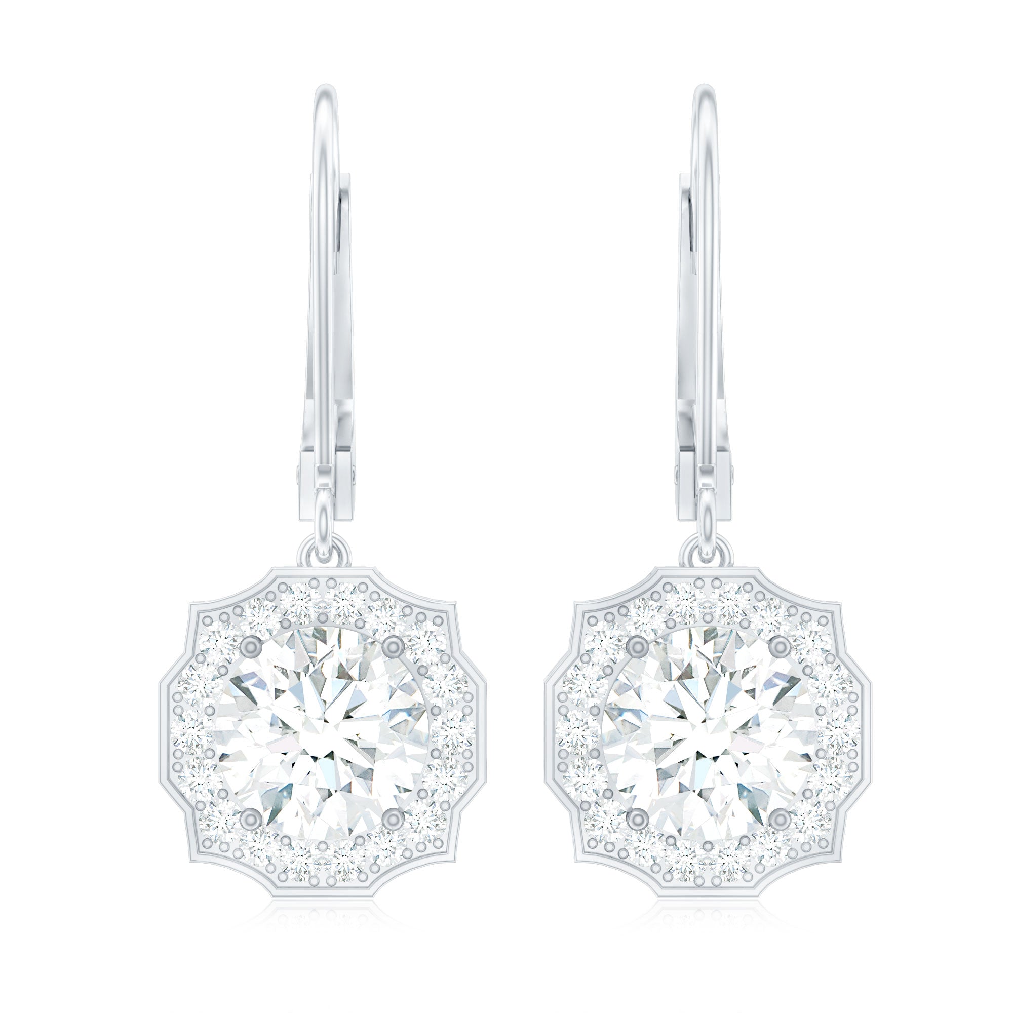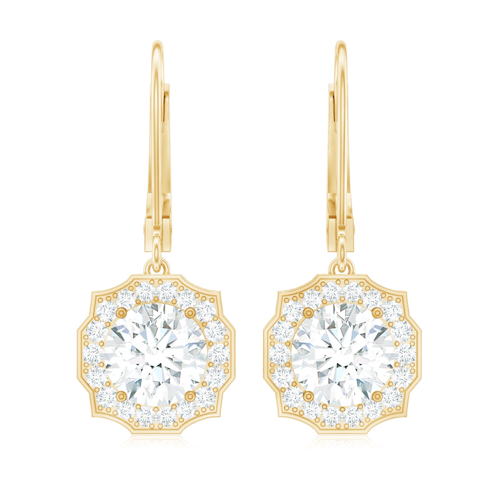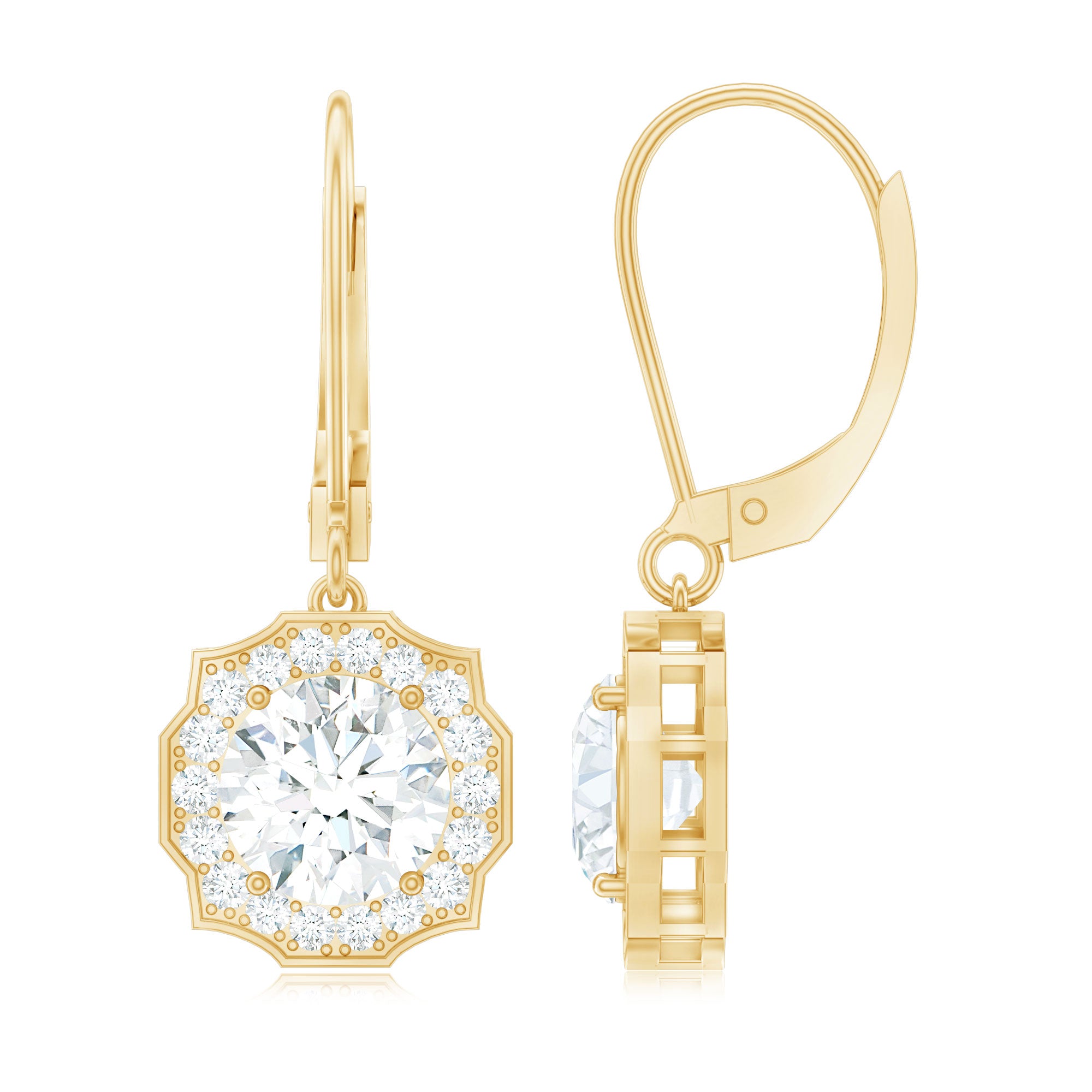 Make her eyes sparkle as brightly as these Diamond Halo Earrings. We designed these Dangle Drop Earrings to capture timeless elegance and charm, featuring an 8 MM round cut diamond (lab grown) in the center, set in prong setting. The center stone is surrounded by an art deco-inspired diamond halo and crafted with fine attention to detail, giving these Drop Diamond Earrings a graceful and feminine touch. These Art Deco Earrings are curated with lever back closure, ensuring both comfort and security, ideal for all-day wear. To guarantee premium craftsmanship, these affordable April Birthstone Earrings come with a certificate of authenticity.