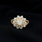 Feminine, bold, and dramatic, this Lab Created Diamond Engagement Ring will enhance your wedding outfit. As a lively representation of love for nature, this Flower Ring is considered a timeless piece, adding a whimsical touch and undeniable charm that plays a crucial role in flower power aesthetics. Made from high-quality metal, this Flower Engagement Ring features a nature-inspired theme that showcases a floral fashion statement. It is carefully crafted with a 6 MM round lab-grown diamond in claw setting, accompanied by additional round stones that mimic the design of flower petals, capturing the essence of natures beauty and conveying a message of timeless elegance. The split shank is also embellished with petite gemstones. The intricate details combined with an effortless style making the Statement Ring a perfect choice, capturing the enchanting sentiments associated with each bloom while celebrating natural vibrancy. The EF Color VS Clarity lab-grown diamond provides a unique variety of styles to enhance your look.