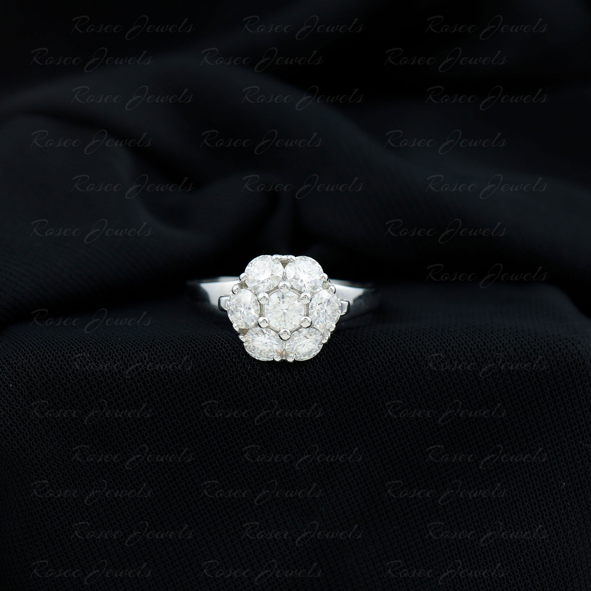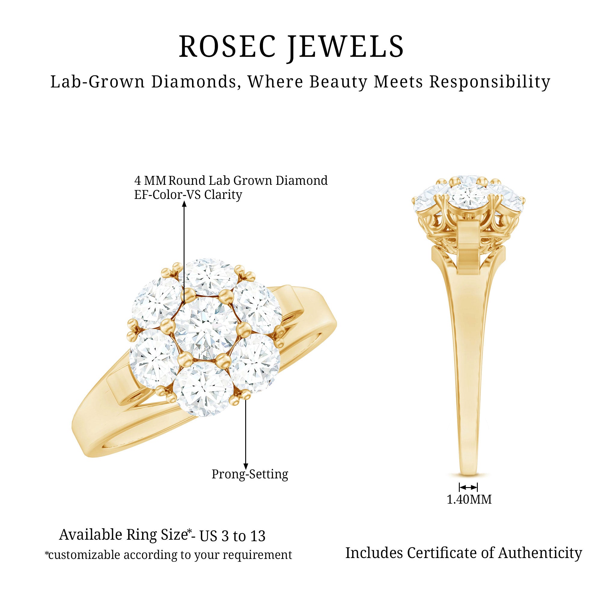 Make a stunning style statement with this unique Lab Grown Diamond Ring, that carries its own symbolism. Having a vintage appeal this Flower Diamond Ring has unique and timeless design beautifully mimicking the petals of a flower. This elegant design is sure to be her favorite and a timeless piece of jewelry which is adorned with Round Shaped Lab Grown Diamond in Prong Setting making a beautiful flower design on the band. This Floral Engagement Ring is sure to be a head-turner with its truly unique look. The sparkle and brilliance of EF-VS Lab Grown Diamond is beautifully designed for the one who loves the intricacies of design. This Flower Ring is a unique twist on the classic engagement ring representing floral inspirations.