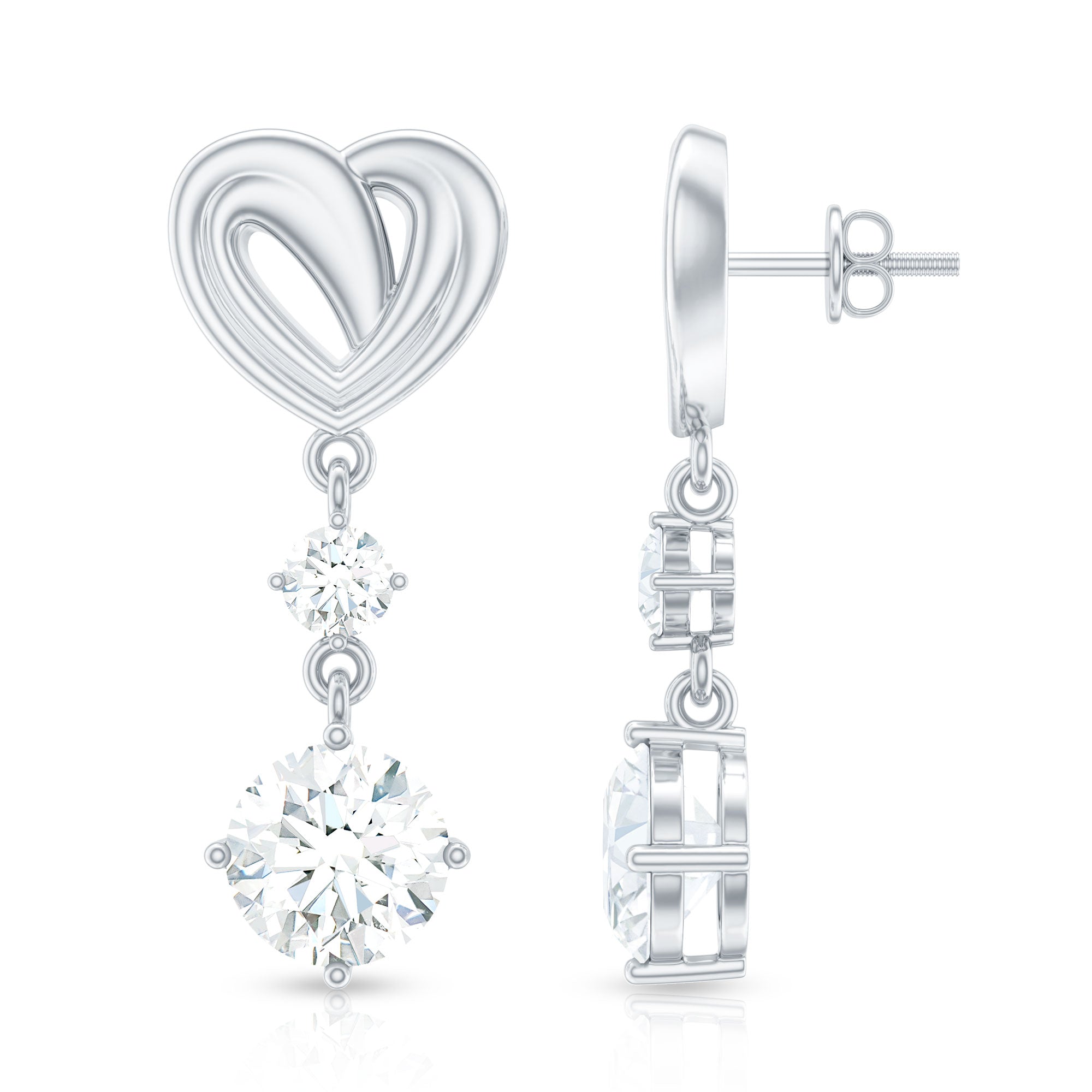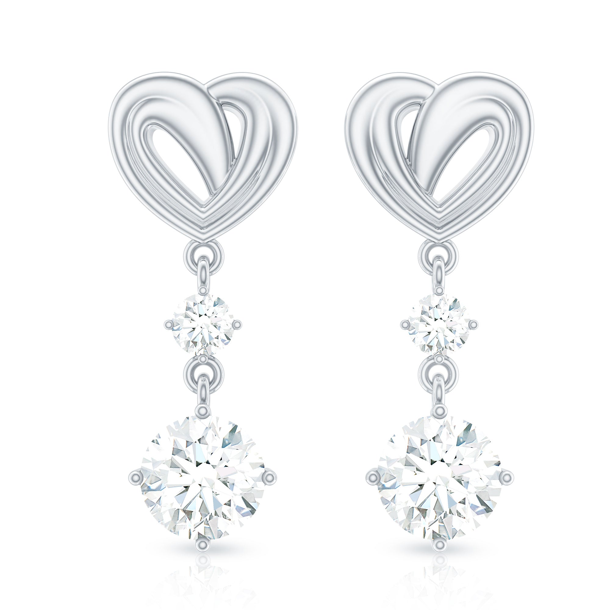 Let your love shine as bright as these dazzling Diamond Drop Earrings. These Heart Earrings feature a romantic and artistic three-layer design, beginning with an elegant metal heart shaped element that adds a touch of sophistication. Suspended below the heart is a stunning 4 MM round stone delicately linked with an 8 MM round cut lab grown diamond of EF-VS quality set in prong setting. Thoughtfully crafted for both comfort and security, these Diamond Hanging Earrings come with screw back closure, ensuring a perfect fit for all day wear. Whether you are celebrating a milestone, adding a special touch to your bridal look, or searching for the ultimate gift, these Dangle Drop Earrings are a timeless symbol of love and elegance.