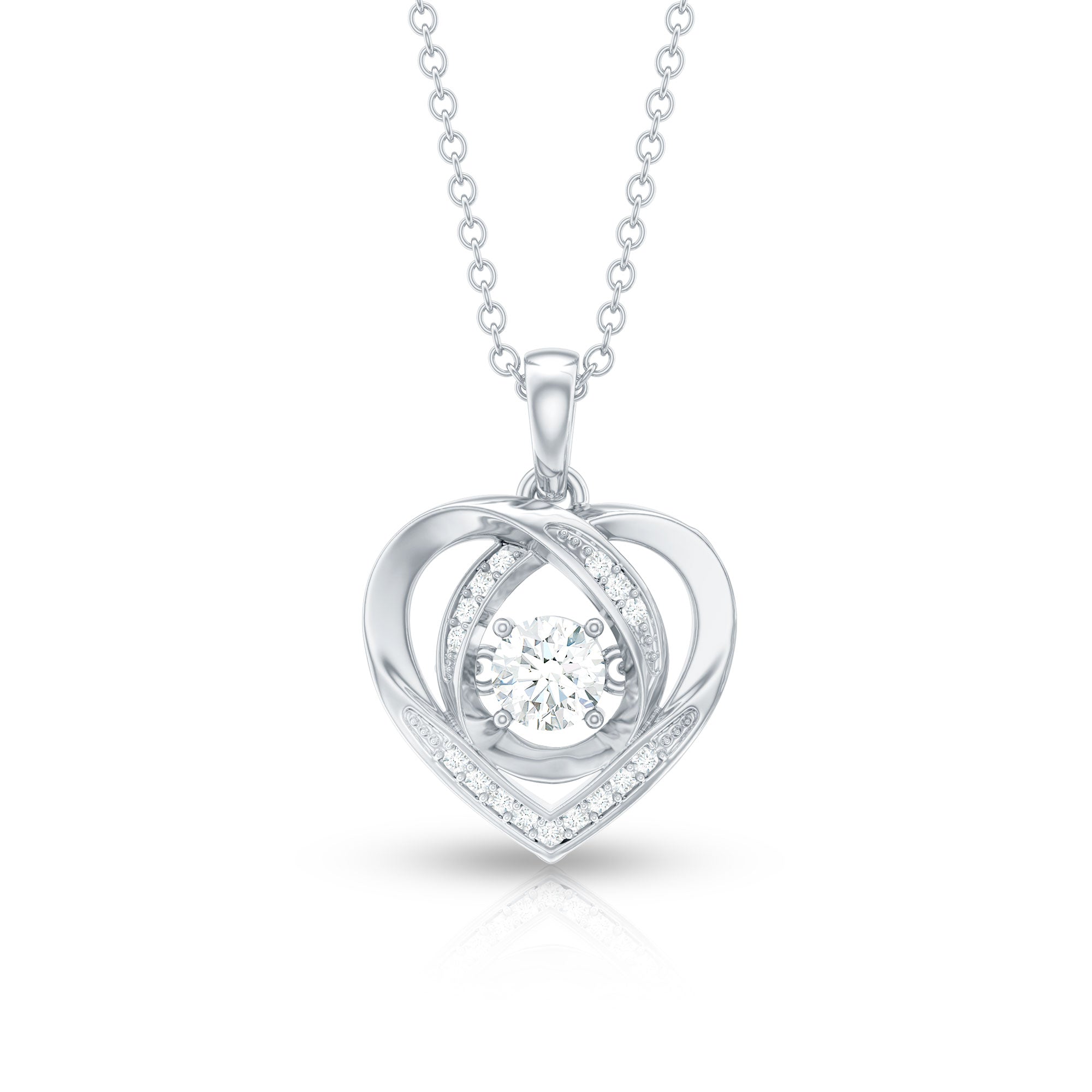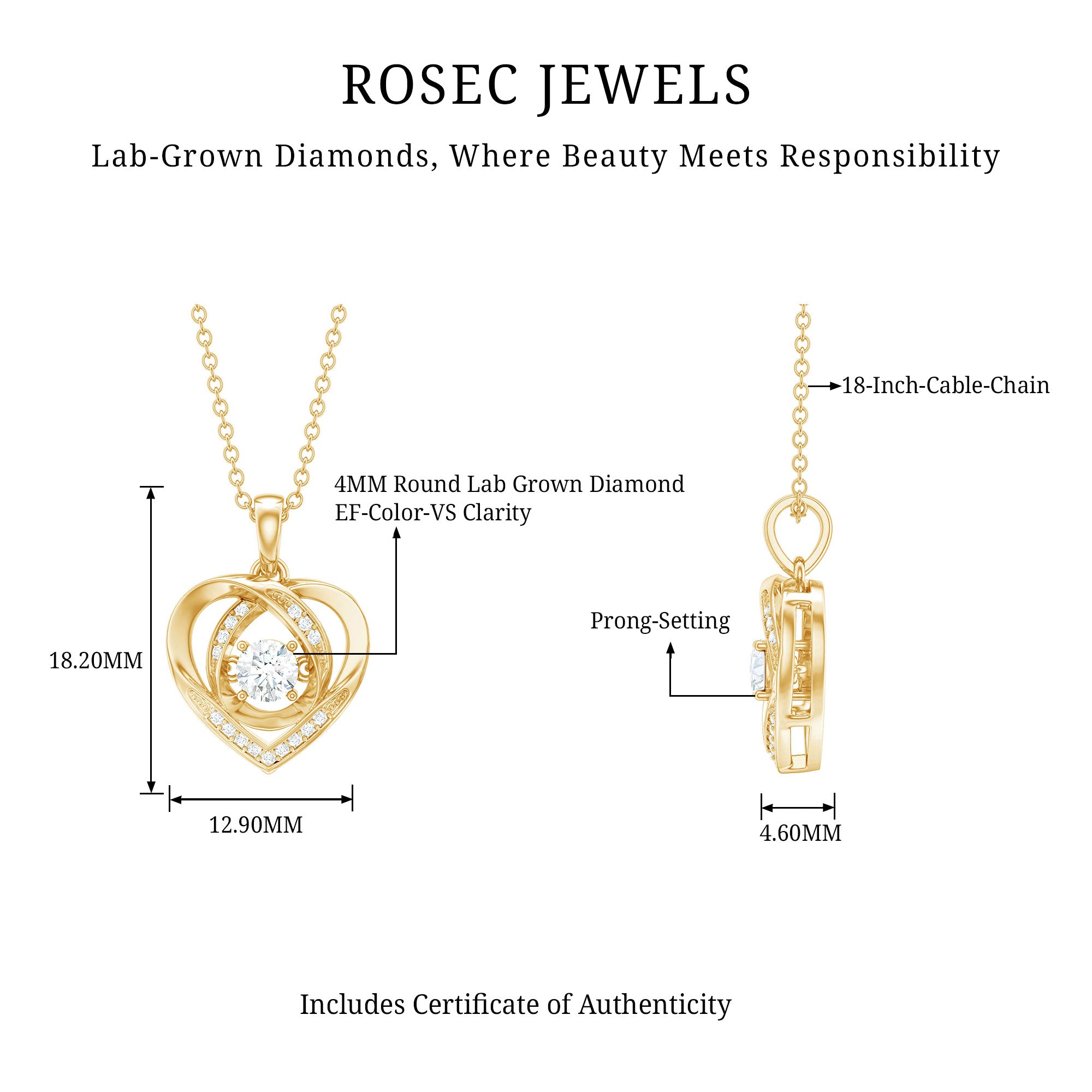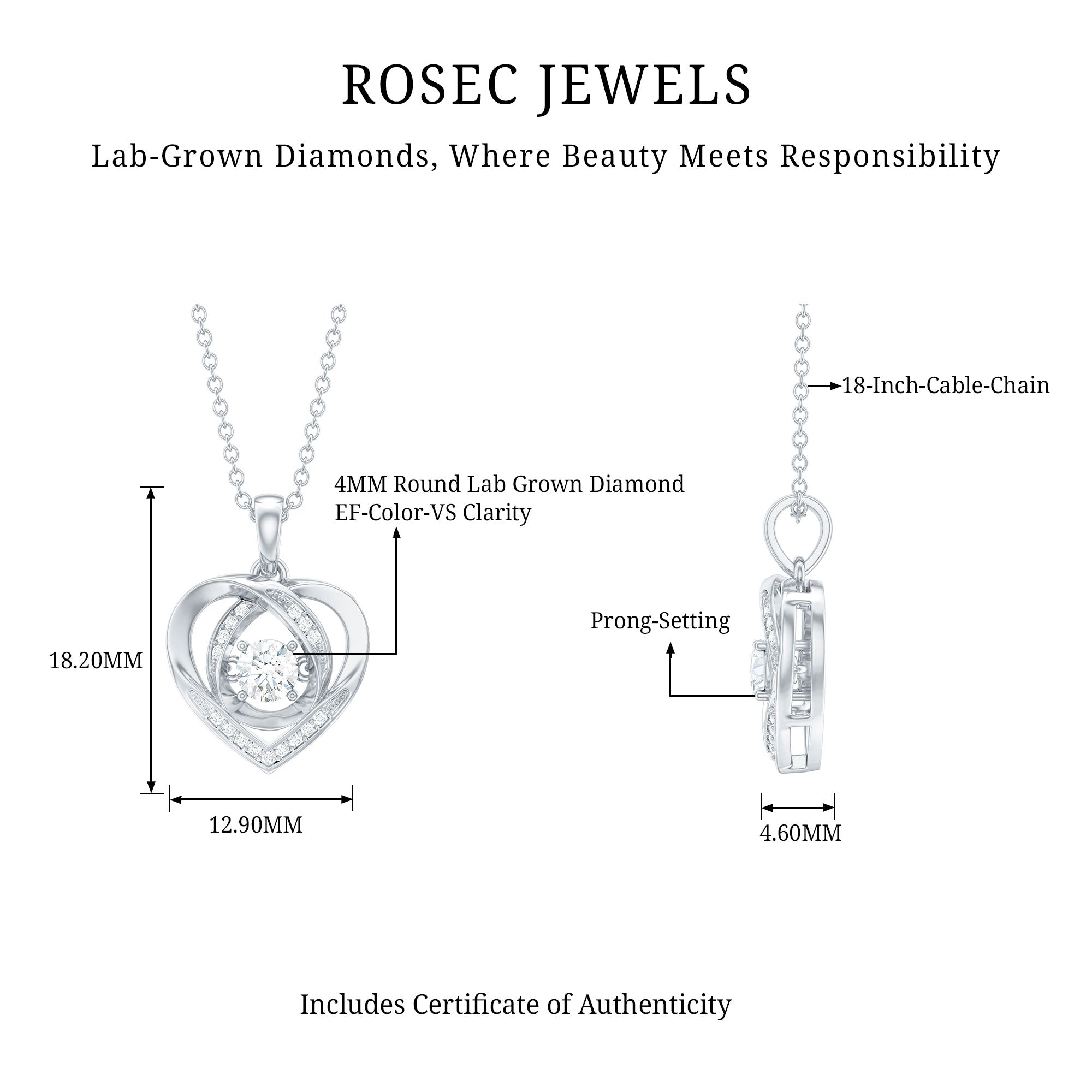 This mesmerizing Lab Grown Diamond Pendant Necklace radiates timeless elegance. Crafted with perfection, the Heart Pendant features a 4 MM Round Shape Diamond (Lab Grown) set in Prong Setting at the center, the heart shape is further decorated with dainty EF-VS quality diamonds, capturing the essence of love and sophistication. This exquisite piece seamlessly combines modern luxury with conscious craftsmanship, making this April Birthstone Necklace a symbol of both style and uniqueness.