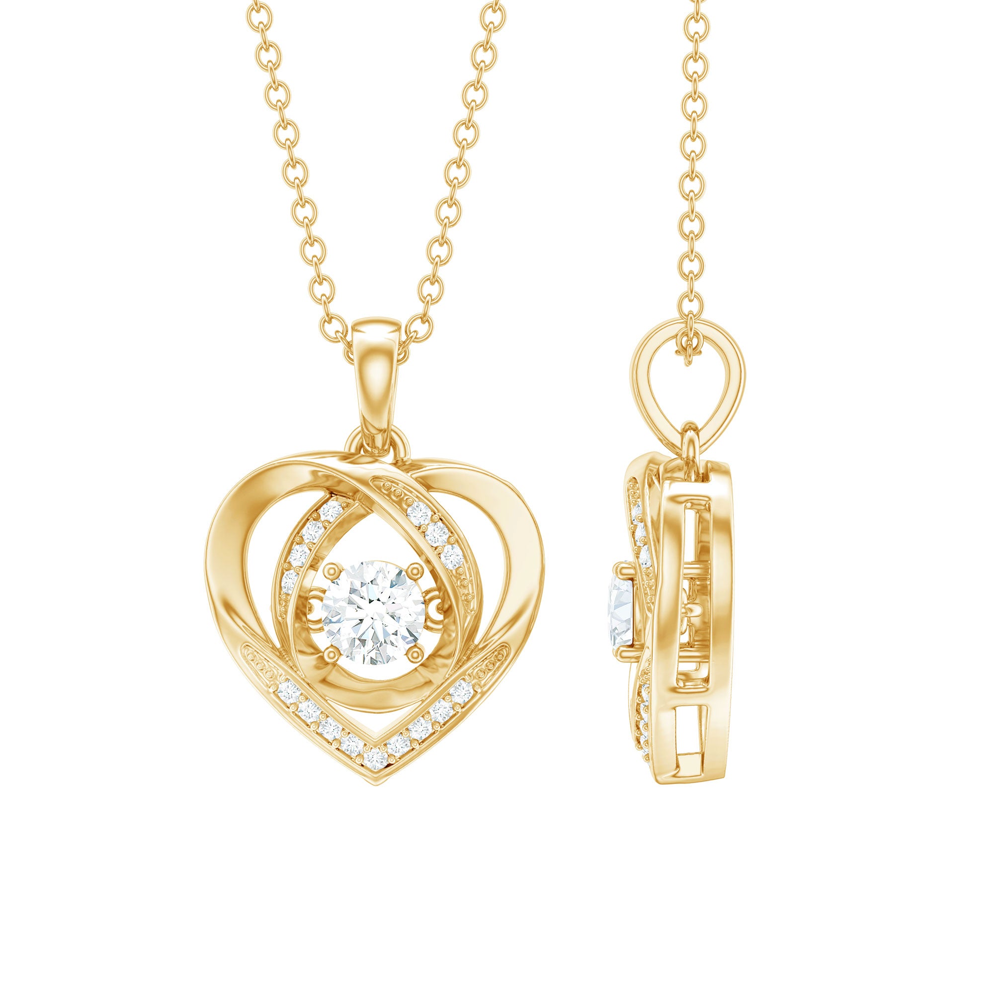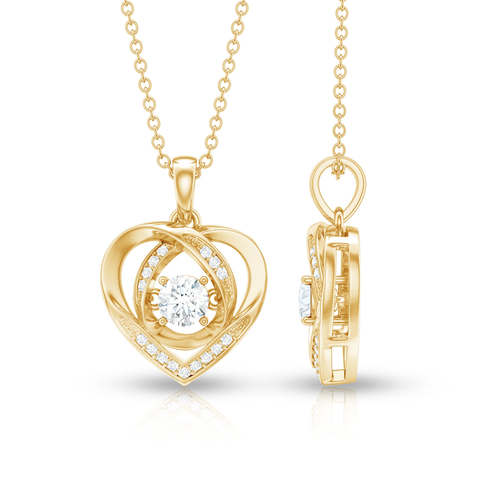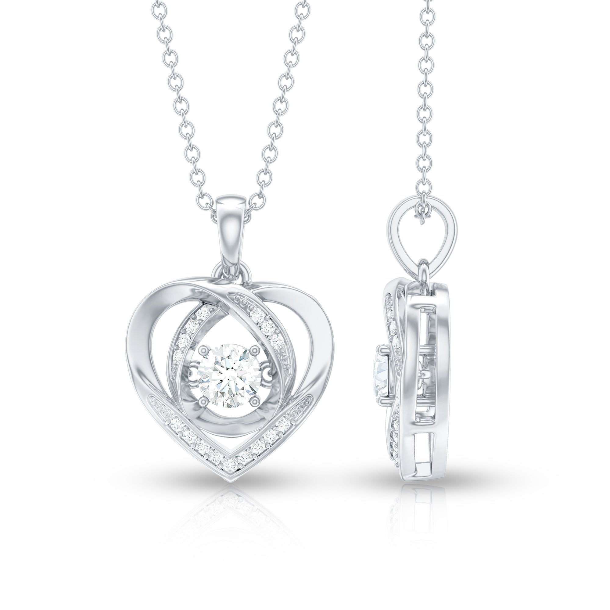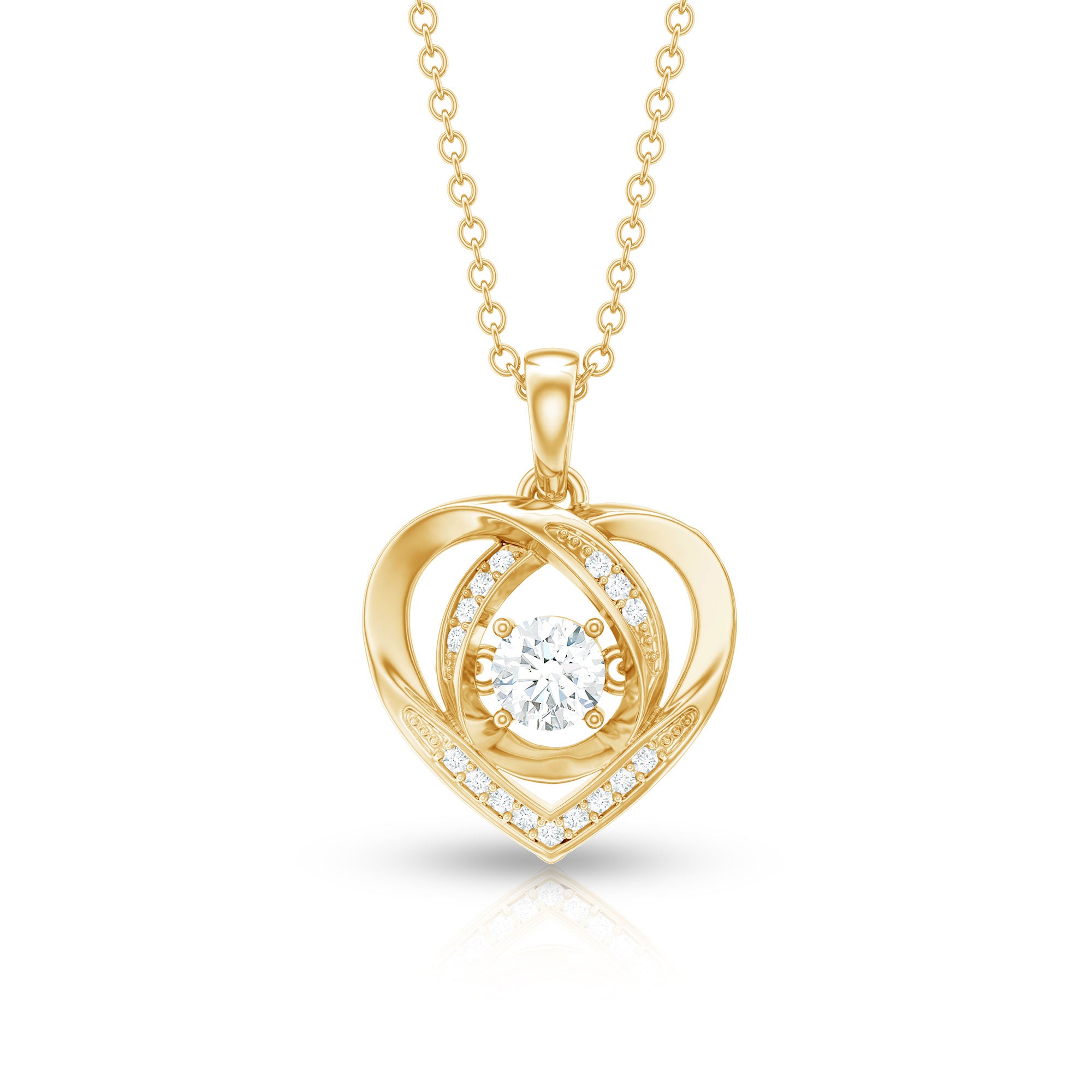 This mesmerizing Lab Grown Diamond Pendant Necklace radiates timeless elegance. Crafted with perfection, the Heart Pendant features a 4 MM Round Shape Diamond (Lab Grown) set in Prong Setting at the center, the heart shape is further decorated with dainty EF-VS quality diamonds, capturing the essence of love and sophistication. This exquisite piece seamlessly combines modern luxury with conscious craftsmanship, making this April Birthstone Necklace a symbol of both style and uniqueness.