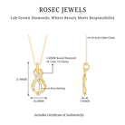 Rosec Jewels Diamond Infinity Necklace reflects the beauty of eternity and a love that never ends just like infinity. The design of this Forever Necklace features a flowing ribbon-like smoothness that gracefully curves into the shape of an infinity symbol, nestled with round petite diamonds of EF-VS quality in pave setting. Perfect for everyday wear elegance or special occasions, this Lab Grown Diamond Pendant is a meaningful gift for anniversaries, birthdays, Valentines Day, or any moment when you want to remind someone of your everlasting love and devotion.