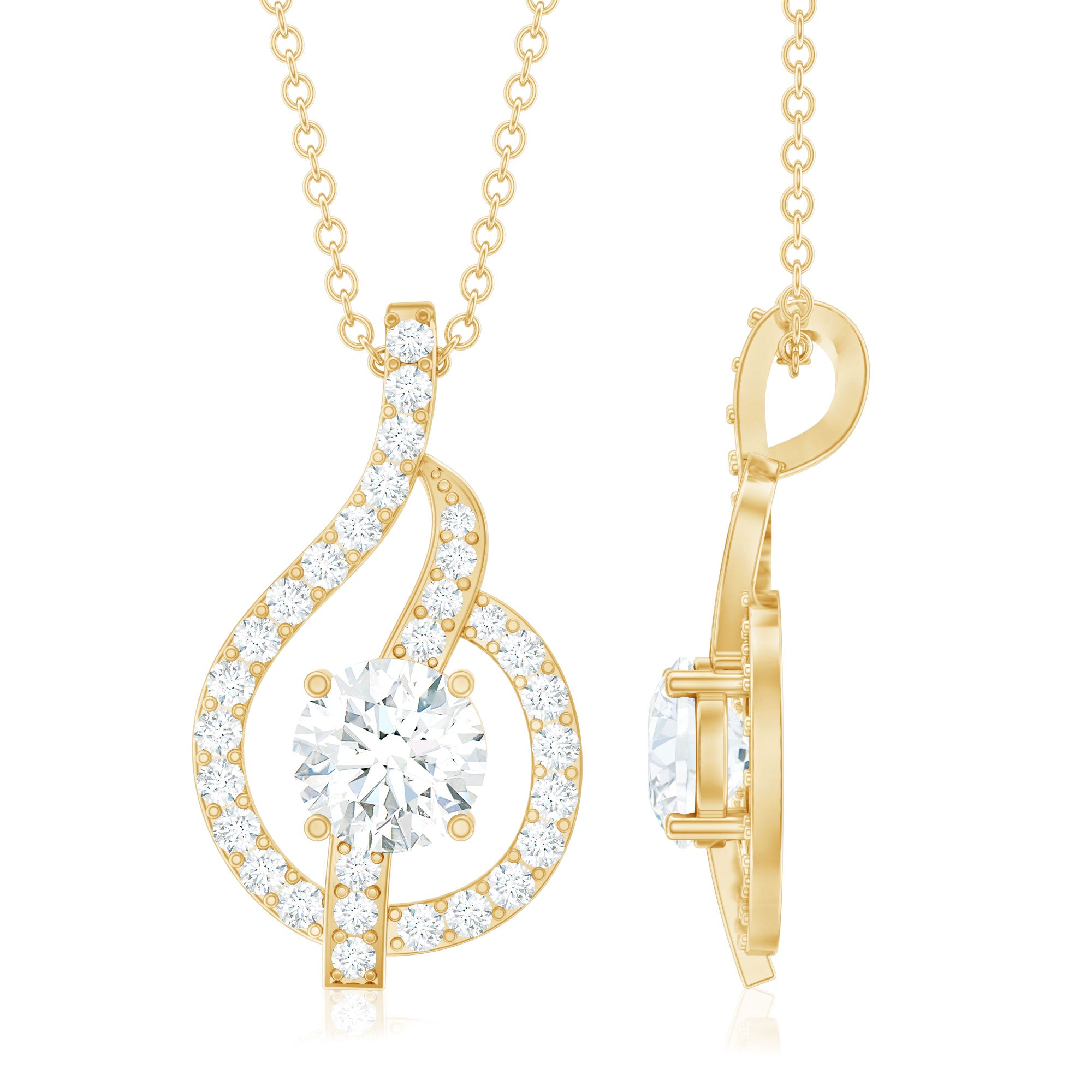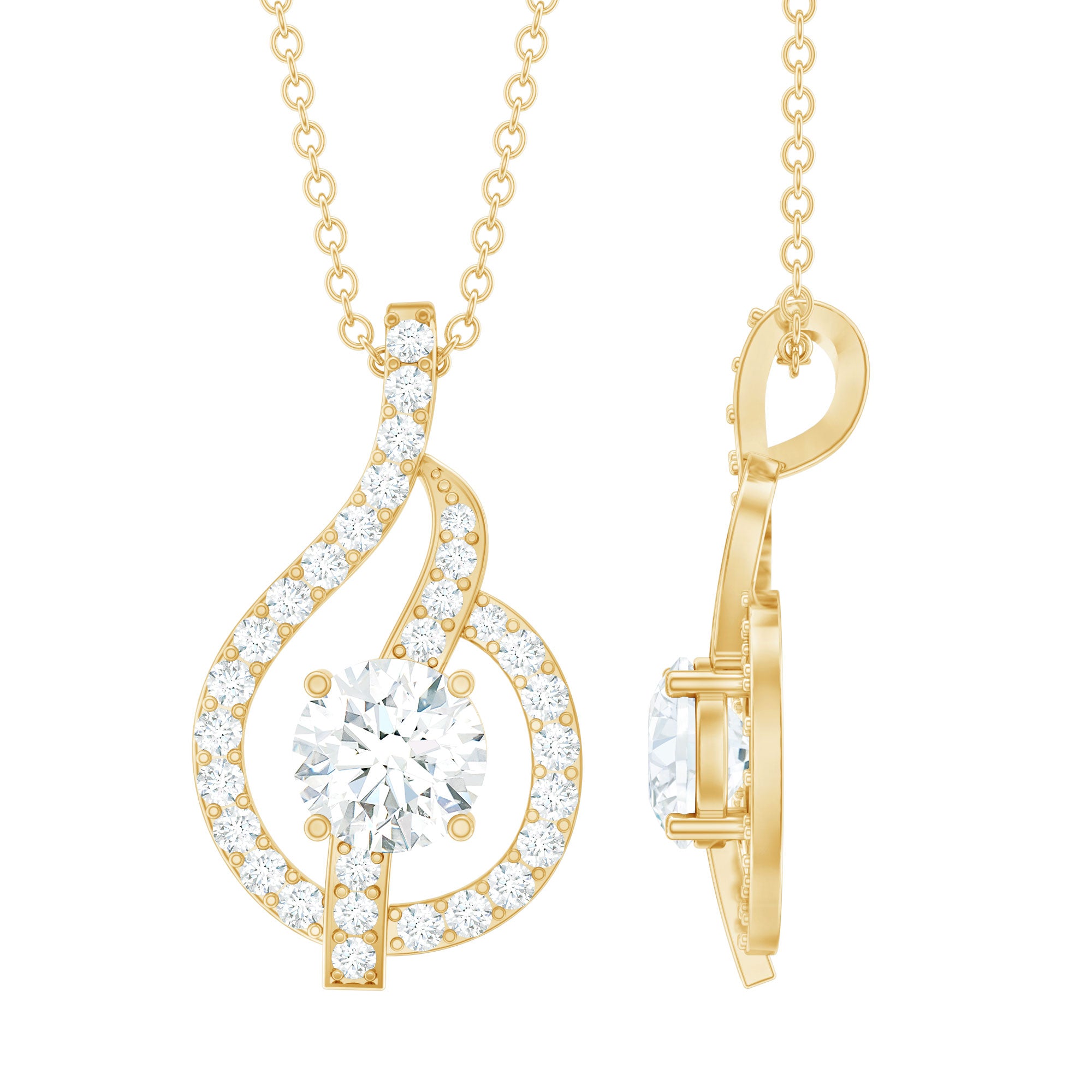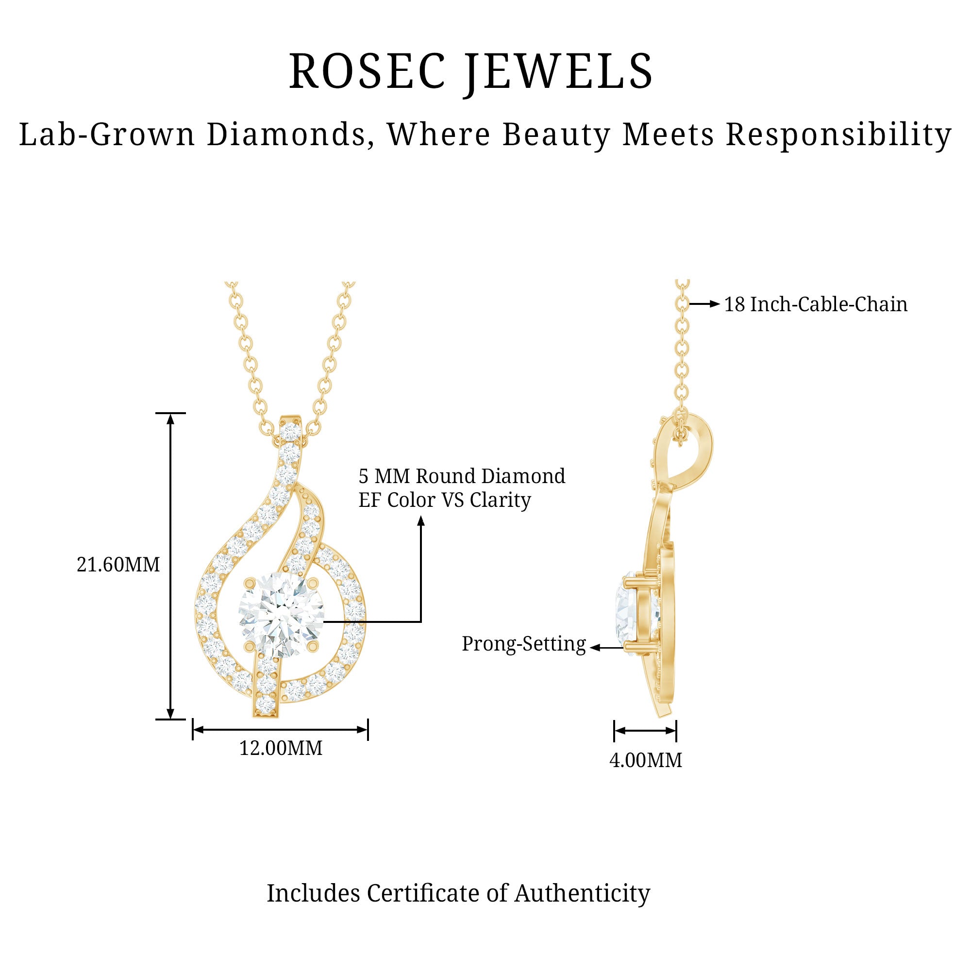 Mesmerize people with this Lab Grown Diamond Pendant Necklace, adorned with shimmering 5 mm round shaped Diamond gemstones set in Prong Setting. This exquisite piece effortlessly blends elegance with modern sophistication. The delicately crafted leaf design symbolizes simplicity and beauty, making this Ef-Vs Quality Round Cut Diamond Necklace a timeless addition to any jewelry collection. This graceful Leaf Pendant Necklace is a testament to the unparalleled craftsmanship and ethical values of Rosec Jewels, where beauty meets responsibility.