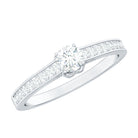Simple in style this Lab Grown Diamond Ring embodies elegance with its timeless design. Featuring a 4 MM Round Shaped Lab Grown Diamond in Prong Setting with the round petite diamond decorated as side stones. Breathtakingly beautiful this Minimal Diamond Ring lets you keep in the spotlight exuding a subtle beauty. Perfect for those who appreciate minimalist style, this Diamond Promise Ring showcases the brilliance and radiance of an EF-VS Quality Lab Grown Diamond, symbolizing the pure, enduring love between two people. people. Its elegant simplicity makes it an ideal choice for brides who prefer a delicate, timeless piece of jewelry.