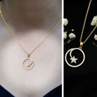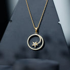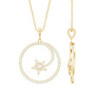 Our stunning celestial inspired lab made Diamond Pendant Necklace is a piece of art, that combines the brilliance of the night sky with the elegance of fine craftsmanship. This Star Pendant Necklace is adorned with an open circle and shooting star, encrusted with round cut diamonds of EF-VS Quality. The center stone is set in bezel setting, for a secure and modern look. This Diamond Star Necklace is as versatile as it is stunning, perfect to add a touch of charm to any of your casual and formal look. As the diamond is the birthstone of April, symbolizes strength, purity, and everlasting love, making this Eternity Necklace a perfect choice for women born in this month.