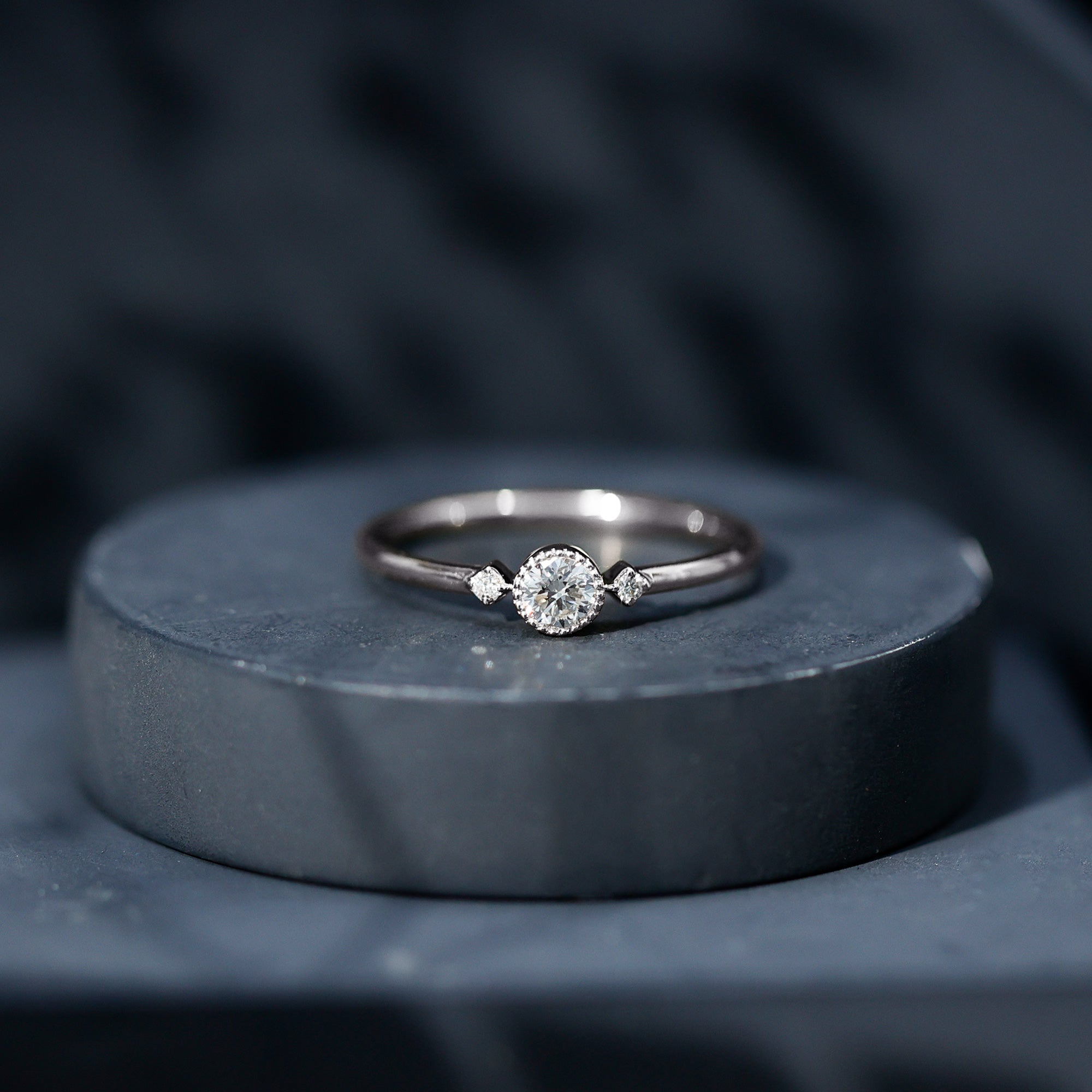 Your partner will be mesmerized by this stunning Diamond Promise Ring, designed by Rosec Jewels. This gorgeous Minimalist Ring features a 4 MM round diamond (lab grown) in the center with a small stone on each side. The focal EF-VS Quality Diamond is set in a secure bezel setting and framed with bead work detailing, adding a touch of texture. The simple yet stunning design makes this Diamond Ring for Women a versatile choice, whether as a declaration of love or a promise of forever, this Solitaire Ring is a timeless treasure meant to be cherished for a lifetime.