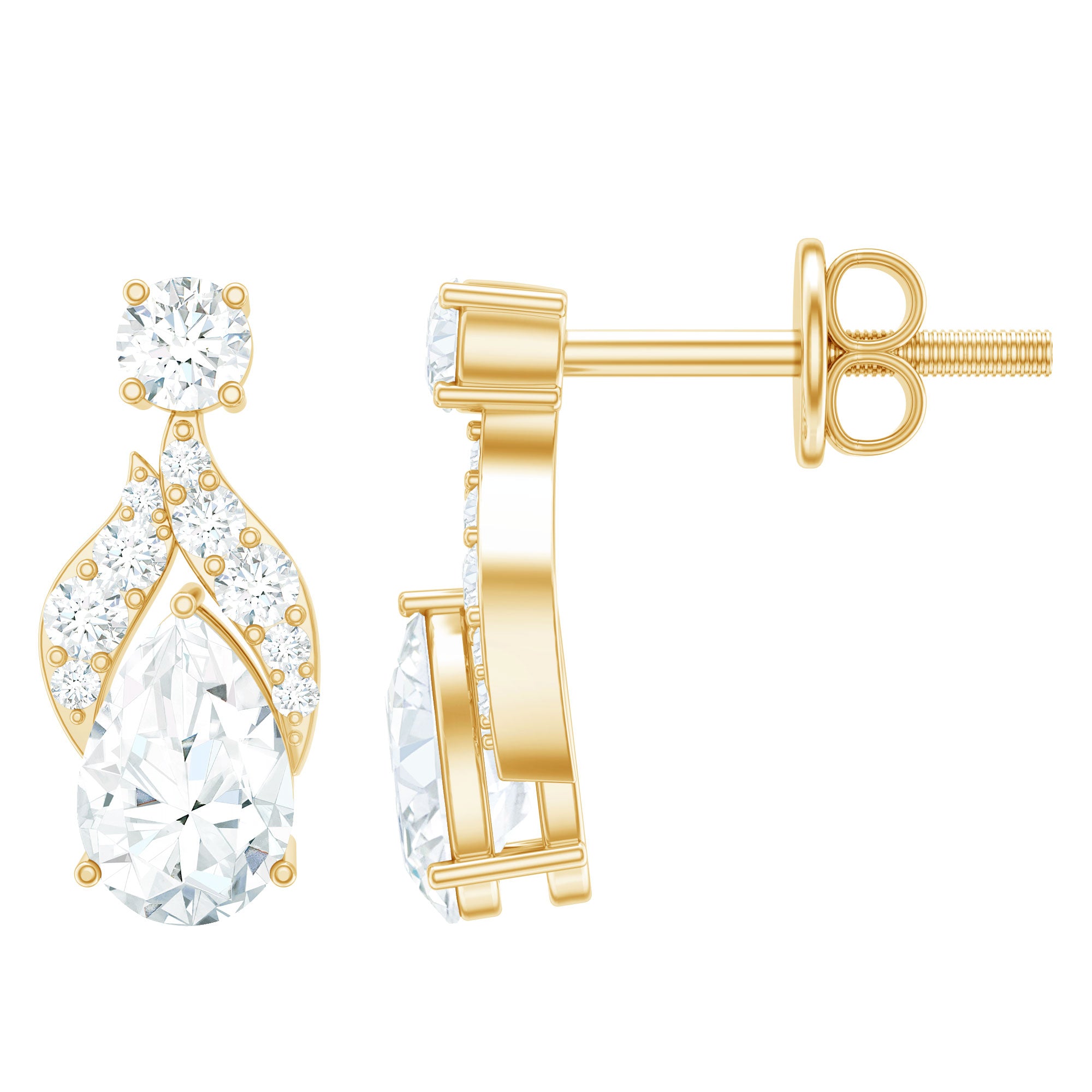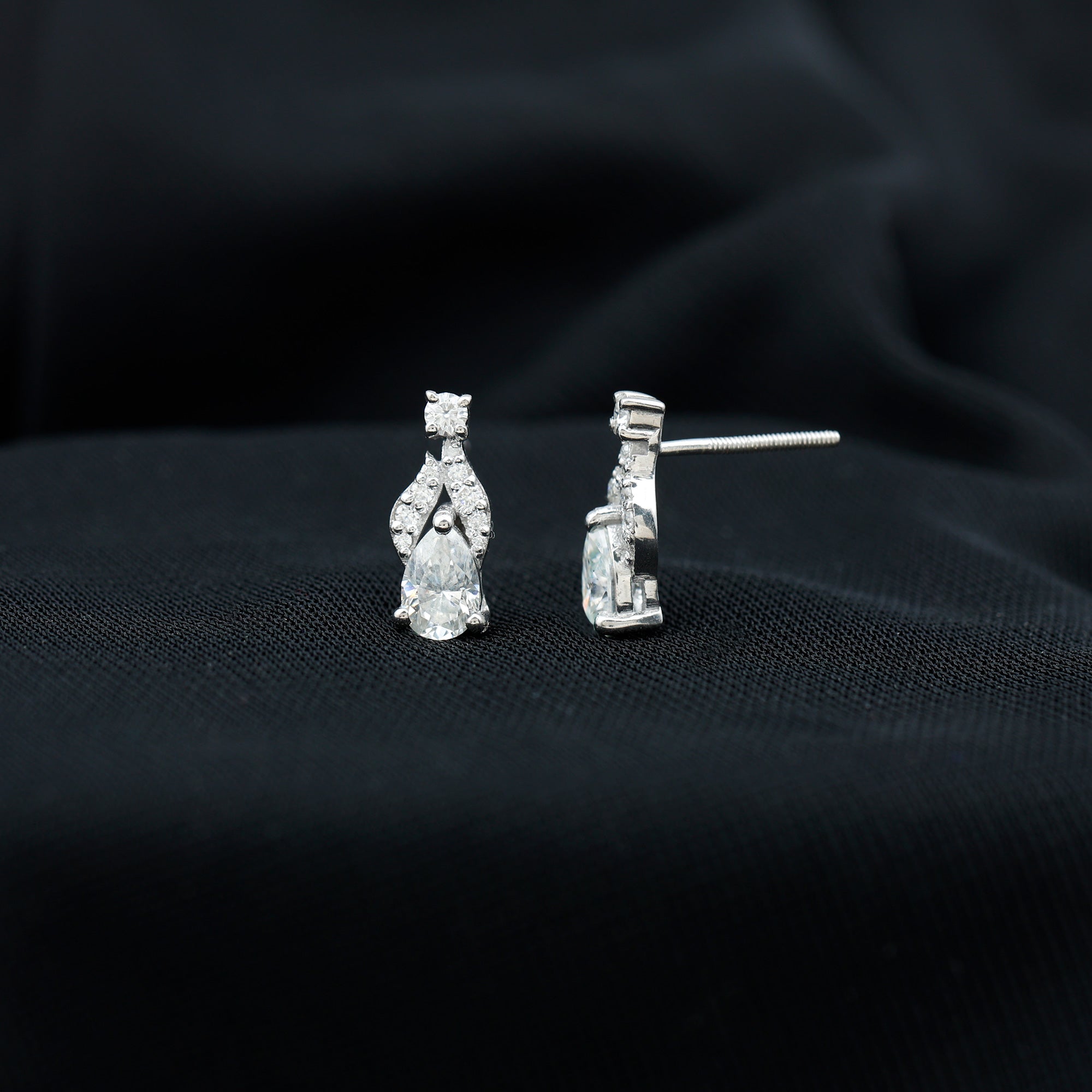 In charming style, these Diamond Stud Earrings can elevate any attire. Our Leaf Earrings are curated with pear and round-shaped certified diamond gemstones of EF-VS Quality set in prong setting. The diamond, also known as the April birthstone, symbolizes clarity, loyalty, and everlasting love, making these Screw Back Earrings both meaningful and beautiful. Designed with simplicity and elegance, these Nature Inspired Earrings are budget-friendly, proving that timeless beauty doesnt have to come at a high price. All the gemstones are lab grown in these Diamond Earrings making them affordable and environmentally friendly.