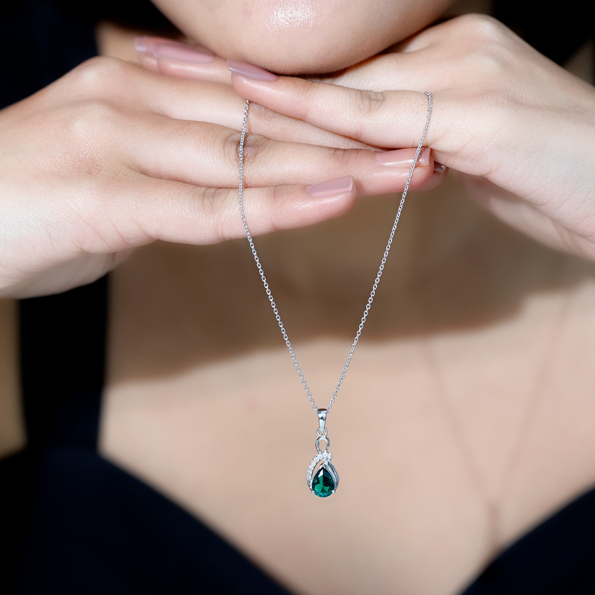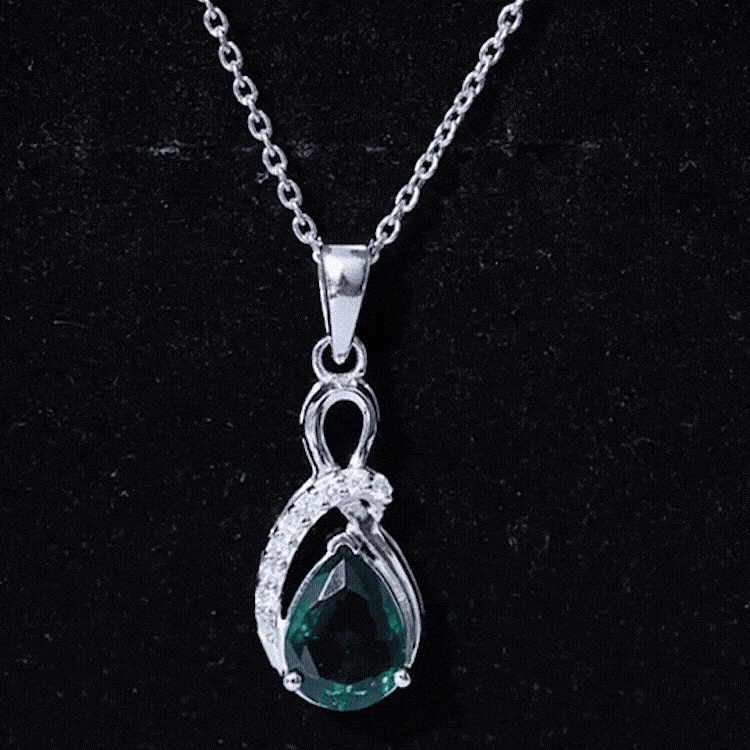 Emerald jewelry has long been appreciated for its distinctive color and elegant presence. In this necklace design, the emerald remains the central visual element while the surrounding diamonds add brightness and contrast.