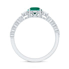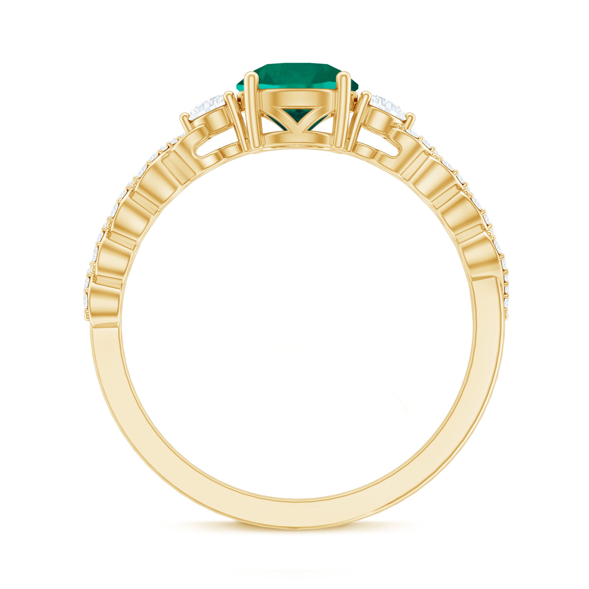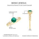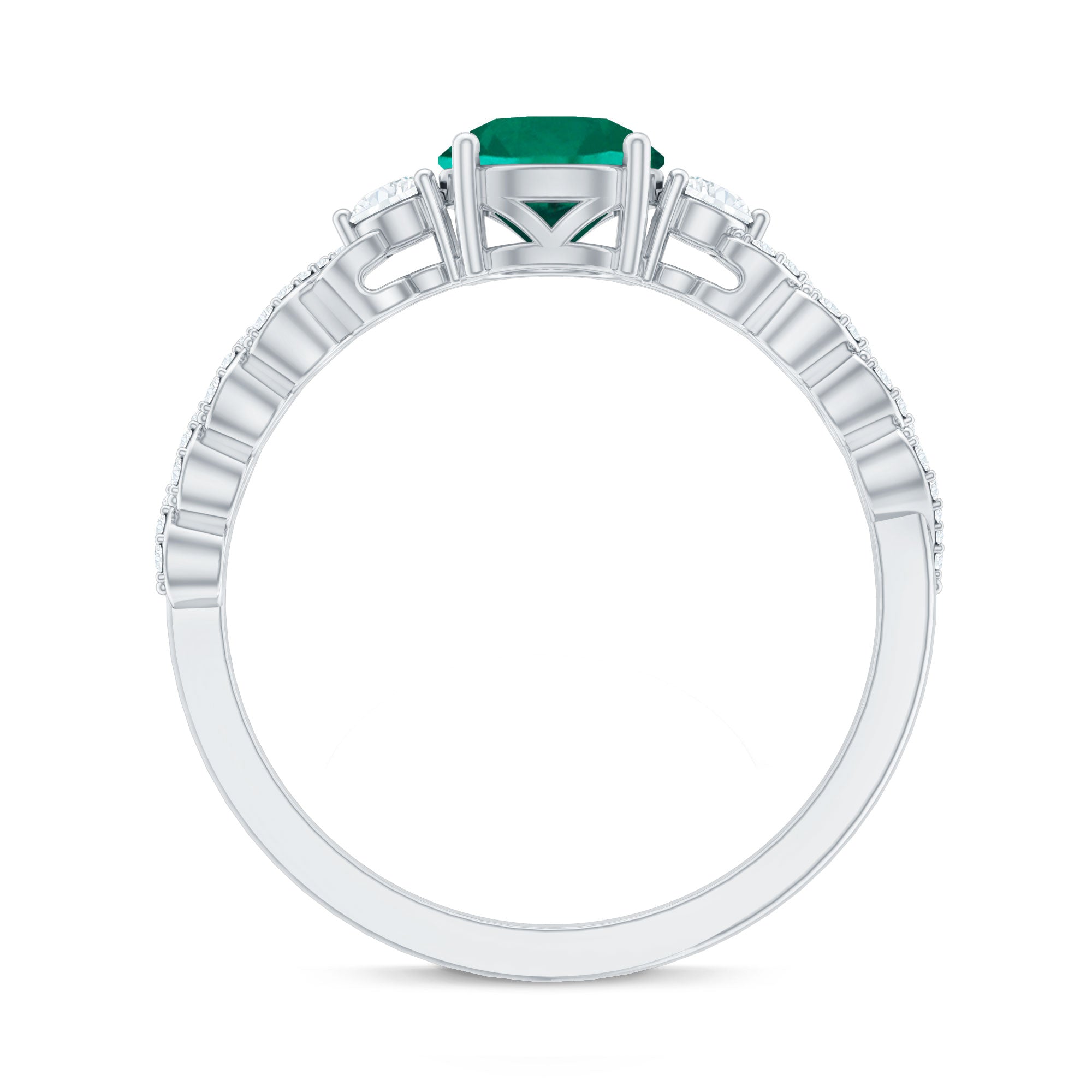 This Designer Engagement Ring is crafted for those who appreciate romance with a touch of artistry. At the center of the piece lies a captivating 6 mm Round Shape Lab Created Emerald in Prong Setting, flanked by shimmering HI-SI Diamond stones, which adds brilliance and enhances the luxurious charm of this Solitaire Engagement Ring. The band with a unique design is adorned with sparkling, dainty Diamond stones, making this Lab Grown Emerald Ring a perfect fusion of timeless elegance and sparkle. Designed with perfection and attention to detail, this Lab Emerald Diamond Engagement Ring makes the perfect symbol for engagements, anniversaries or as a gift to celebrate meaningful milestones. This Lab Grown Emerald Engagement Ring blends the sophistication of fine jewelry with a whimsical detail that sets it apart from traditional designs. A statement of love and a piece of jewelry that shines with both modern grace and everlasting sentiment, this Lab Created Emerald Ring is a keepsake of your story.