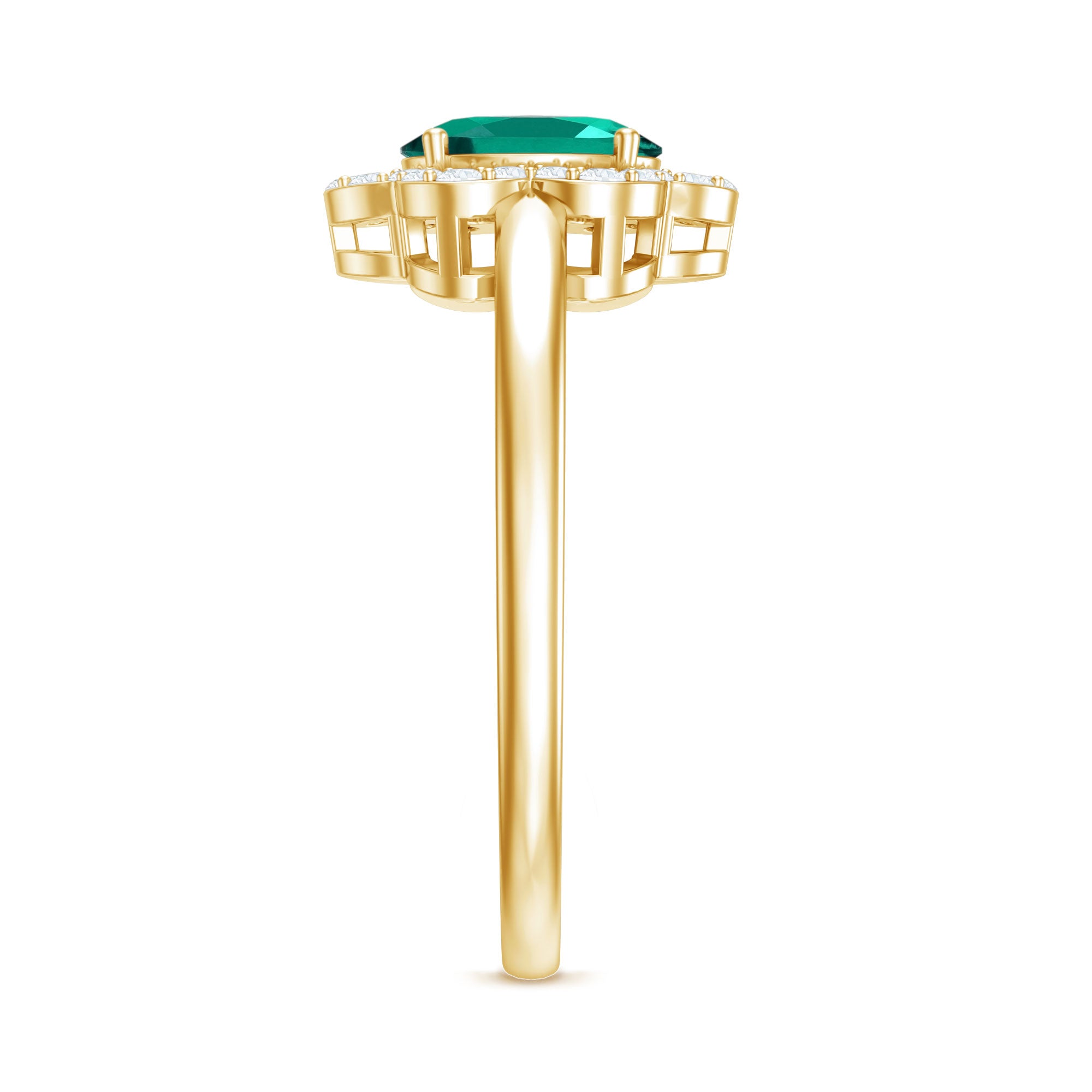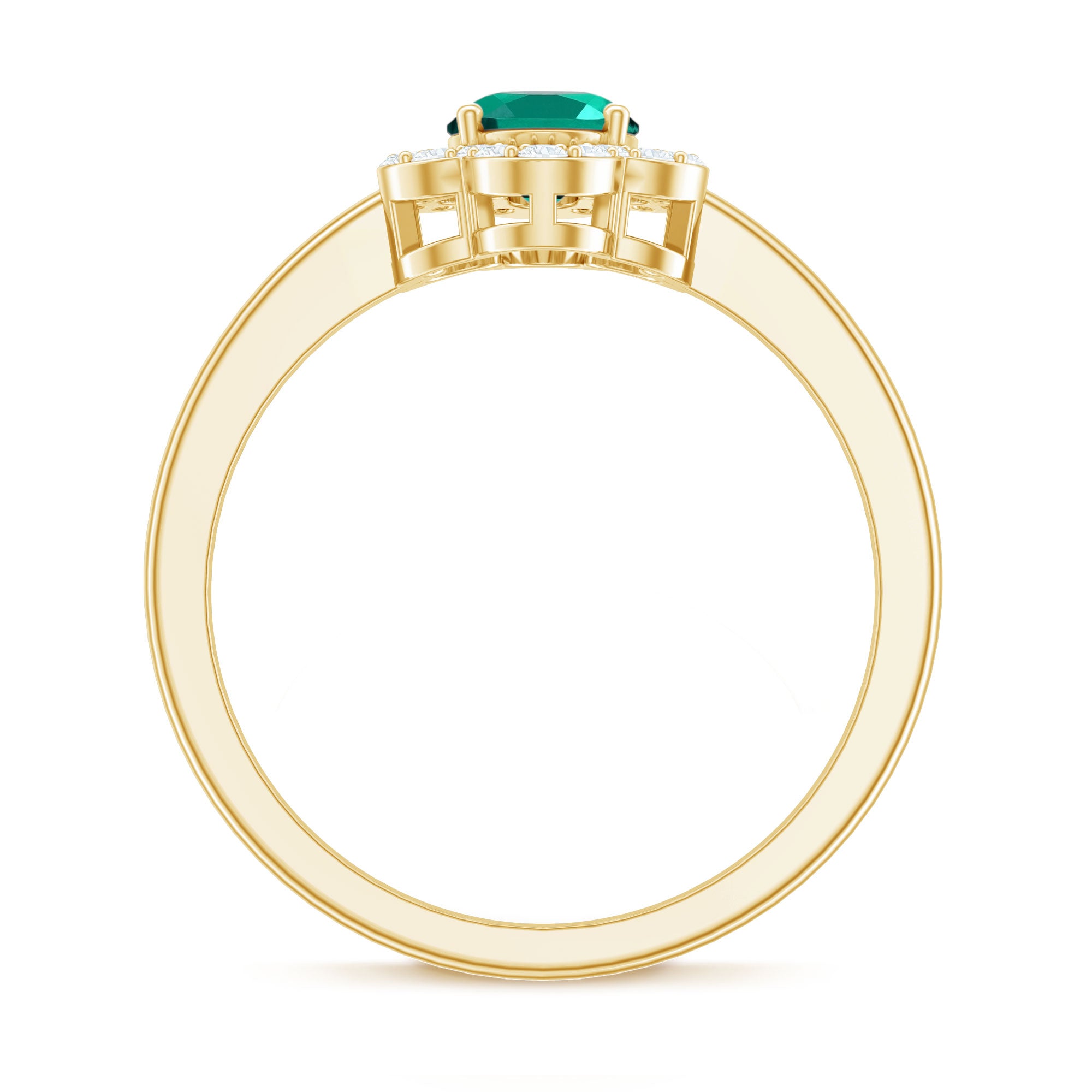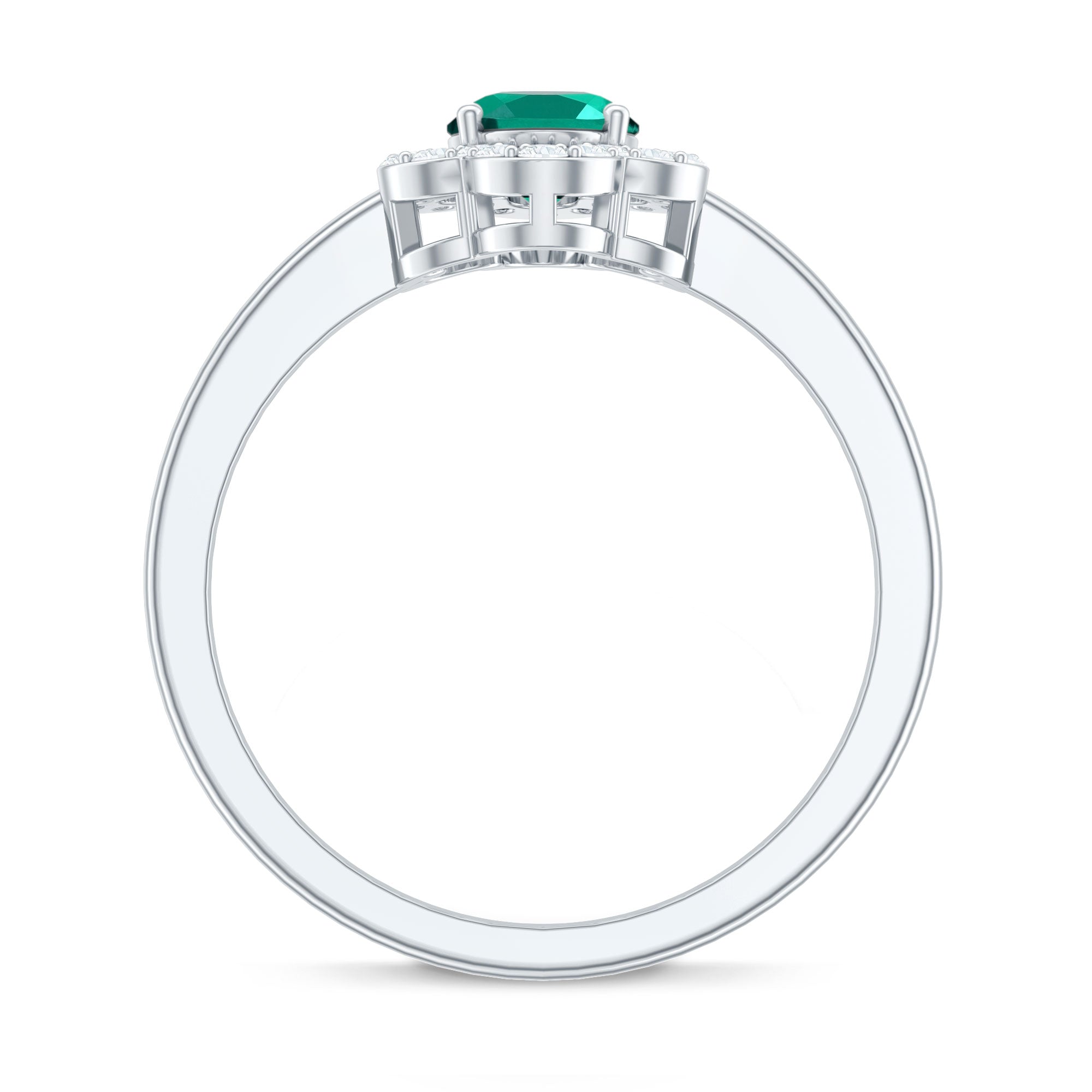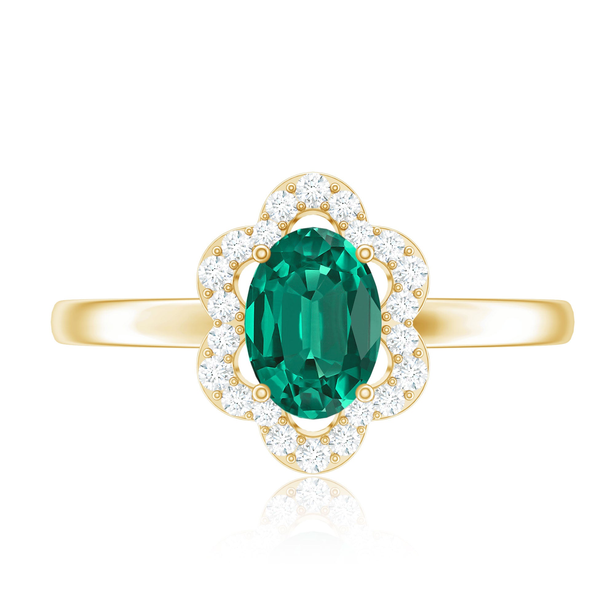 Celebrate love with elegance and the timeless sparkle of nature with this Lab Grown Emerald Engagement Ring, a breathtaking expression of romance, sophistication and sustainable beauty. At its heart lies a vibrant 5X7 mm Oval Shape Lab Created Emerald set in Prong Setting, chosen for its deep green hue. The rich green color of the AAAA Quality Lab Emerald symbolizes growth, harmony and renewal, perfectly reflecting the blossoming love between two souls. Surrounding the Lab Emerald is a stunning Diamond Floral Halo, where sparkling Diamond stones are meticulously arranged in a floral pattern. This delicate halo enhances the brilliance of the center stone, adding a touch of vintage charm while making the entire ring sparkle with unmatched radiance. The flower design represents beauty, blossoming love and eternal commitment, that gives this Cocktail Engagement Ring a unique and meaningful character. Designed for those who appreciate timeless elegance with a thoughtful twist, this Flower Engagement Ring blends classic design with modern sustainability. Available in a variety of US standard ring sizes and presented in an elegant jewelry box, this Lab Emerald Diamond Engagement Ring is perfect for engagements, anniversaries or any milestone where love deserves to be celebrated with brilliance and meaning.