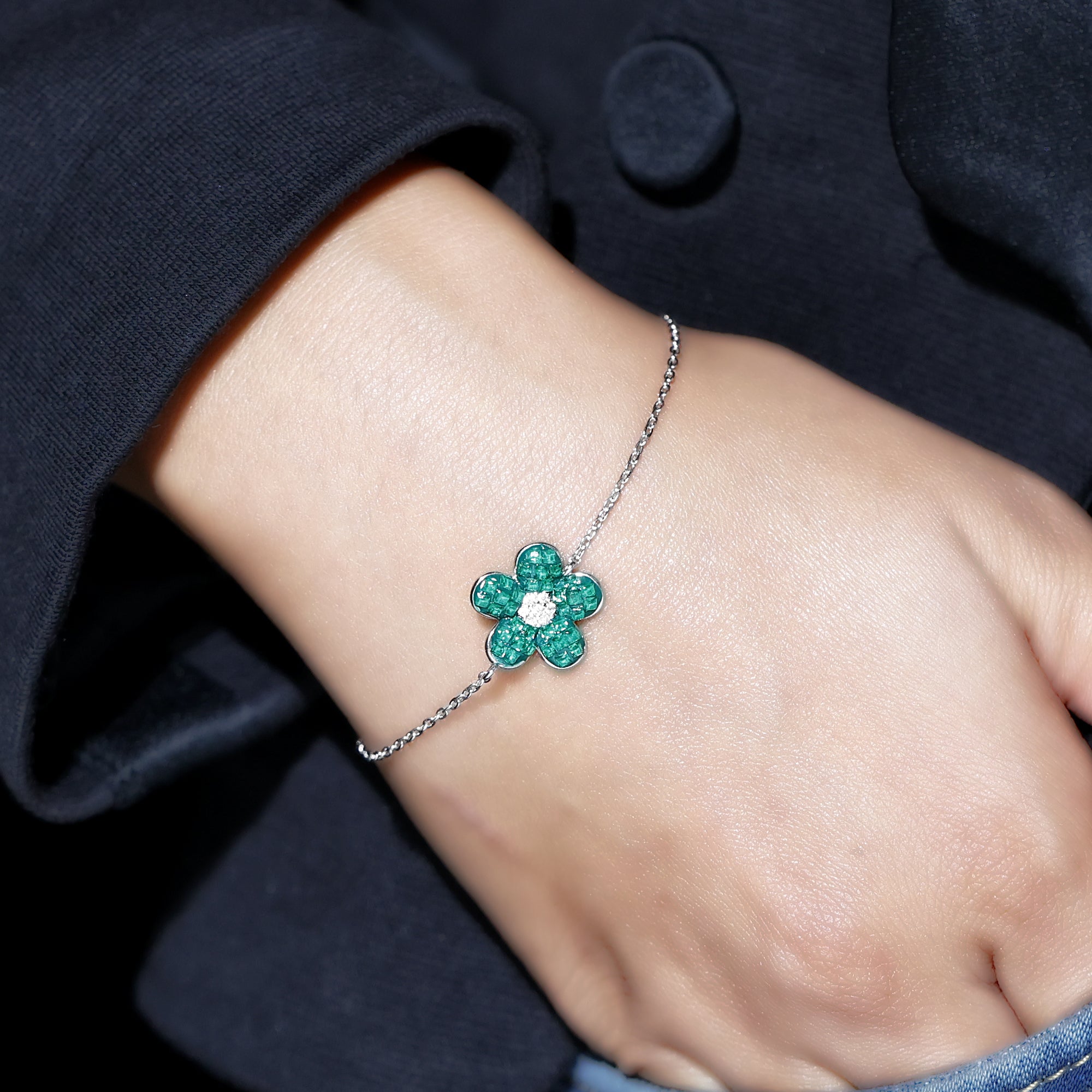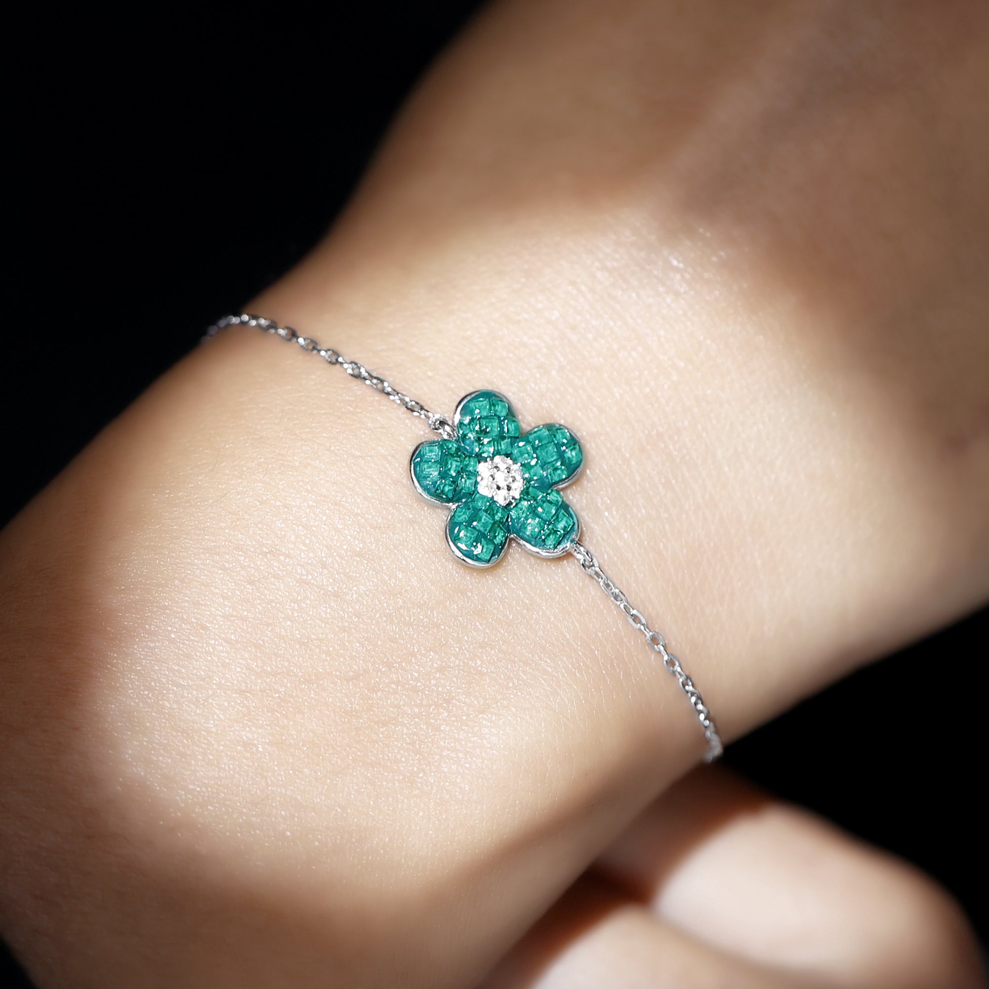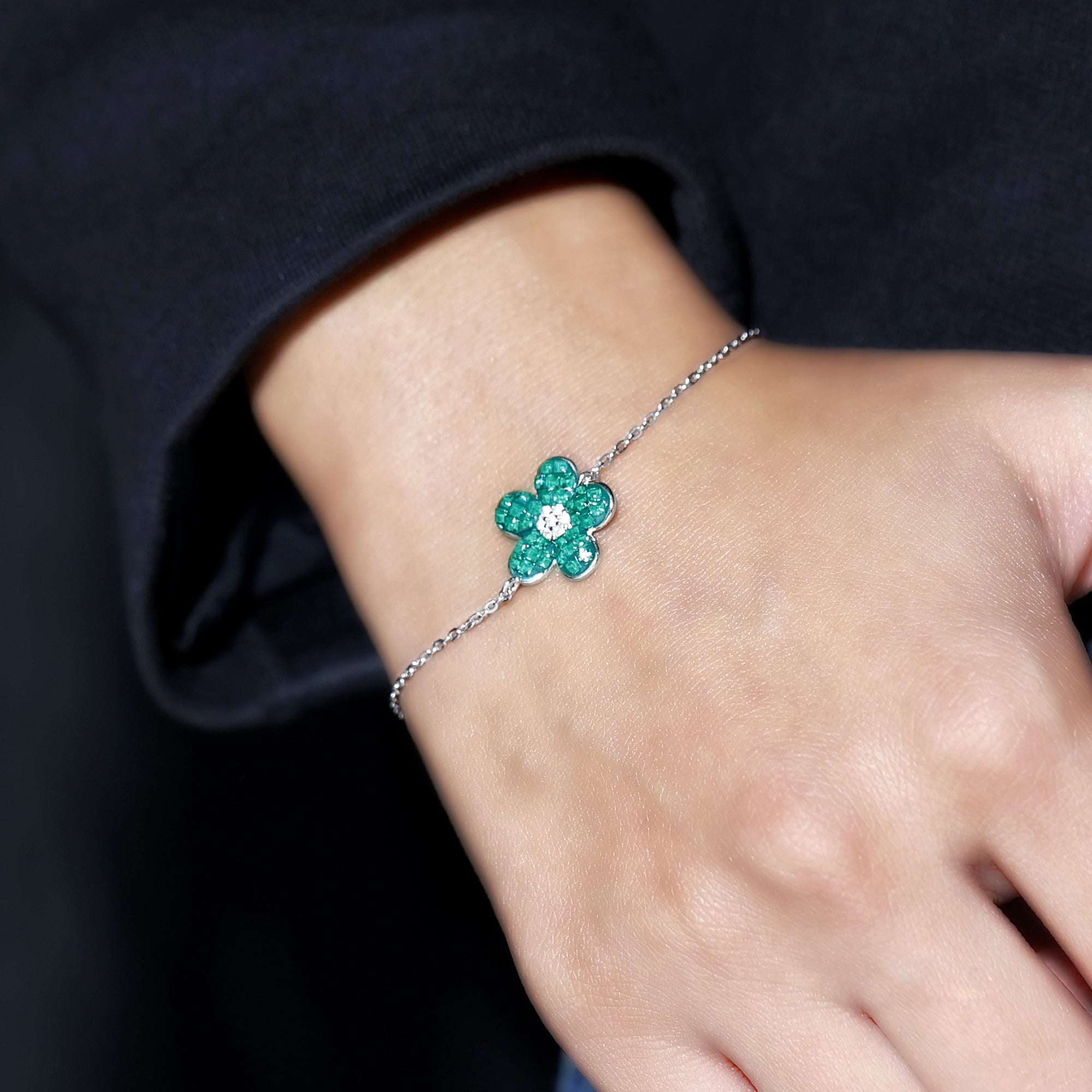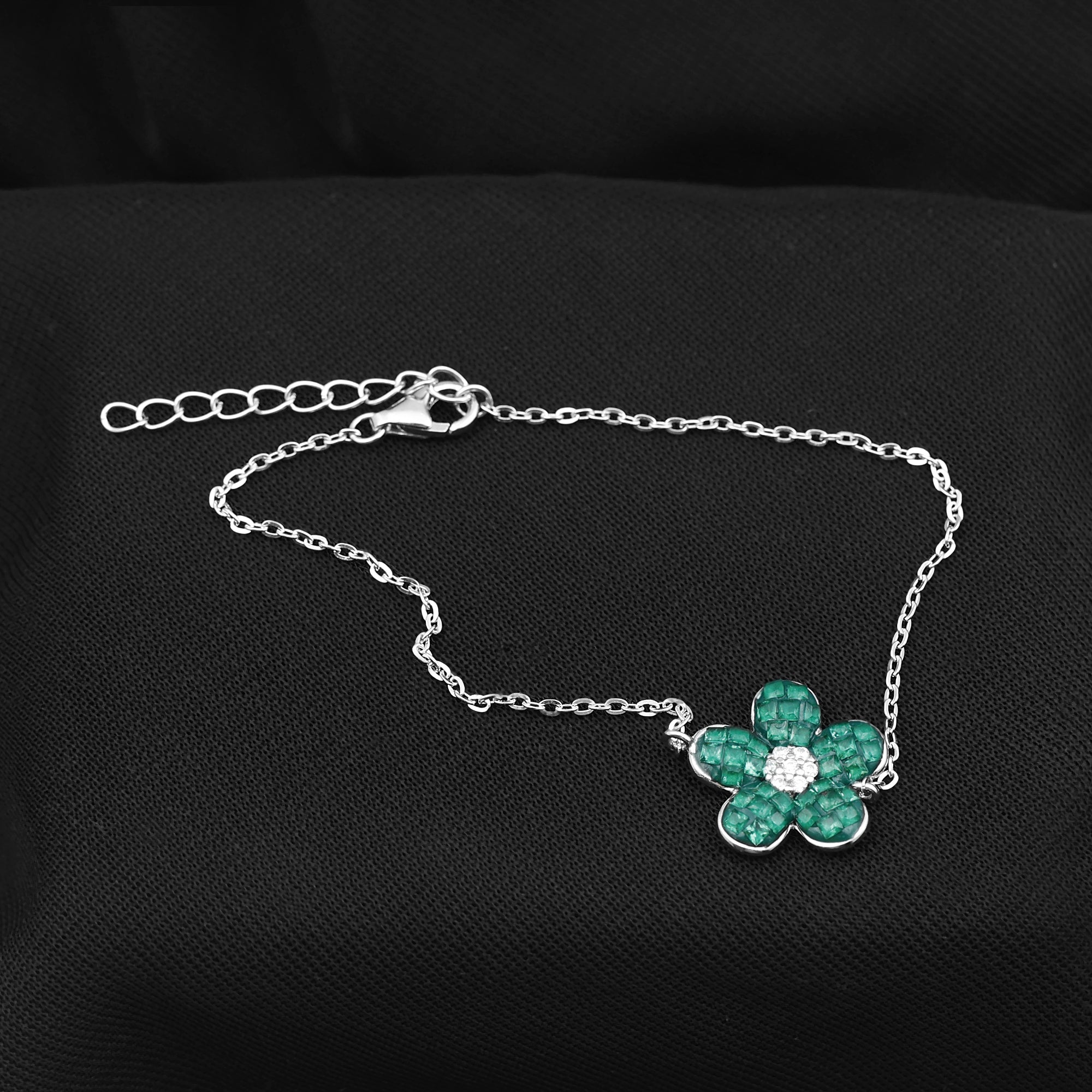 Certified Lab Grown Emerald Flower Bracelet in Silver