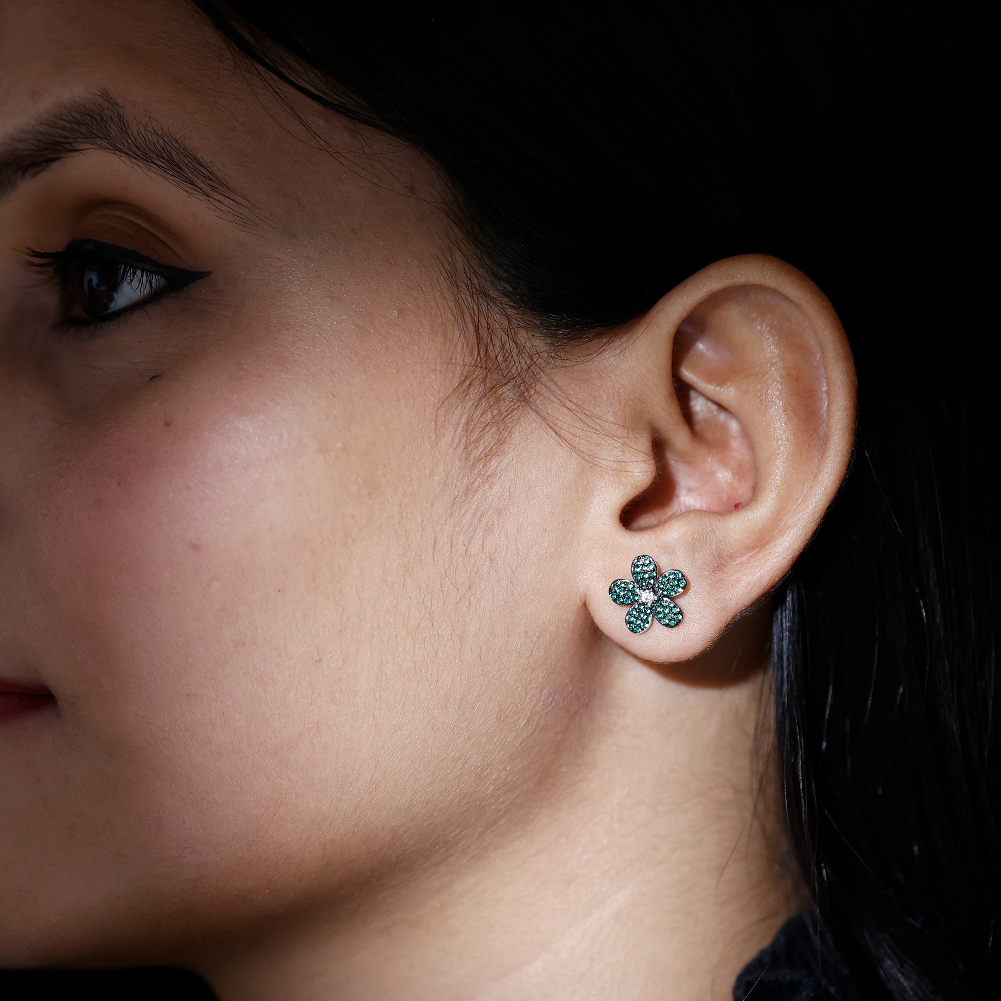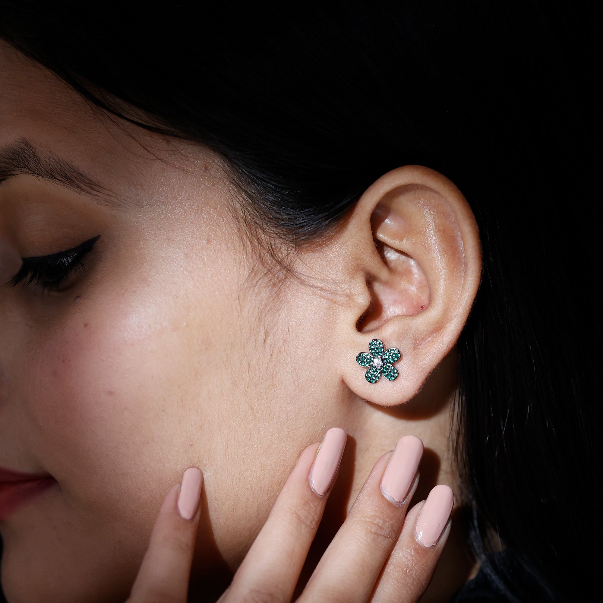 Indulge in the delicate charm of these Flower Earrings, a perfect blend of elegance and playful sophistication. Crafted in 925 Sterling Silver, each earring features a dainty Zircon stone at the center, surrounded by vibrant Lab Created Emerald stones that form the petals of a beautifully detailed flower. The secure Screw Back Closure ensures a comfortable and worry-free fit, so you can enjoy their beauty all day and night. These Lab Emerald Flower Earrings are versatile enough to pair with both casual outfits and dress ensembles, making them a go-to accessory for any occasion. Packaged in a lovely jewelry box, these Lab Emerald Stud Earrings are ready to gift for Christmas, birthdays or anniversaries. These Lab Grown Emerald Earrings are a symbol of beauty, growth and vibrant energy, designed to make the wearer feel cherished and radiant. With these Lab Emerald Studs, every glance in the mirror will remind you or someone you love of elegance, joy, and the magic of small, sparkling details.