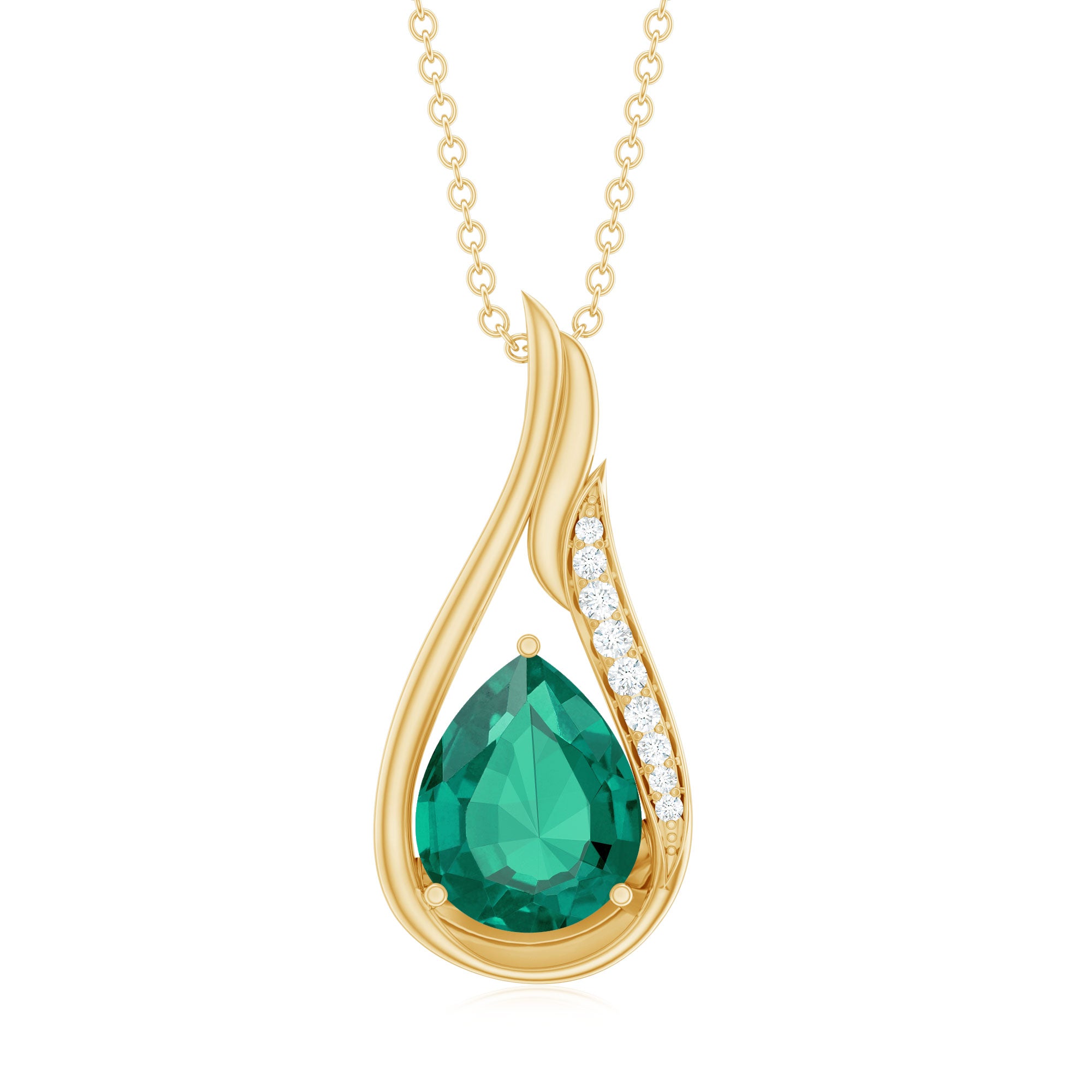 Dangle and sway with the timeless elegance of this Teardrop Pendant Necklace. This exquisite piece features a 8x10 mm Pear Shape Emerald set as a centerpiece in Prong Setting, radiating vibrant green hues. The sparkles of Aaaa Quality Emerald and Ef-Vs Quality Diamond add a touch of sophistication. Impeccably designed by Rosec Jewels, this Emerald Pendant Necklace (Synthetic) reflects our commitment to sustainable luxury.