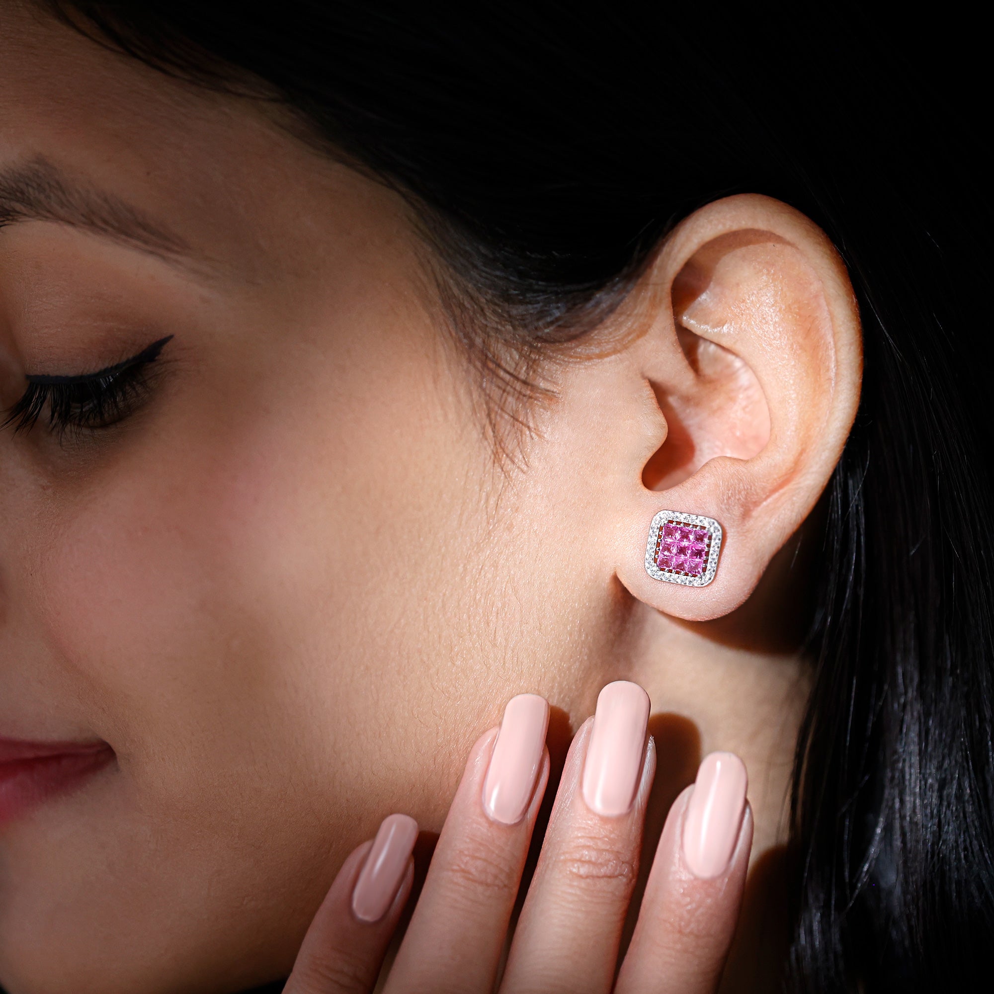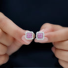 Embrace soft hues of elegance with these Lab Pink Sapphire Earrings, designed to bring a fresh, feminine glow to your everyday style. At the center of each earring sits a cluster of 2 mm Princess Cut Lab Created Pink Sapphire stones, known for their delicate color and modern shape. Surrounding the cluster is a shimmering Zircon Halo that adds extra sparkle without feeling overpowering. Crafted in genuine 925 sterling silver, these Lab Grown Sapphire Earrings offer beauty, while the secure Screw Back Closure keeps them comfortably in place from morning to night. Their subtle pop of color makes them easy to pair with both casual outfits and dressy evening looks, offering endless ways to wear them. Presented in a signature jewelry box, these Lab Pink Sapphire Stud Earrings are a stylish addition to your collection but also a thoughtful gift for someone who loves unique, feminine jewelry. Perfect for birthdays, anniversaries, holidays or simply brightening someone’s day, these Lab Pink Sapphire Studs bring together charm, sophistication and everyday ease. With their gentle pink sparkle and graceful design, they make the perfect finishing touch for anyone who wants to add a hint of romance and modern elegance to their look.