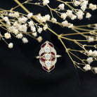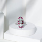 Certified Lab Grown Ruby Art Deco Statement Ring with Moissanite