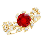 Add a touch of romance and timeless beauty to your love story with this Nature Inspired Engagement Ring. Designed for hearts that believe love should feel magical, this Fine Engagement Ring centers around a glowing 7mm Round Shape Lab Created Ruby of AAAA Quality set in Prong Setting, rich in color and full of passion. Flowing around the center stone, delicate vine and Leaf details gently wrap the band, symbolizing growth, devotion and a love that continues to bloom. Sparkling EF-VS Quality Lab Grown Diamond stones are set along the leaves, catching the light with every movement and adding a soft, enchanting shimmer. The design feels both graceful and bold, perfect for someone who loves nature, meaning and modern elegance. Thoughtfully crafted and ethically made, this Lab Grown Ruby Engagement Ring is a promise, a memory and a celebration of forever. This Lab Ruby Diamond Engagement Ring arrives in a signature jewelry box, ready for that unforgettable moment and is available in various ring sizes to ensure the perfect fit. Whether it is an engagement, anniversary or a heartfelt surprise, this Leaf Engagement Ring speaks the language of love.