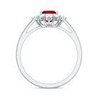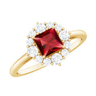 Certified Lab Grown Ruby Princess Cut Engagement Ring with Diamond Halo