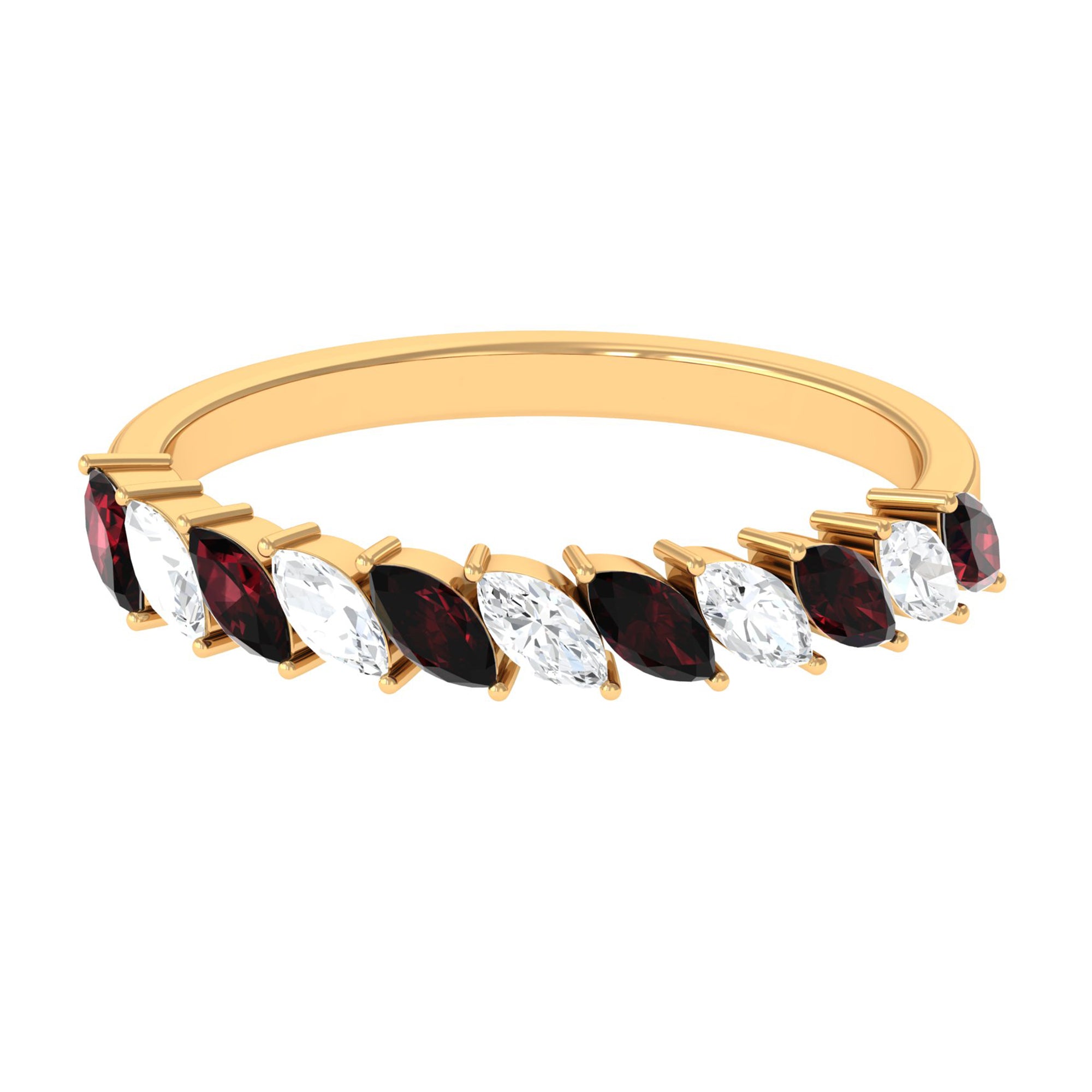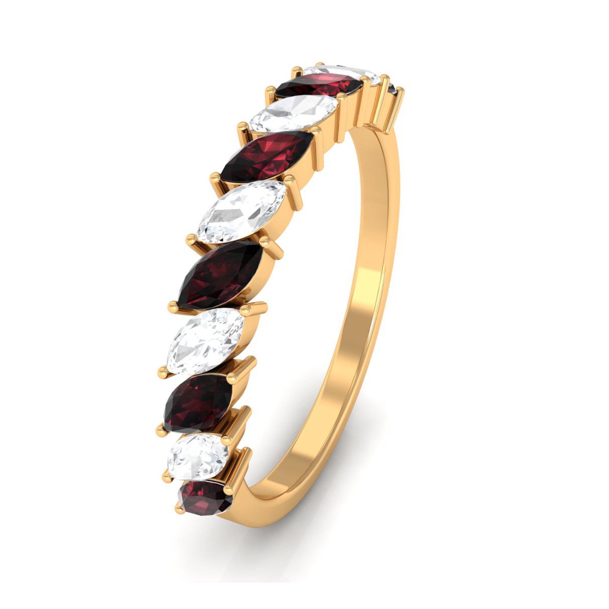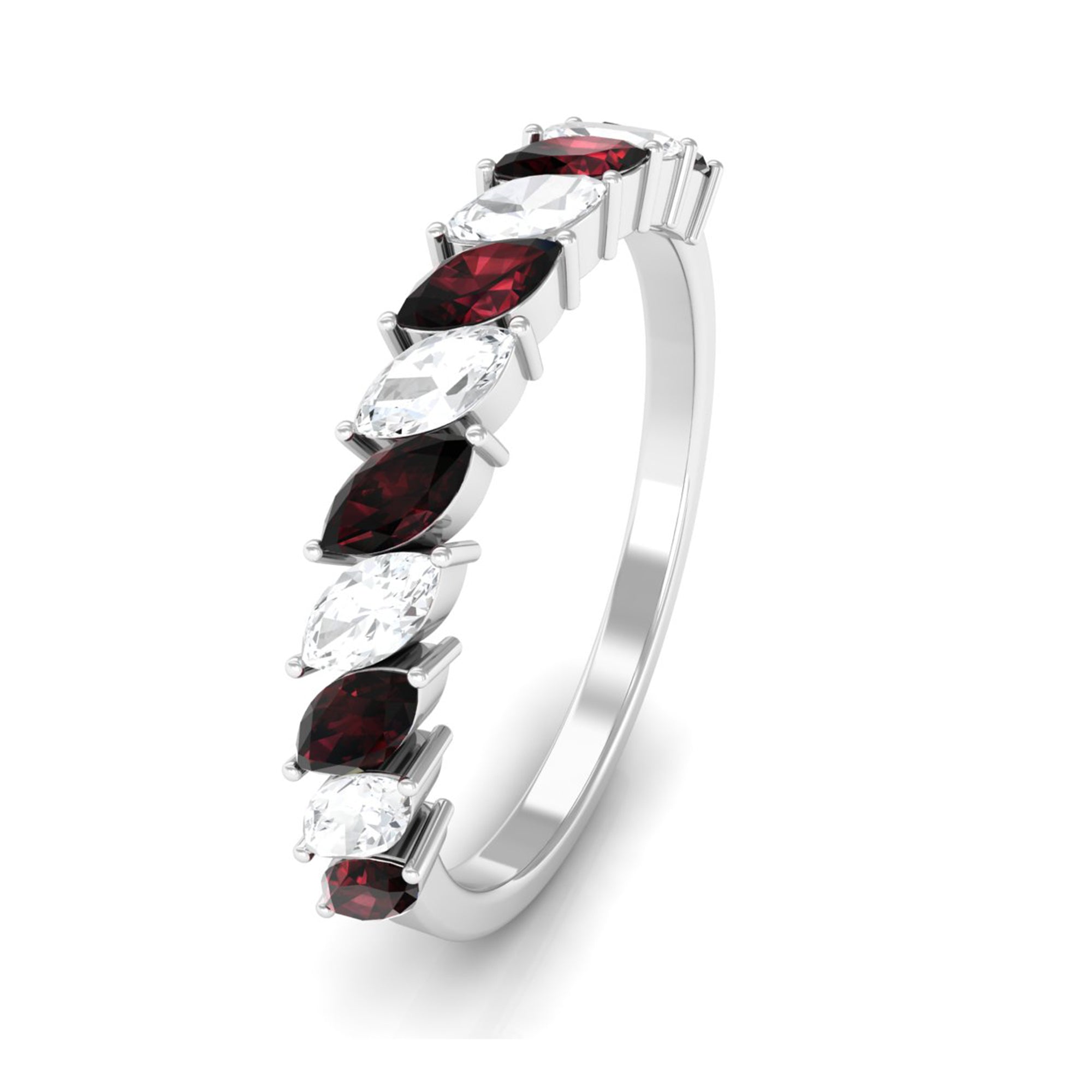 Certified Marquise Garnet Half Eternity Band with Diamond