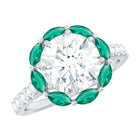 Certified Moissanite and Lab Emerald Designer Engagement Ring