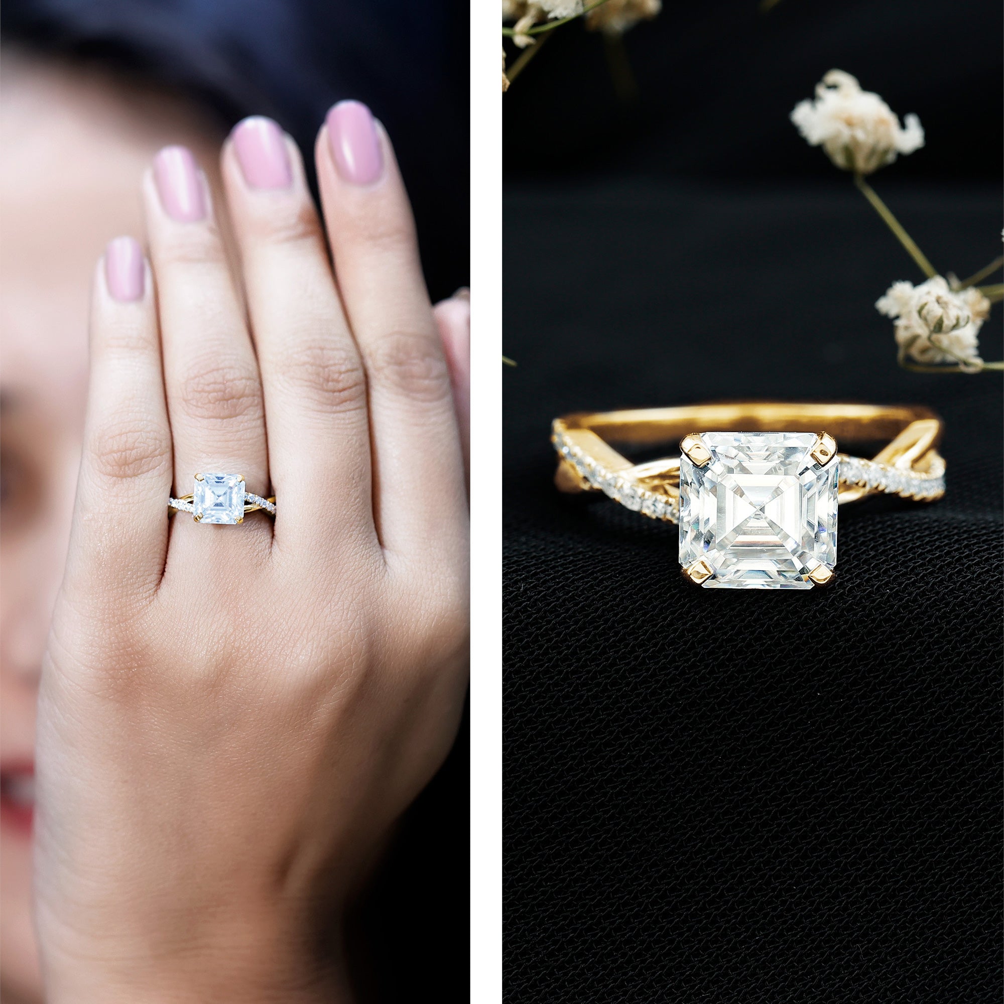 Certified Moissanite Asscher Cut Engagement Ring with Twisted Shank