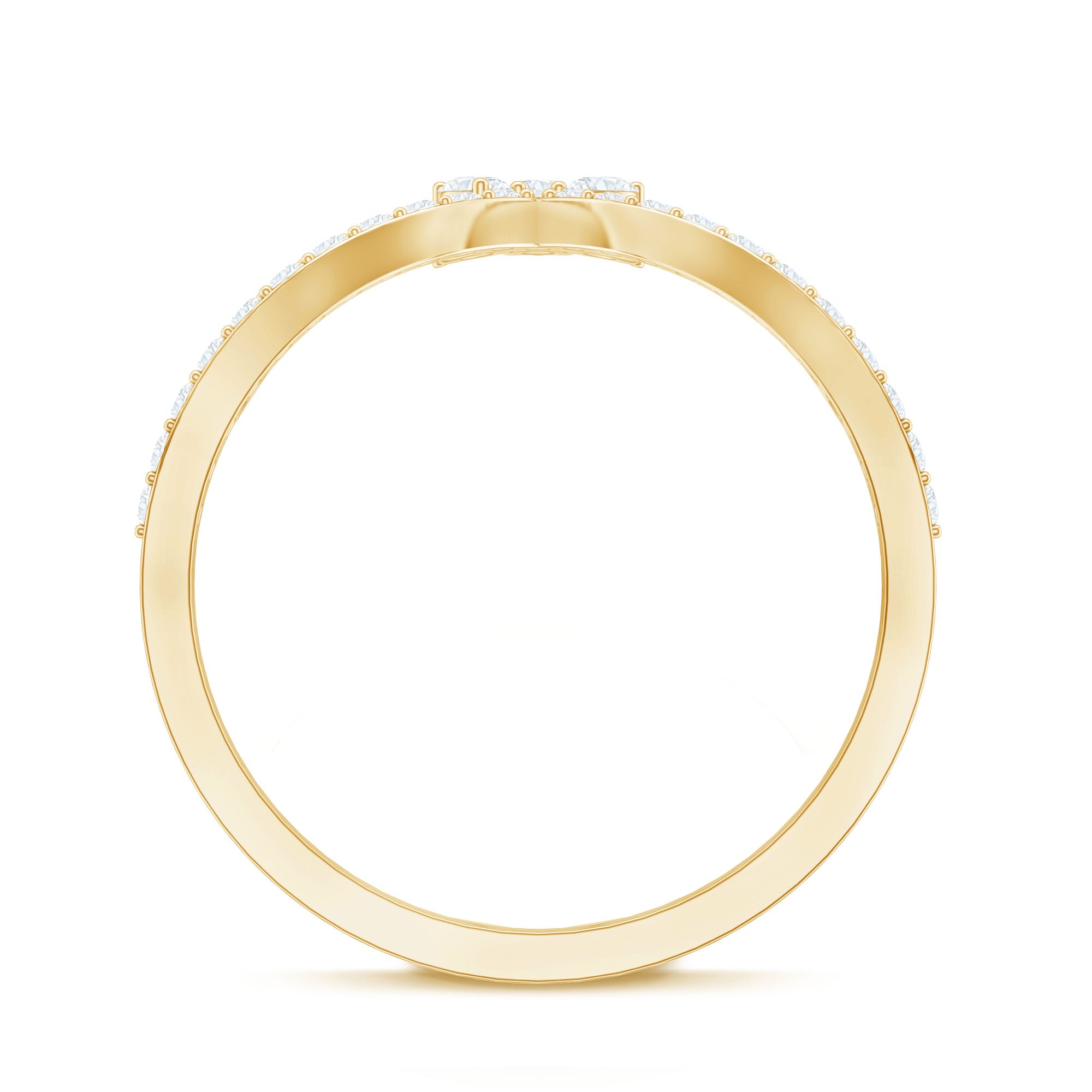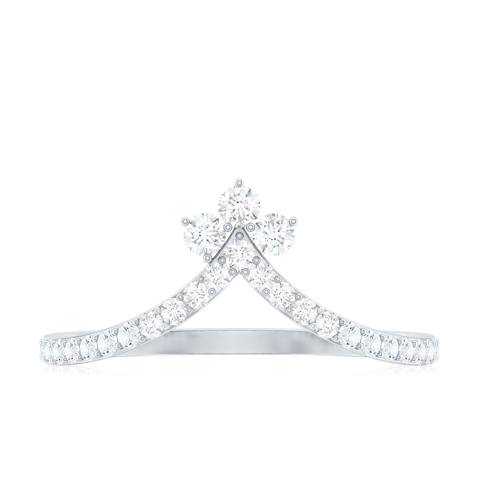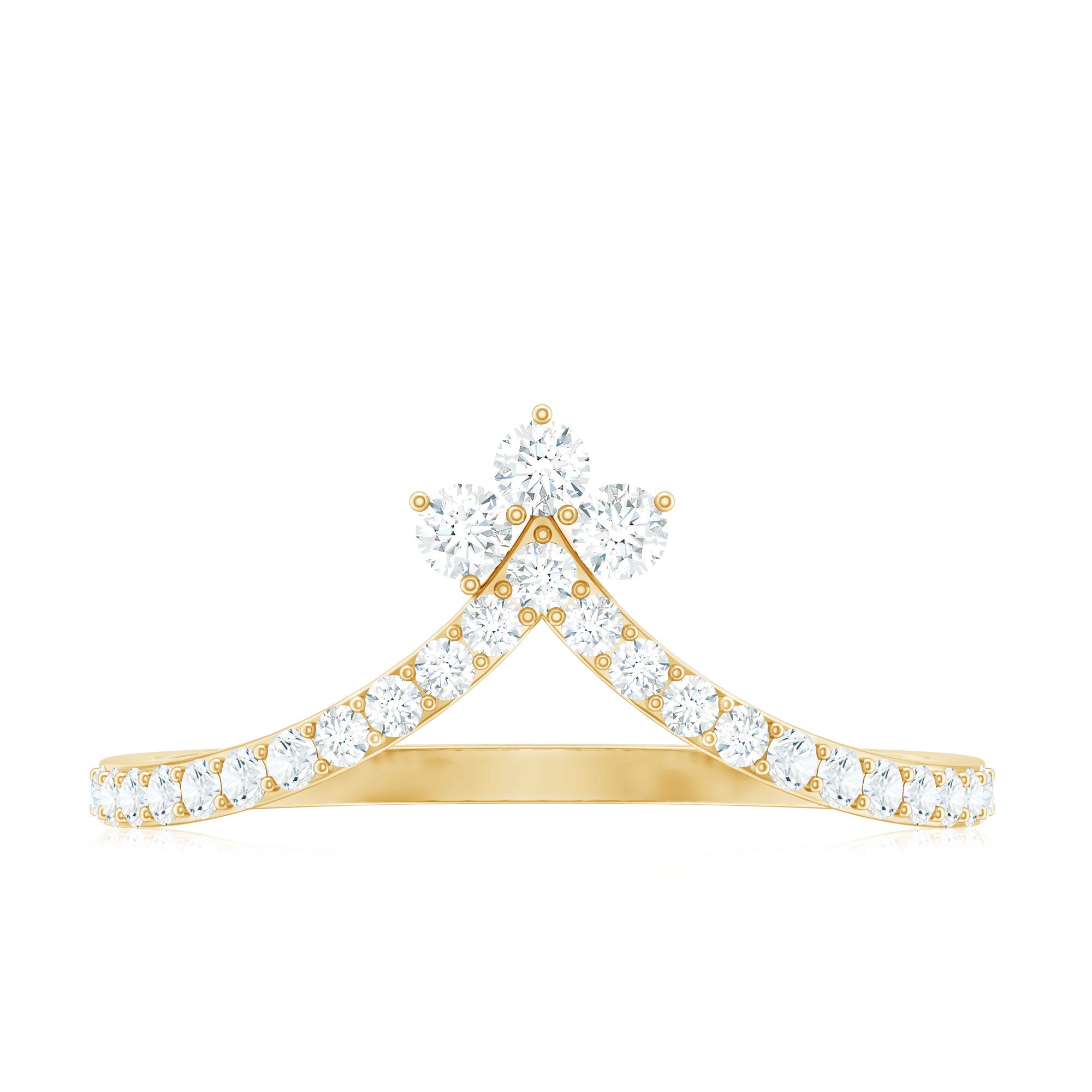 Revitalize your old engagement ring with this stylish V-shaped Moissanite Enhancer Ring. Crafted in a chic chevron design, this ring provides a contemporary and sophisticated way to accentuate your engagement ring or wear it alone for a subtle sparkle. This Chevron Ring features a line of stunning round cut moissanite stones securely set in prongs. Renowned for their exceptional fire and clarity, these moissanites are of D-VS1 quality, delivering the brilliance of diamonds while being ethical and budget-friendly. Each stone is meticulously placed to guarantee a smooth, continuous shine that follows the curve of the band. Whether you are stacking it with your engagement ring, celebrating an anniversary, or simply adding a touch of glam to your everyday look, this Chevron Stackable Ring is designed to shine while maintaining elegance. Its slim and comfortable design makes it easy to wear daily. Offered in various ring sizes, metal colors, and purities, this V Shaped Wedding Band can be customized to reflect your personal style. A thoughtful option for brides, anniversary gifts, or just to pamper yourself, this Engagement Ring Enhancer merges timeless brilliance with a trendy, modern twist.