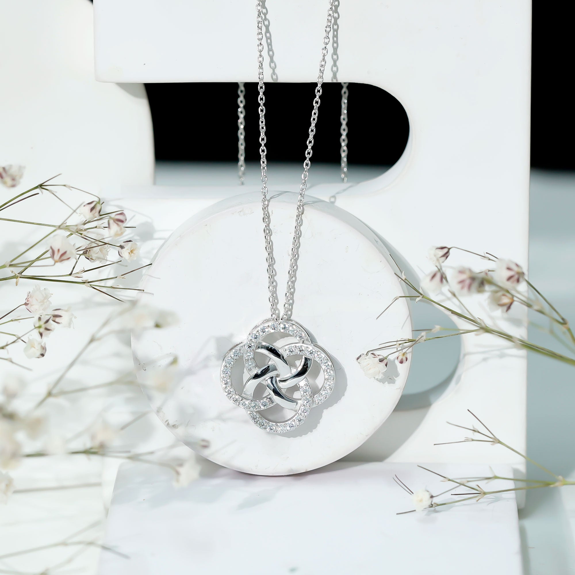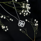 This Moissanite Pendant is precisely crafted with 14K White Gold Plated Silver. The pendant features open circles interlocked with each other, partially studded with smaller Moissanite of D-VS1 Quality securely placed in Pave Setting. The necklace is suspended from a cable chain which lets you adjust the length as per your comfort. Rosec Jewels Floral Pendant Necklace can be presented to your beloved as a symbol of love and promise. The Open Circle Pendant Necklace will be delivered to you in a premium packaging with the certificate of authenticity.