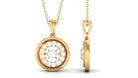 This awe-inspiring and magnificent Moissanite Pendant has the power to reignite her faith in the beauty of a loving relationship. Impeccably certified, this Classic Moissanite Pendant features a centerpiece of Round Cut Moissanite, delicately cradled in a claw setting adorned with a captivating halo. This Moissanite Pendant Necklace is bound to captivate the gaze of all who behold its splendor.