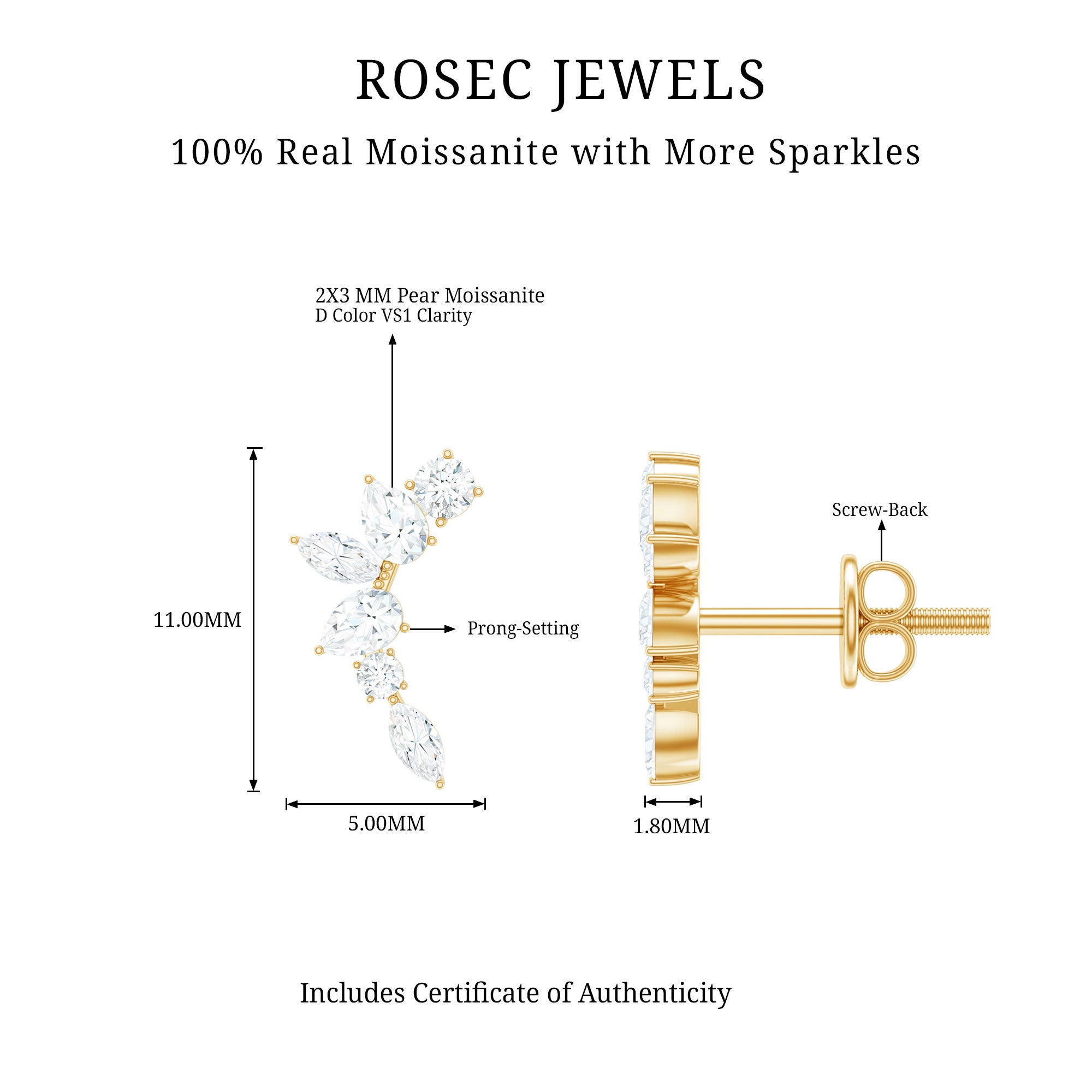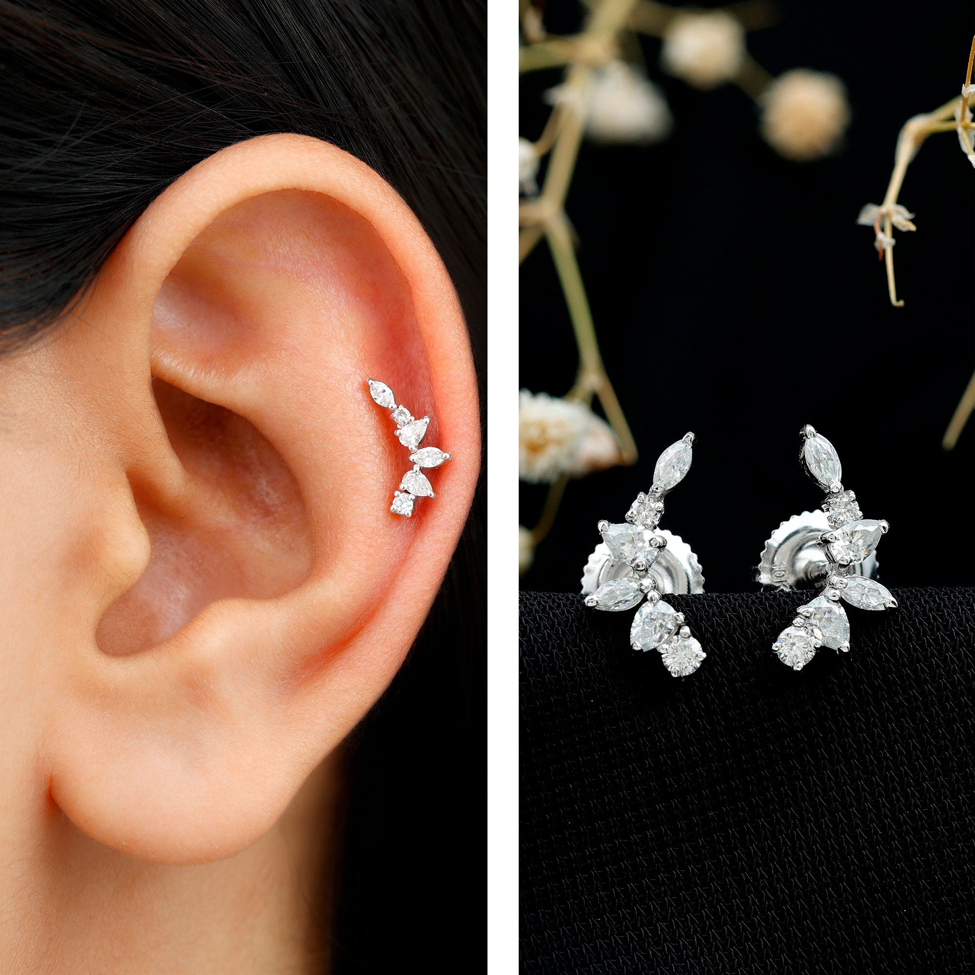 Certified Moissanite Climber Earrings