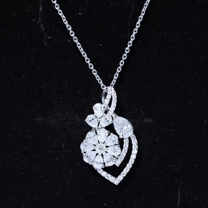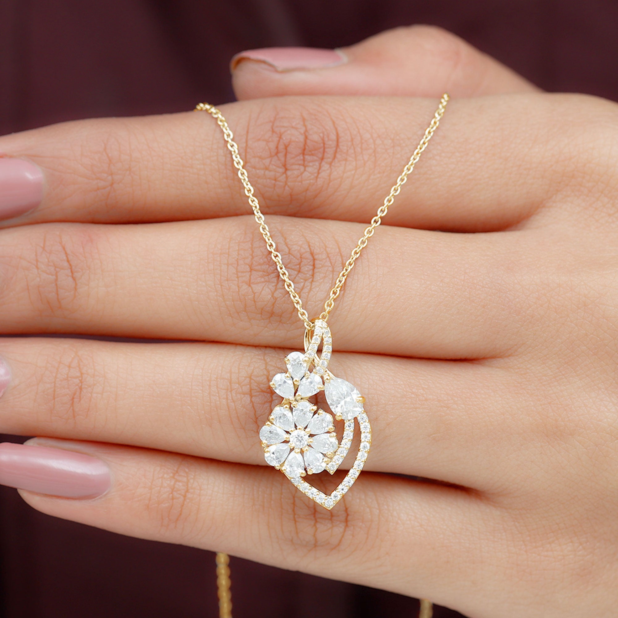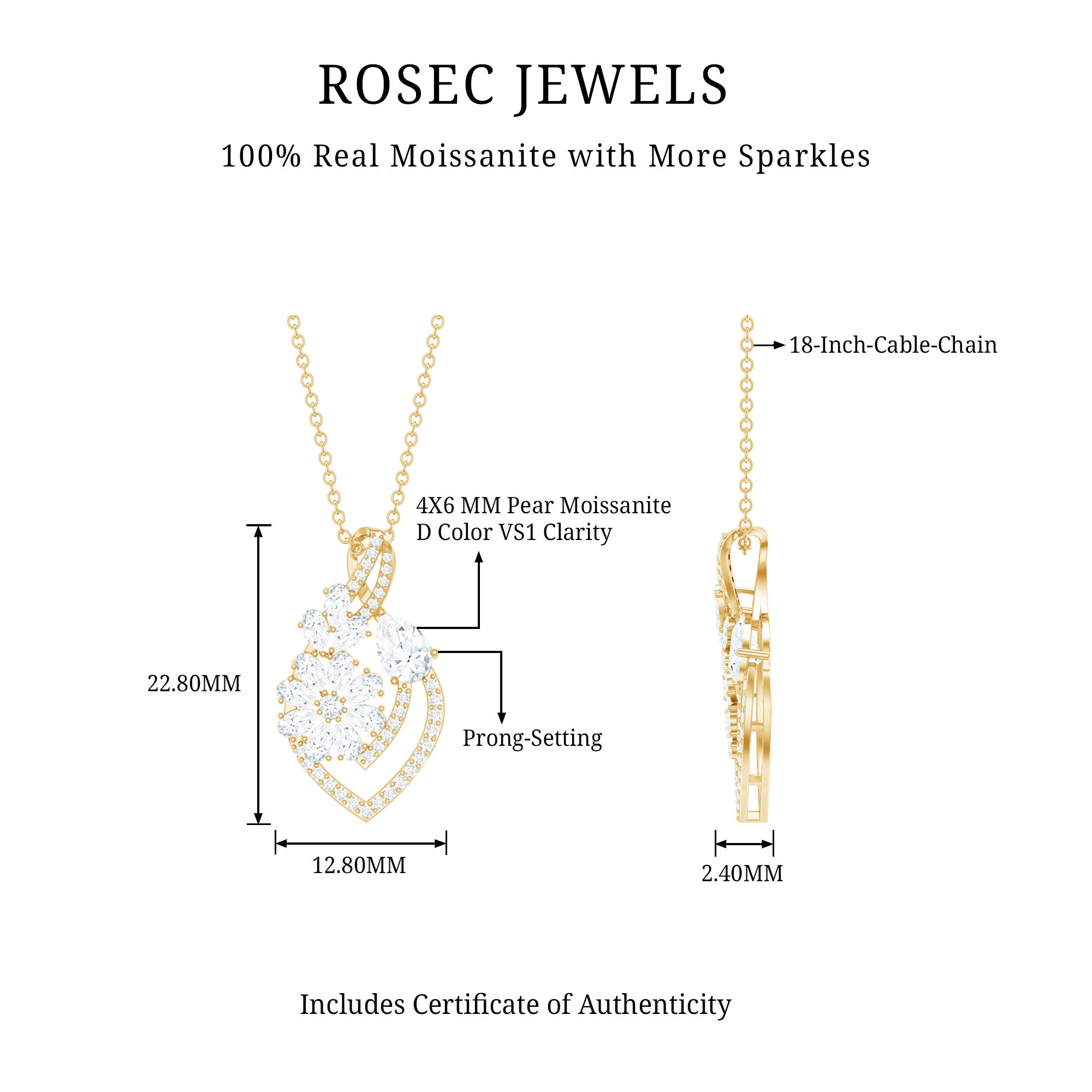 The graceful and exquisite Infinity Pendant Necklace is embellished with Pear and Round Moissanites secured in Prong Setting, adding a magical touch to the fine jewelry.