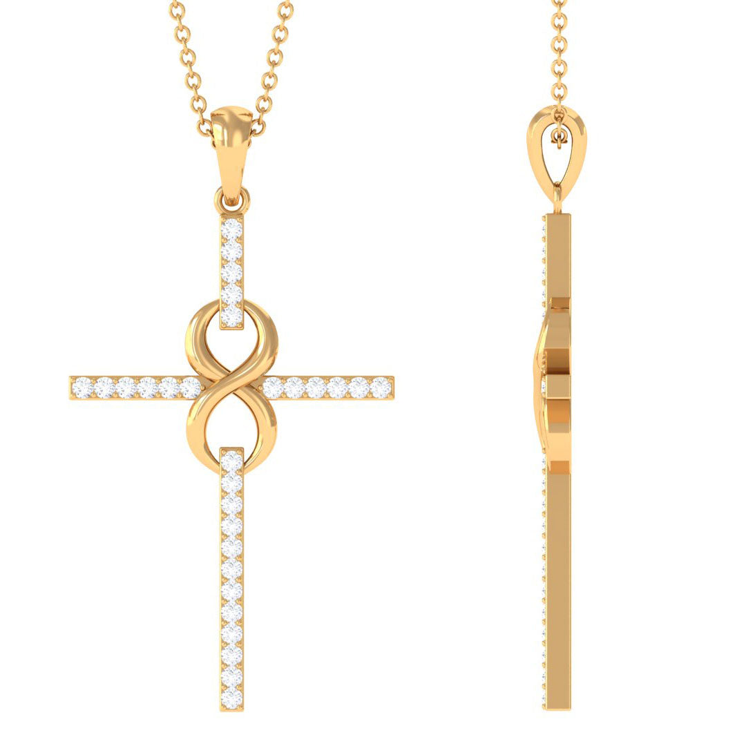 Beautify yourself with this Cross Infinity Pendant, embellished with Round Cut Moissanites secured in Surface Prong Setting and adorably molded with Solid Metal to make it more eye-catching. For a person who loves to wear Religious Jewelry this Cross Pendant will be the best option as it can be worn with any casual or formal attire. Choosing a surprise for your wife for this coming anniversary this Moissanite Pendant will be the best Anniversary Gift for her.