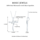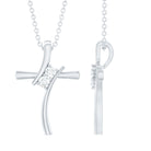 Celebrate your religious belief with this Moissanite Cross Pendant. The pendant represents faith and spirituality, which makes it a perfect symbol for showcasing your empathy towards religious beliefs. It is crafted with 14K White Gold Plated Silver featuring Moissanite embedded at the center of the cross, secured in 4 Prong Setting. This Religious Cross Necklace can be worn solely or can be layered with another necklace to achieve a statement look. This Christian Necklace beholds the classic shine of D-VS1 Quality Moissanite.