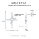 Celebrate your belief with these Moissanite Cross Stud Earrings, precisely crafted with 14K White Gold Plated Silver. Cross is the holy symbol which represents our spiritual beliefs when you wear it. The earrings feature small Moissanite stones studded overall the cross at the center of the cross, a metallic swirl enhances the beauty. Present these earrings to your special one on the holy days. These Christian Earrings hold the classic shine of D-VS1 Quality Moissanite. These Cross Silver Earrings will be delivered to you in a premium quality velvet pouch with a certificate of authenticity.