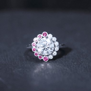 Certified Moissanite Designer Engagement Ring with Lab Ruby