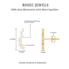 Elevate your ear style with these stunning certified moissanite ear climber earrings. The delicate crawler design gracefully follows the curve of your ear, showcasing a series of sparkling moissanites with a screw-back setting. The moissanites are certified for their brilliance, fire, and durability, so you can be sure that your earrings will shine for years to come. This versatile earring can be worn on the helix, cartilage, or upper lobe piercings, and they are perfect for any occasion, from a casual day out to a formal event.