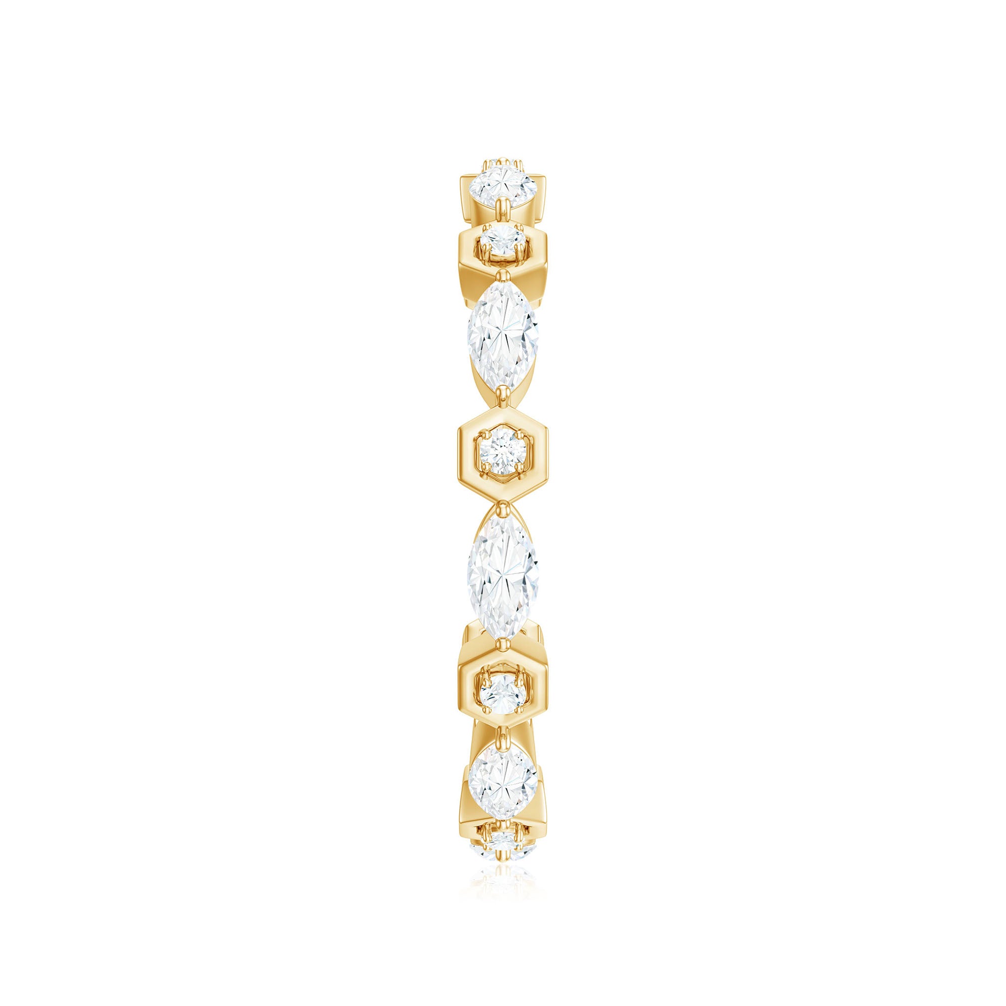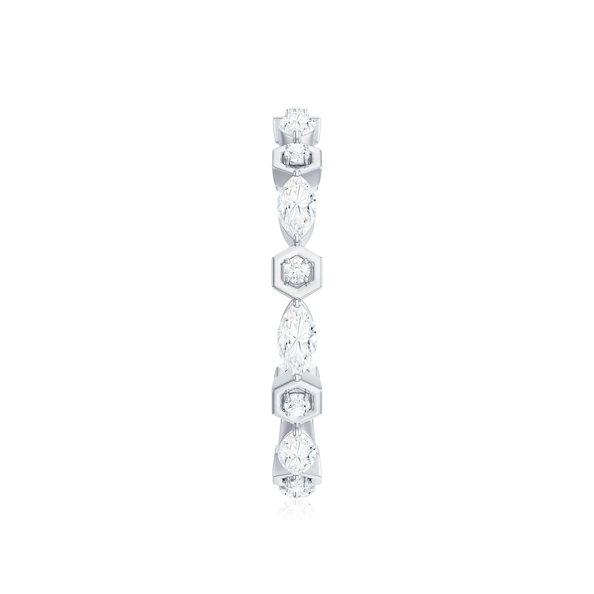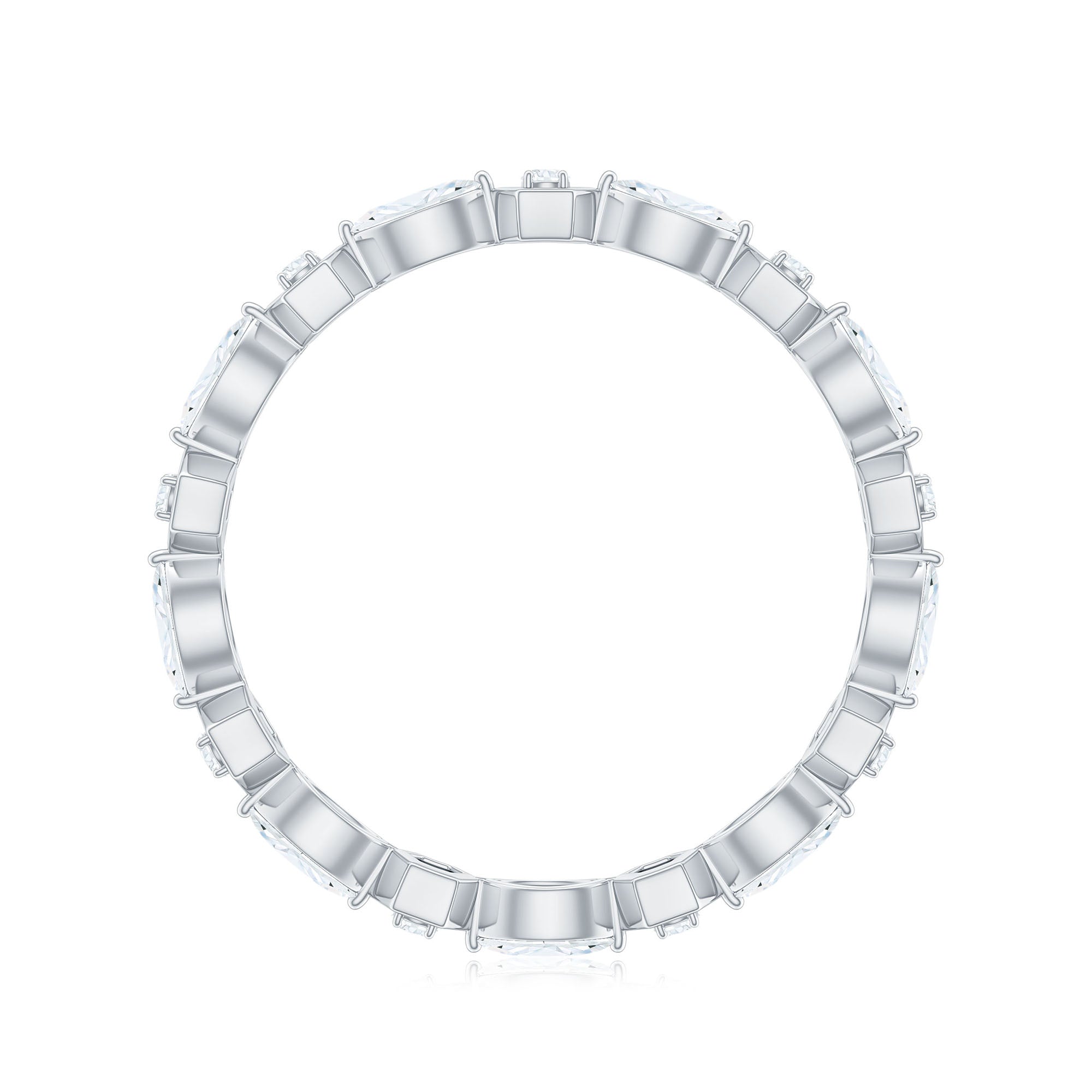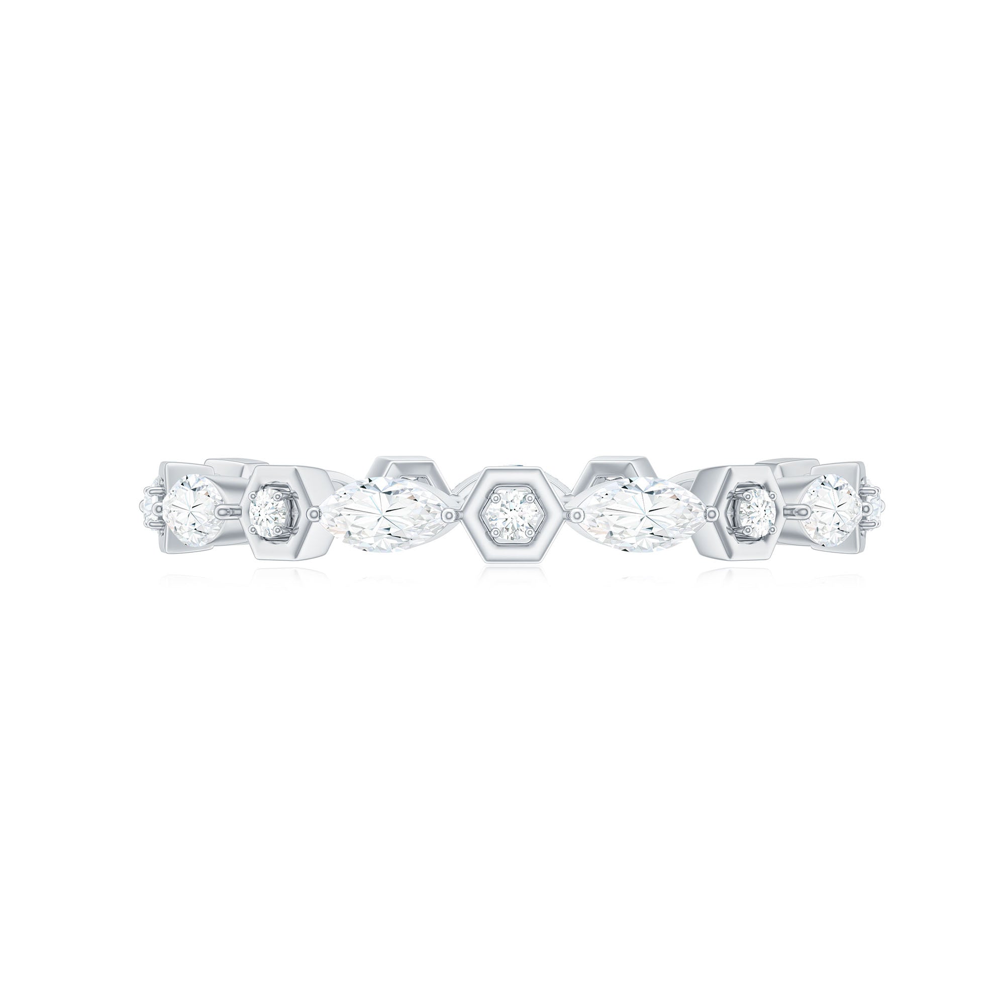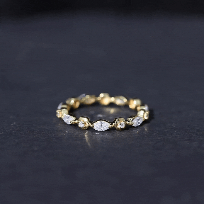 Simple and elegant this Moissanite Band Ring is a perfect jewelry for your wedding day. Celebrate the milestone of your life by presenting this Eternity Band Ring as a token of your love. The Marquise and Round Cut Moissanite held securely in Prong Setting on Eternity Band Ring can perfectly be stacked with your engagement ring or wedding band. This Colorless Moissanite Band Ring pairs perfectly with any outfit for a minimalist, yet sophisticated look.