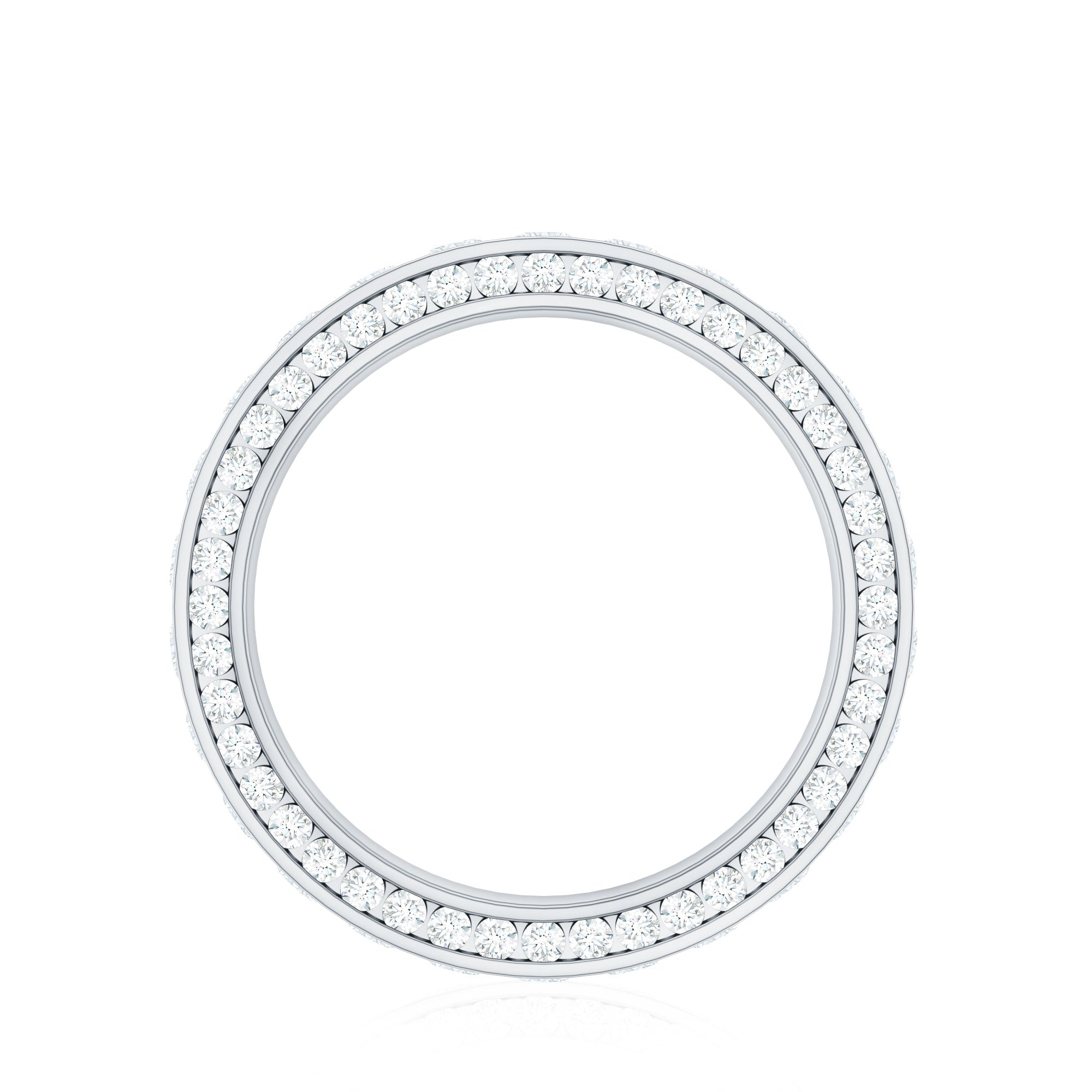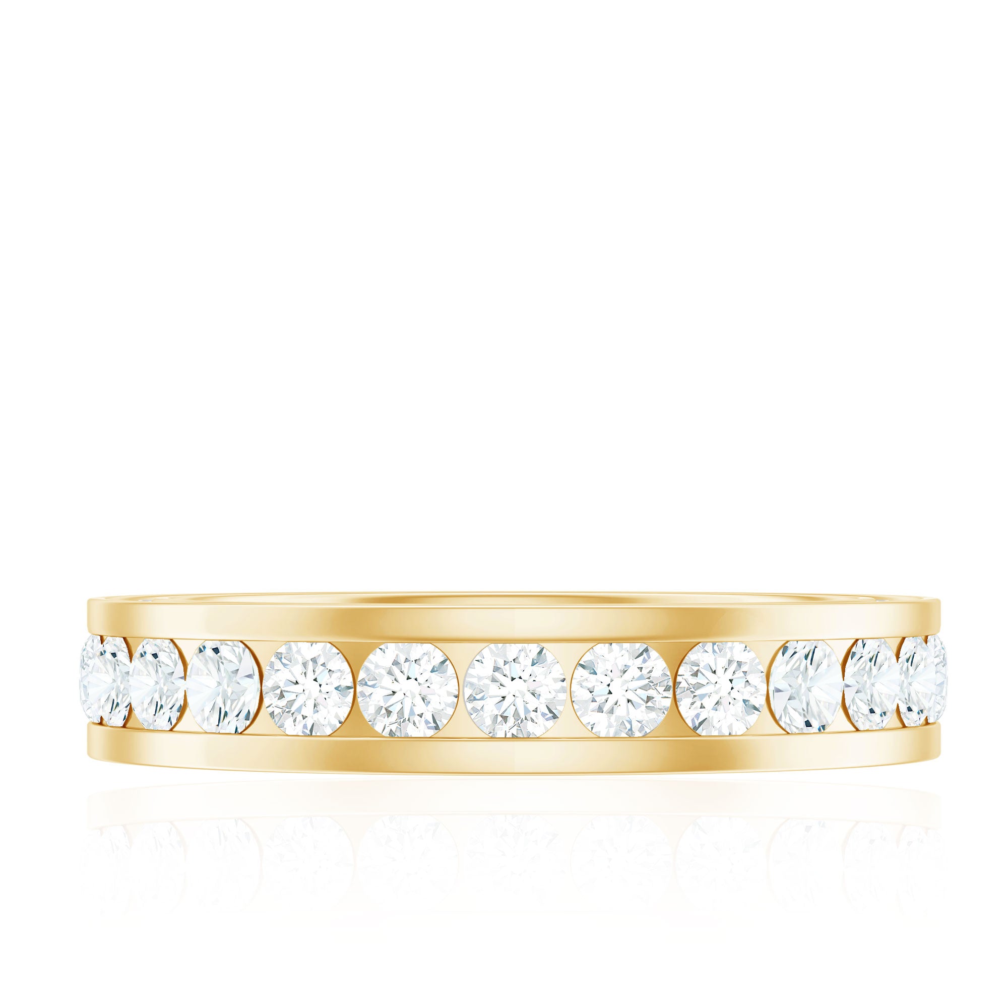 This Moissanite Wedding Band highlights exceptional brilliance and fire, making it a truly distinctive piece of jewelry that allows you to stand out from the crowd. Its harmonious combination creates a stunning visual impact and symbolizes everlasting love. Crafted with care and meticulous attention to detail, this Eternity Wedding Band features Round Shape Moissanite in Channel Setting. Both the front and back sides are also embellished with Round brilliant cut Moissanite, giving it a sparkle from every angle. With utmost care and attention to detail, this Wedding Anniversary Band showcases unparalleled beauty, adding an enchanting touch to your jewelry collection. It blends seamlessly, providing an undeniable touch of sparkle and elegance. The D Color VS1 Clarity Moissanite draws attention and ignites conversations wherever you go. This creates a truly unique Moissanite Eternity Ring that reflects your individuality and celebrates your relationship. It captures hearts and dazzles with its timeless elegance. This Full Eternity Ring forms a harmonious and captivating ring stack. For those seeking a meaningful, modern choice, it embodies those values.