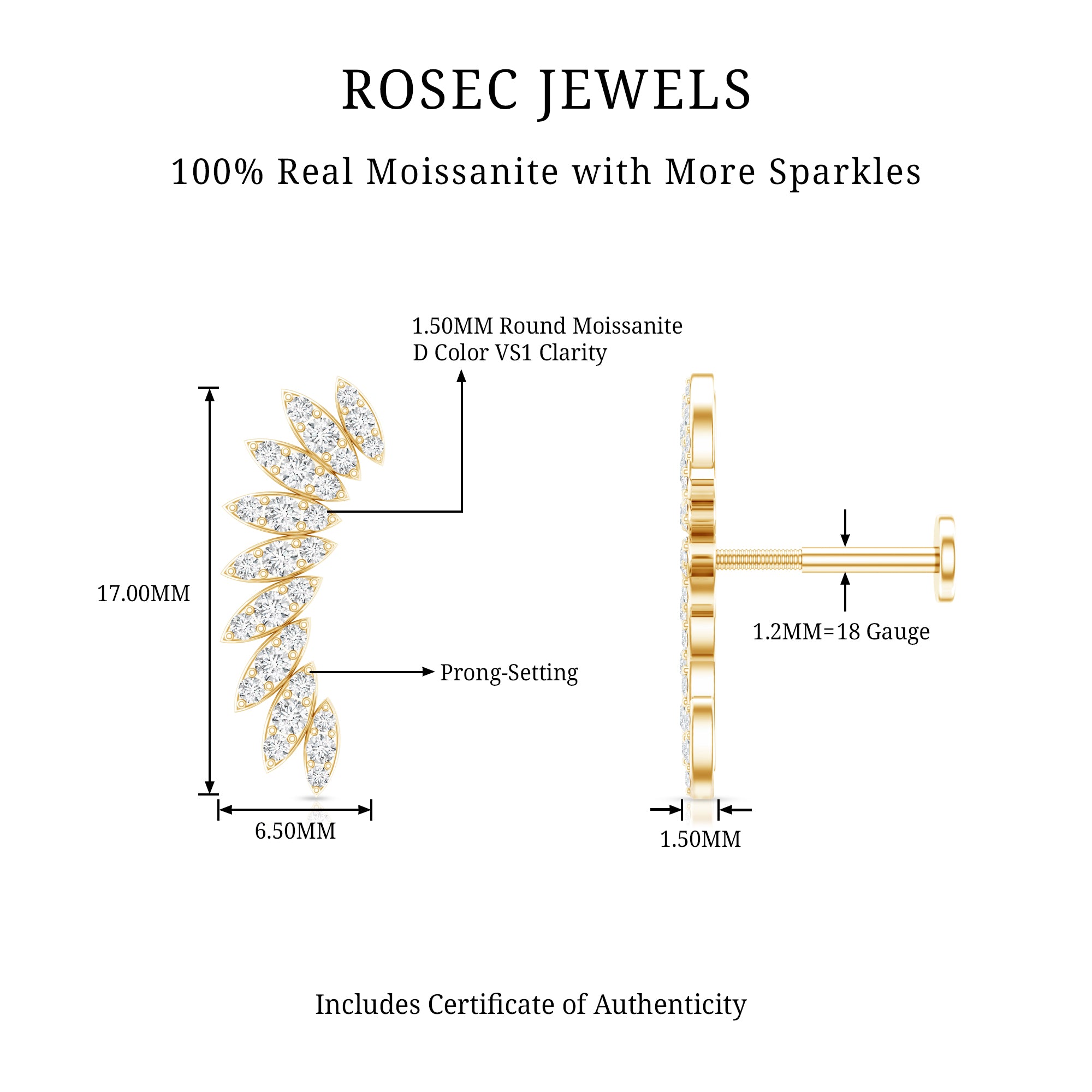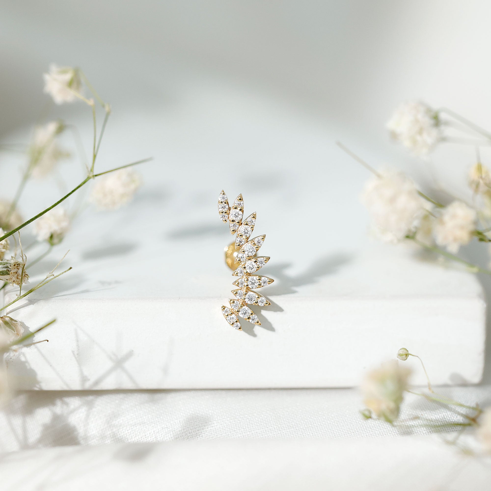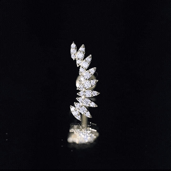 Certified Moissanite Feather Climber Cartilage Earring
