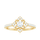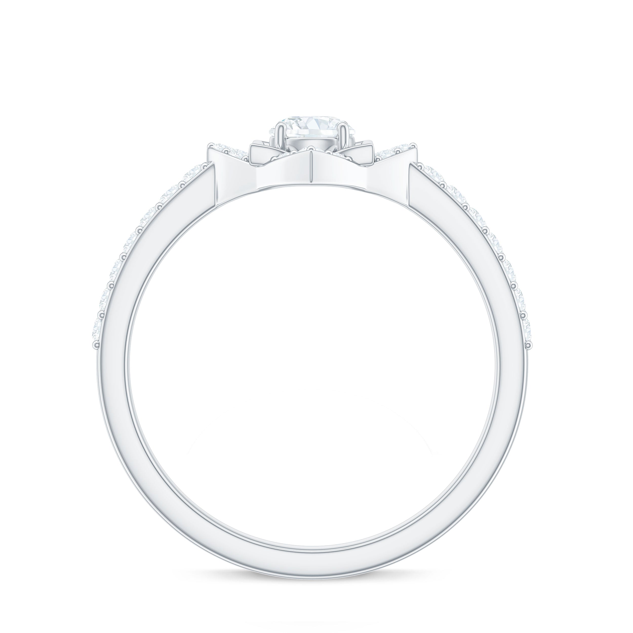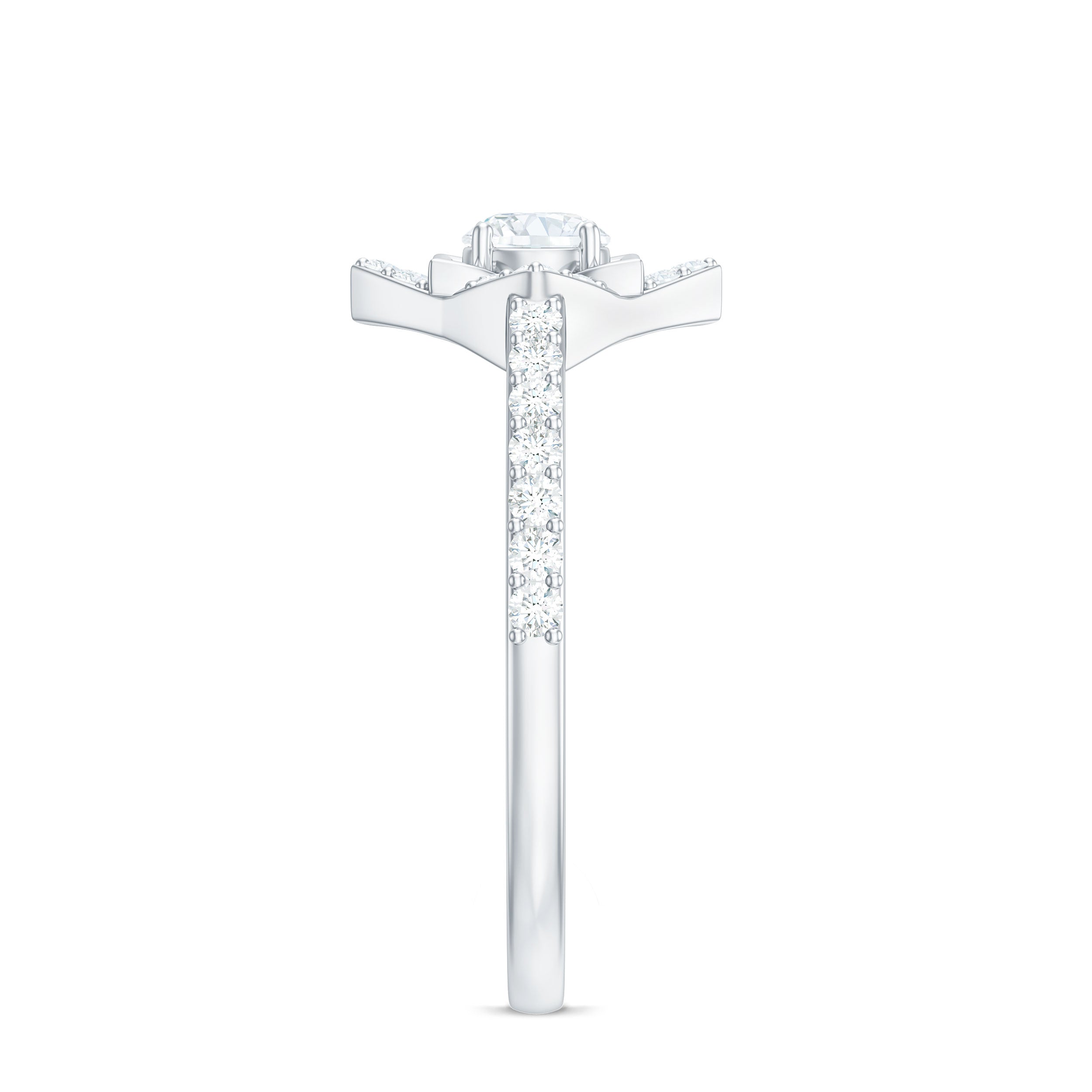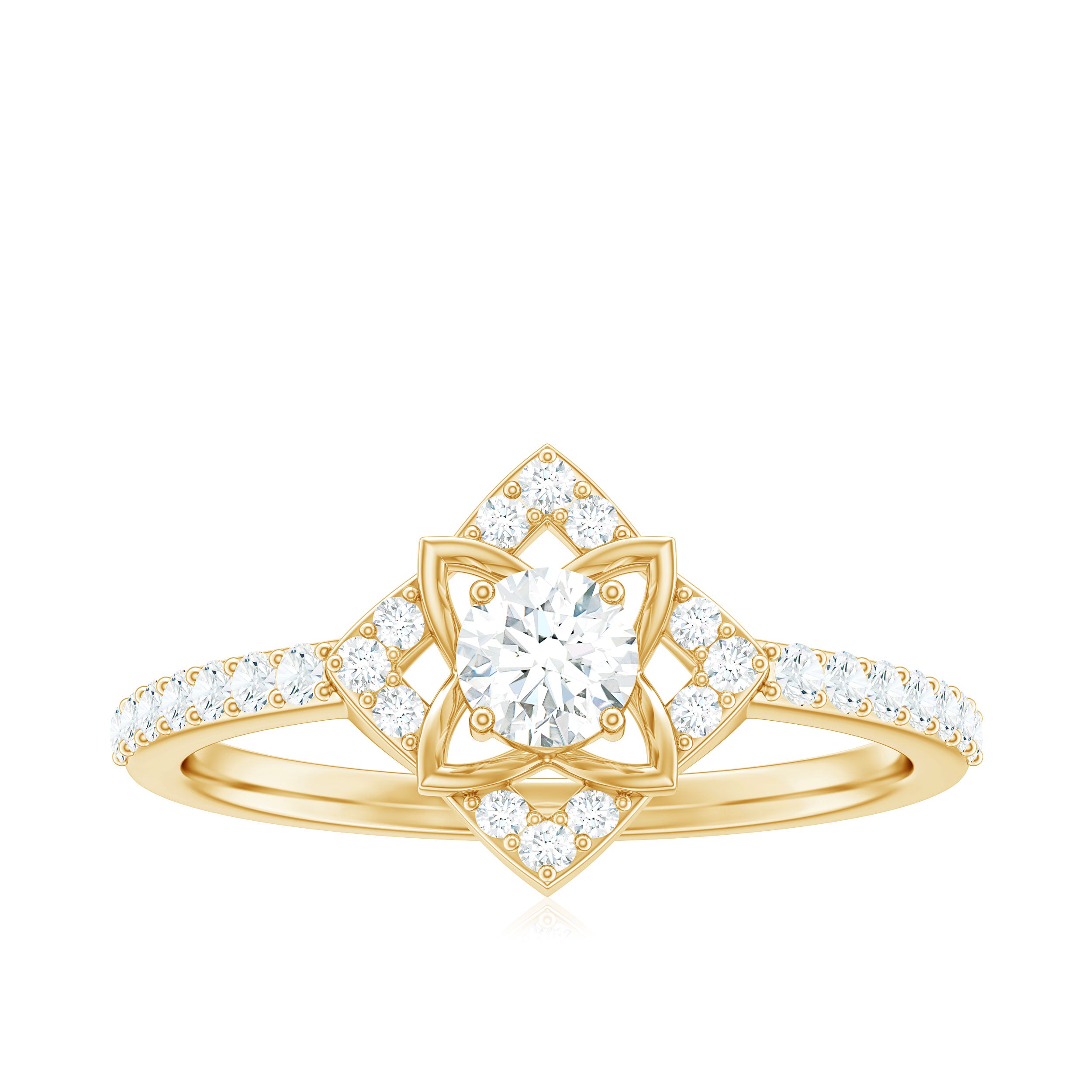 Experience the timeless elegance of this exquisite Flower Engagement Ring, featuring a dazzling 4 MM round cut moissanite at its heart. Expertly set in secure prong setting, this centerpiece stone radiates remarkable brilliance and fire, drawing the eye with its captivating sparkle. Surrounding the central moissanite is an intricate floral design crafted from a delicate arrangement of shimmering stones, forming a beautiful blossom that symbolizes love, growth, and new beginnings. Each moissanite in this ring is carefully selected for its exceptional quality, boasting a D color and VS1 clarity. The design gracefully combines classic sophistication with a contemporary floral motif, making it a perfect symbol of romance and individuality. Whether chosen as an engagement ring or a meaningful gift, this Moissanite Engagement Ring is a celebration of beauty, purity, and commitment. Its refined sparkle and elegant craftsmanship make it an heirloom-worthy treasure to cherish for a lifetime. Celebrate your unique love story with this stunning Flower Ring for Women, a harmonious blend of nature’s inspiration and enduring elegance, destined to shine bright through all of life’s most cherished moments.