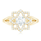 Certified Moissanite Floral Engagement Ring with Split Shank