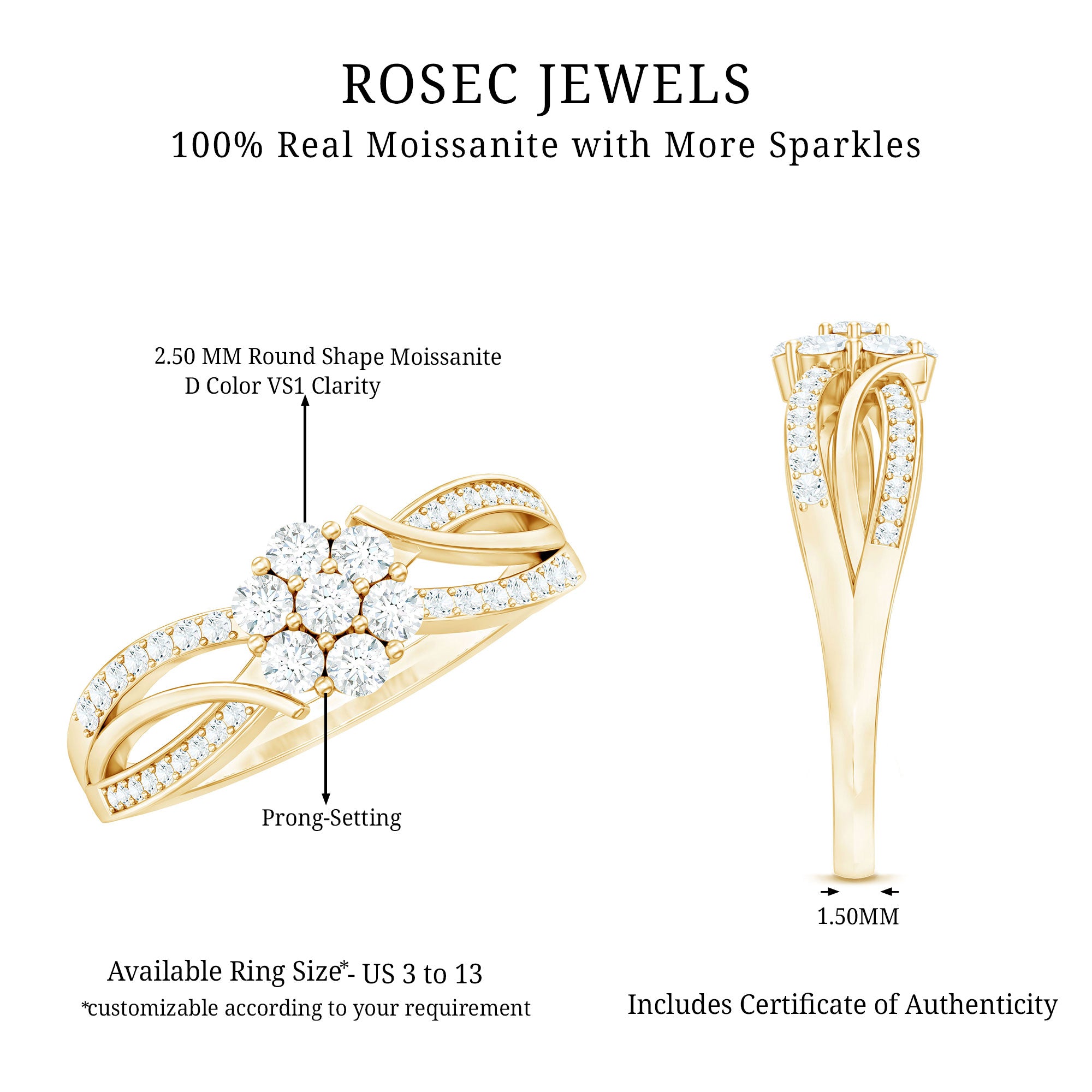Certified Moissanite Flower Engagement Ring in Infinity Shank