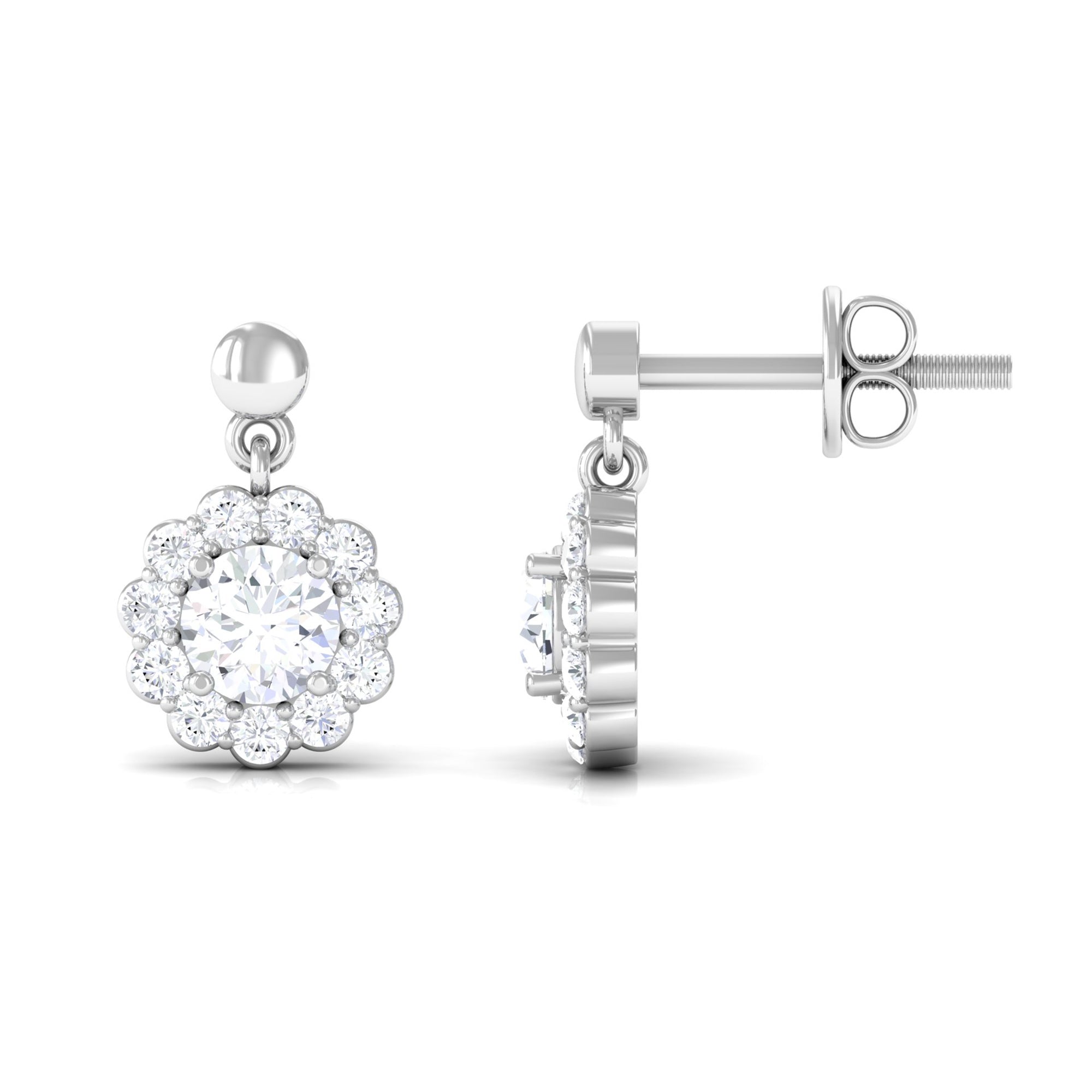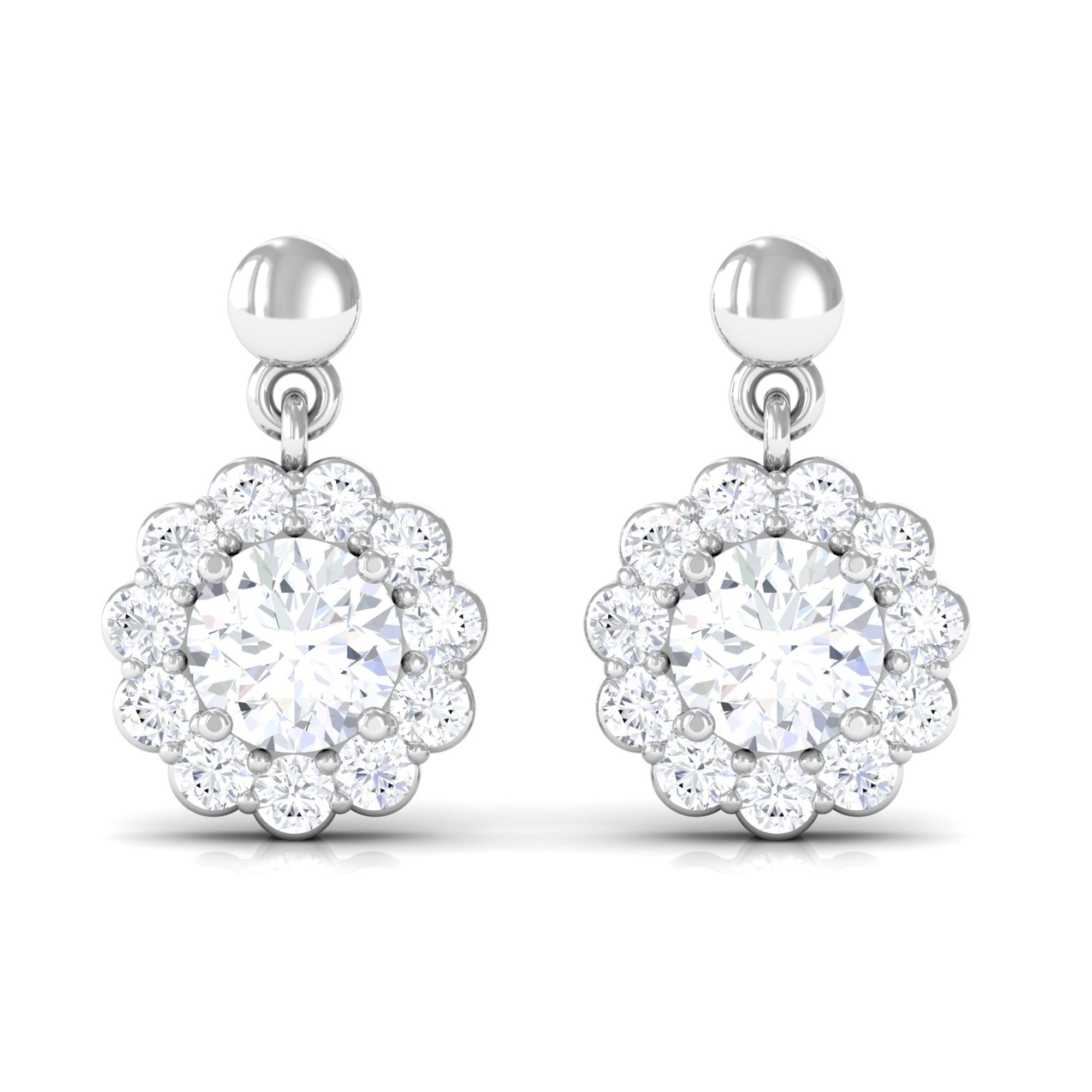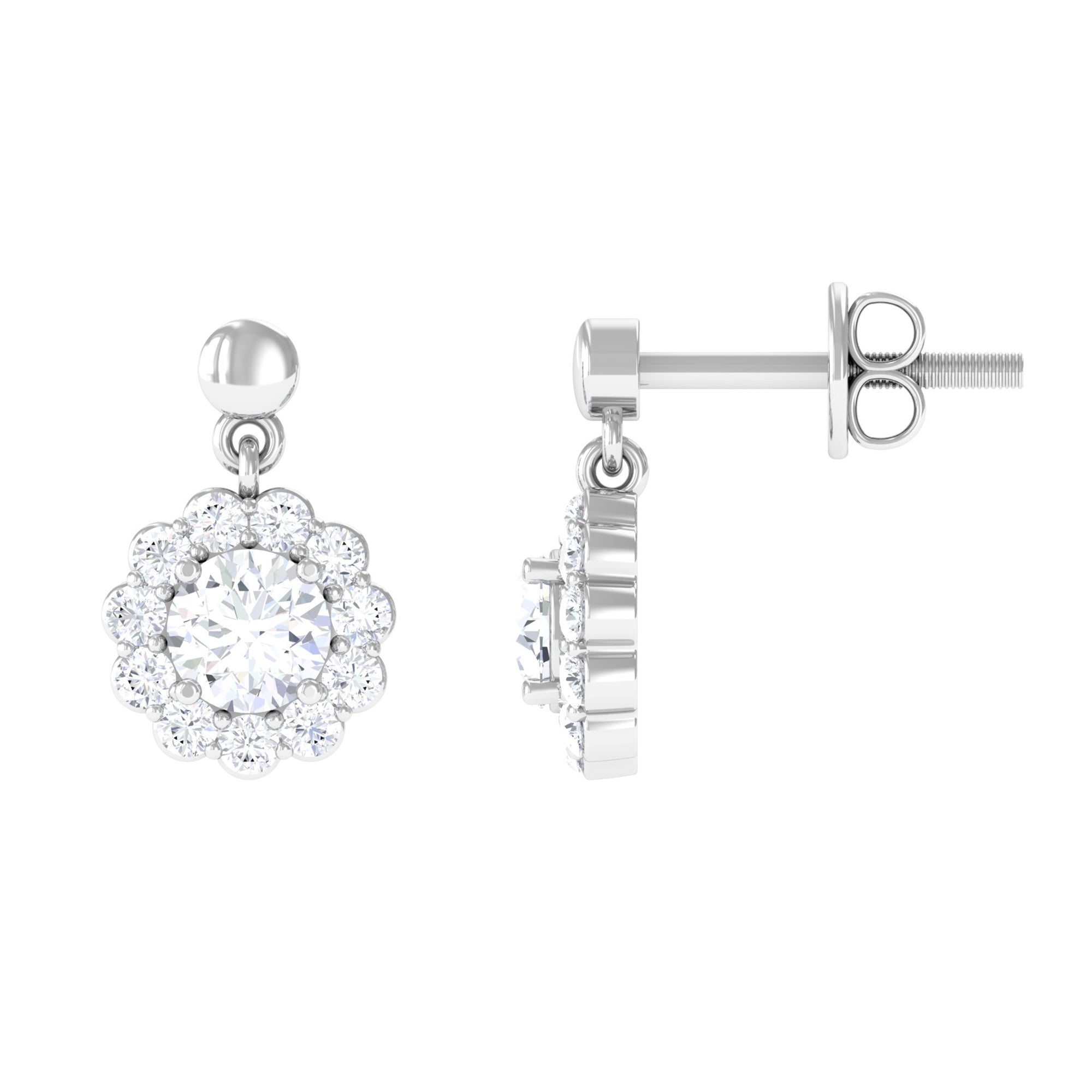 Certified Moissanite Flower Halo Drop Earrings
