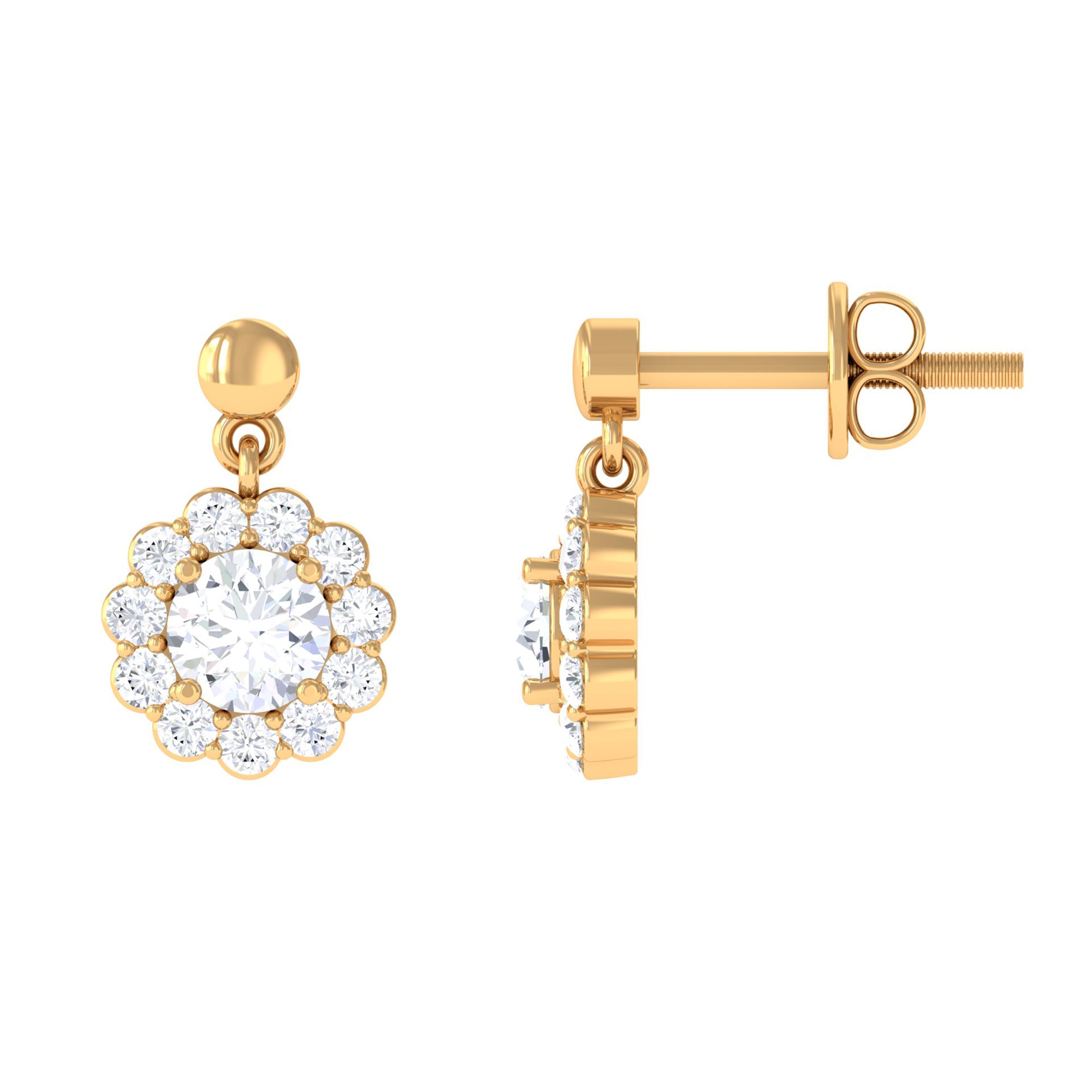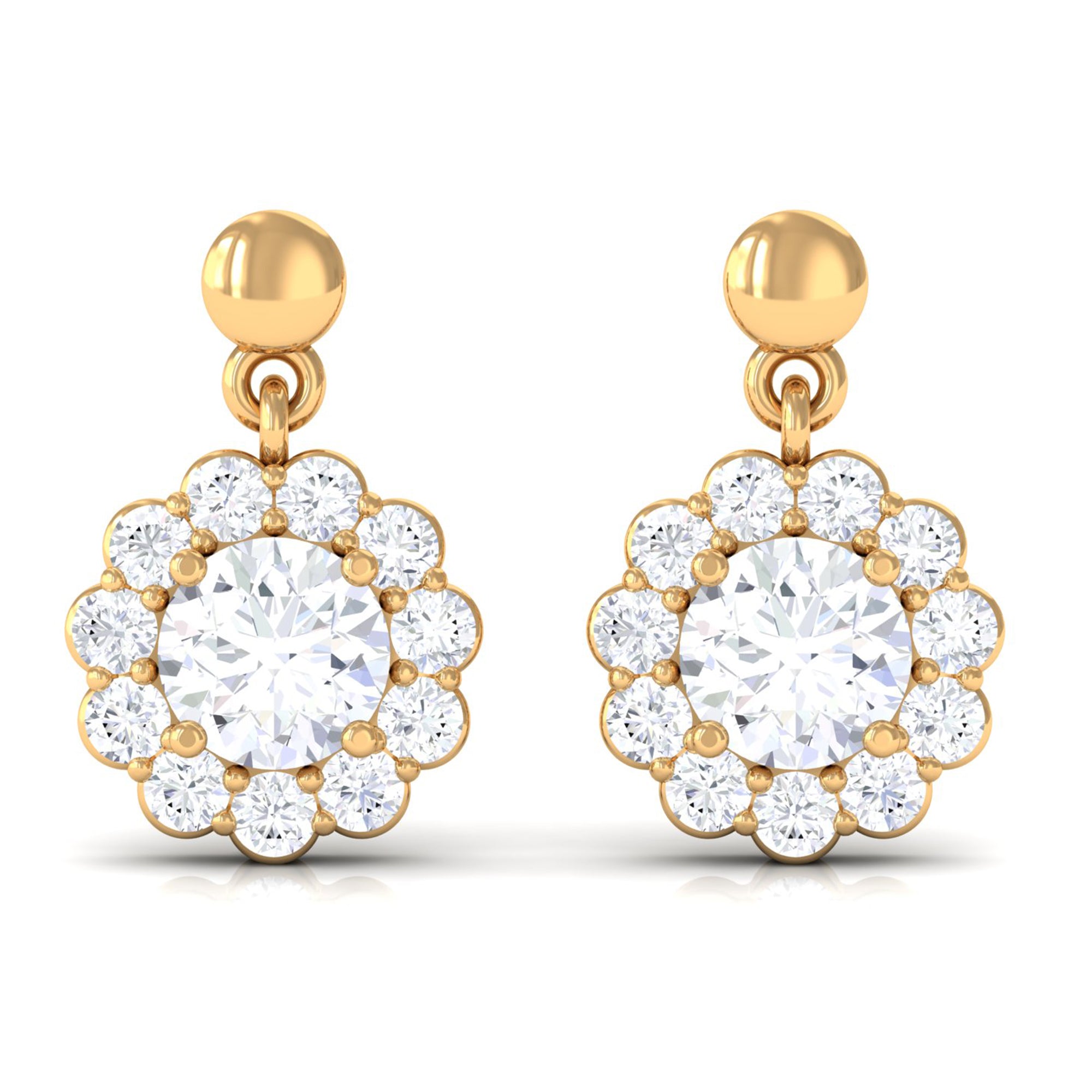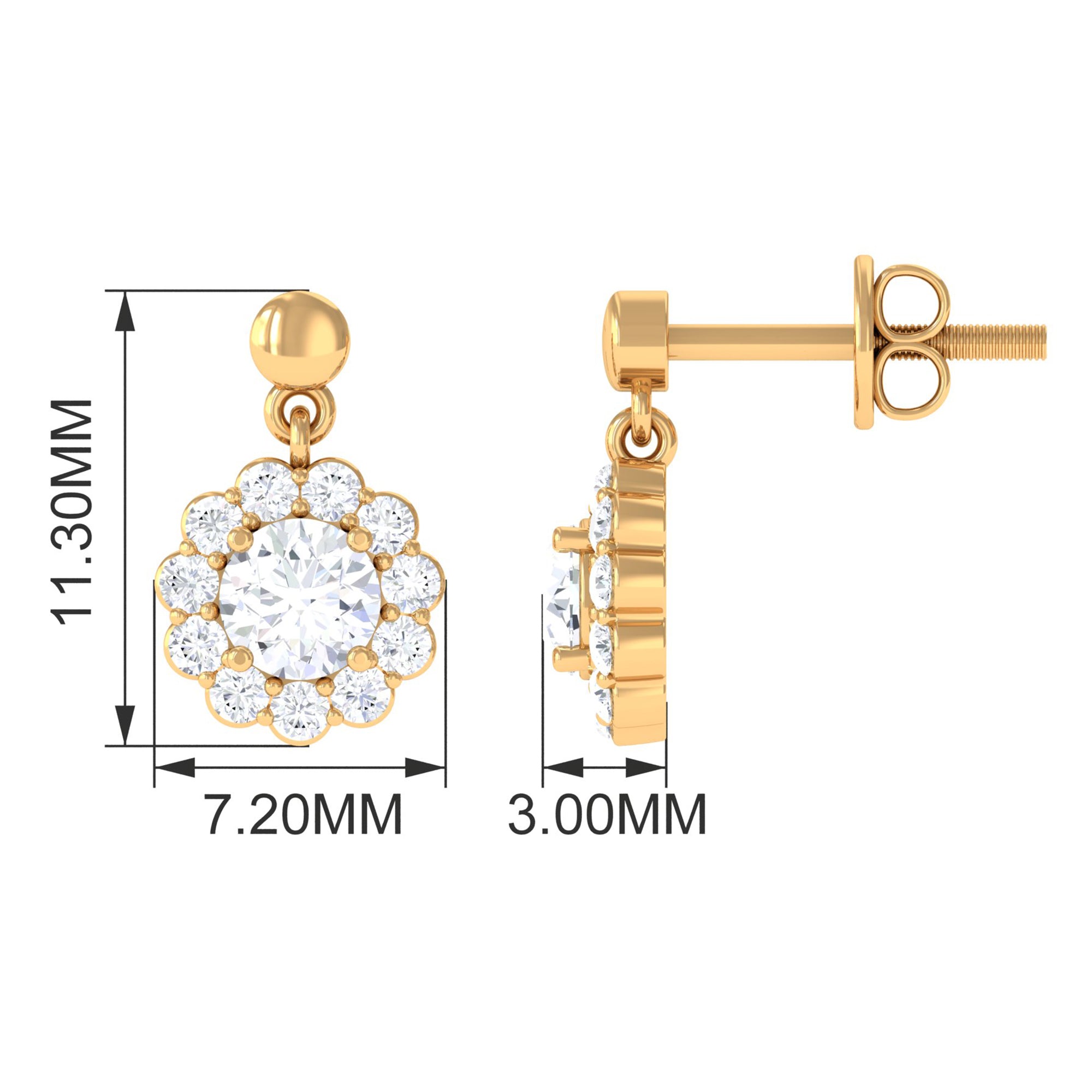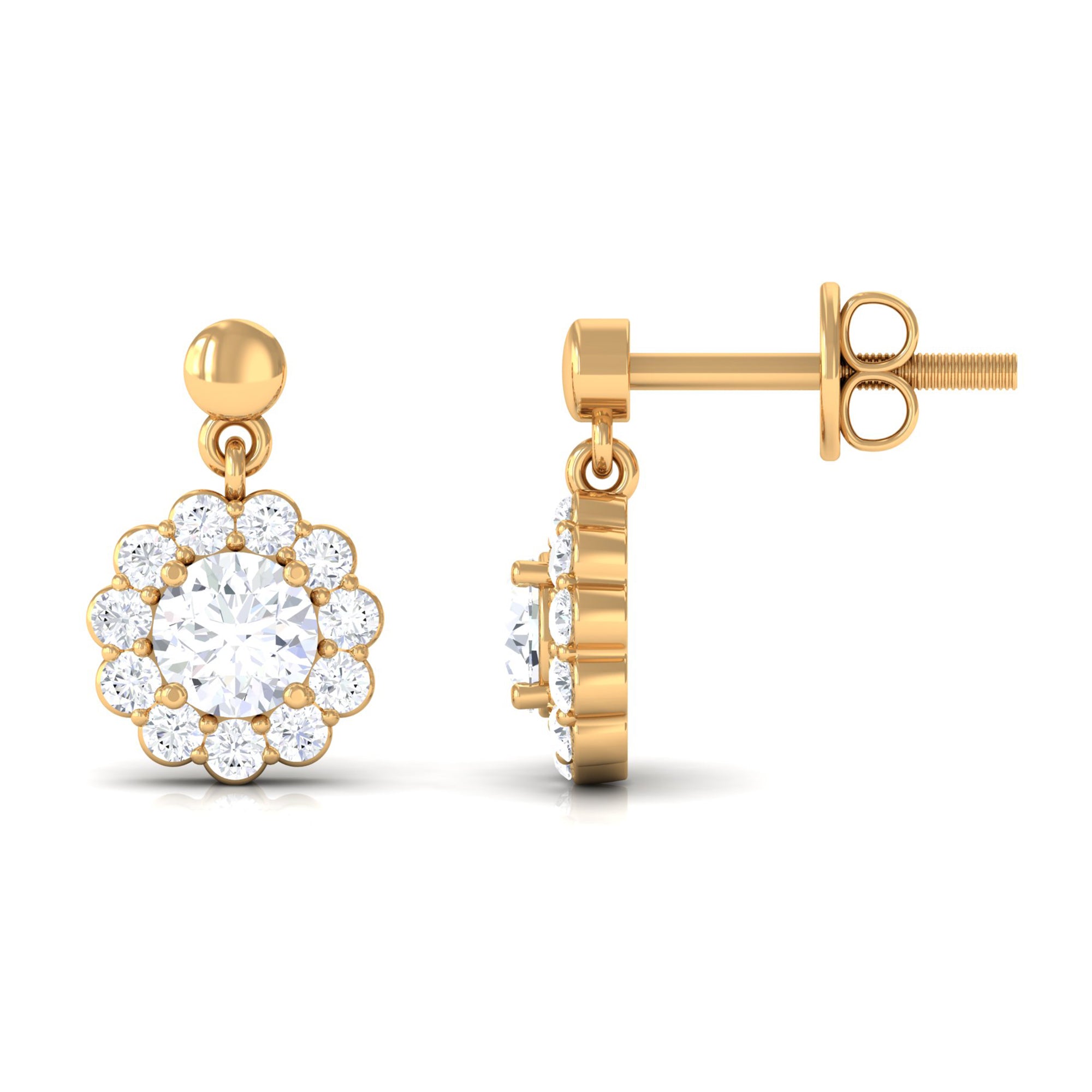 Certified Moissanite Flower Halo Drop Earrings