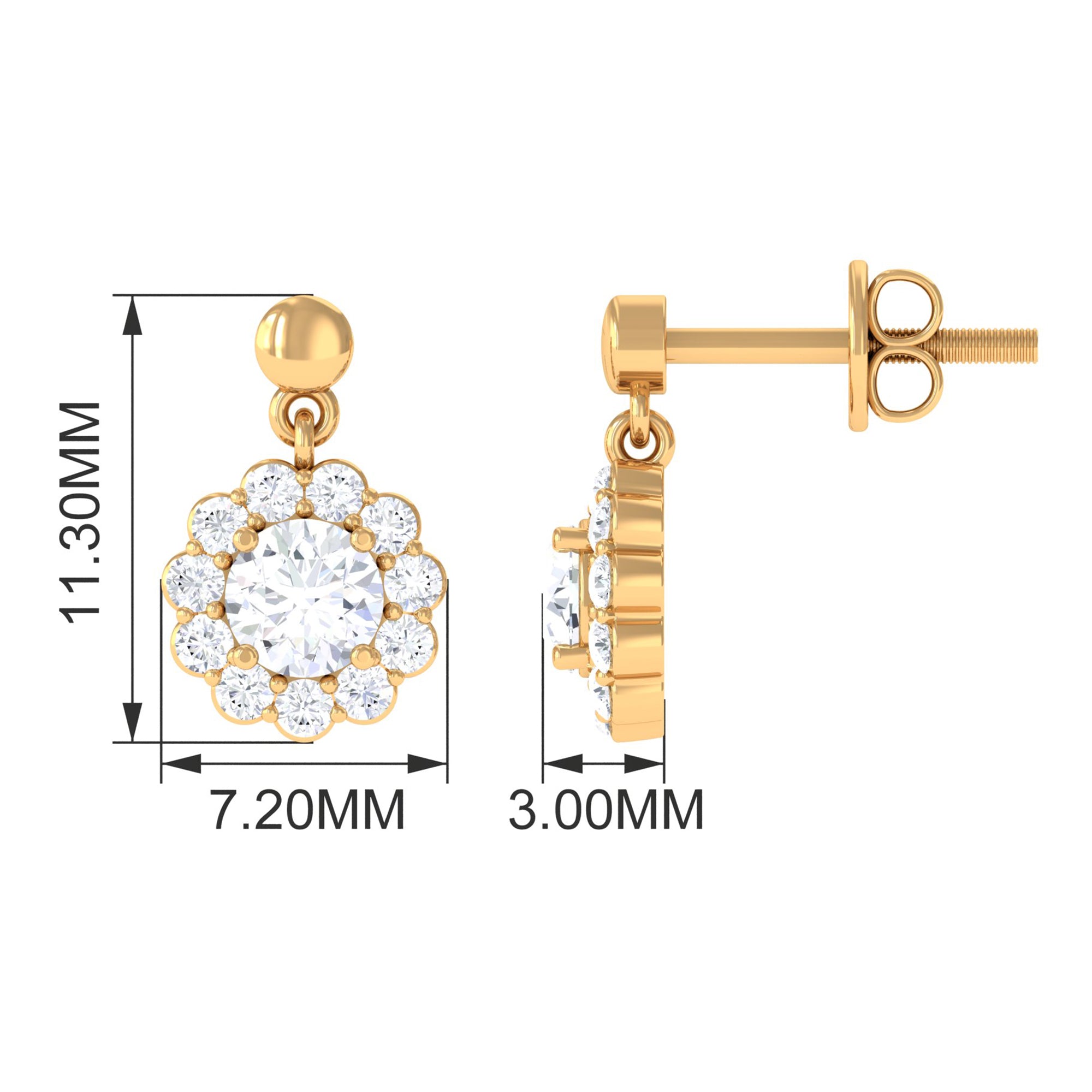These stunning Moissanite drop earrings are the perfect blend of elegance and sophistication. The intricate flower earrings are crafted with care and precision in gold, making them perfect for any occasion. The Moissanite stones are adding a touch of sparkle to these already beautiful earrings. These halo earrings are lightweight and comfortable to wear, making them perfect for everyday wear. The secure screw backings ensure that they will stay in place all day long. They are great for a gift or a treat to yourself.